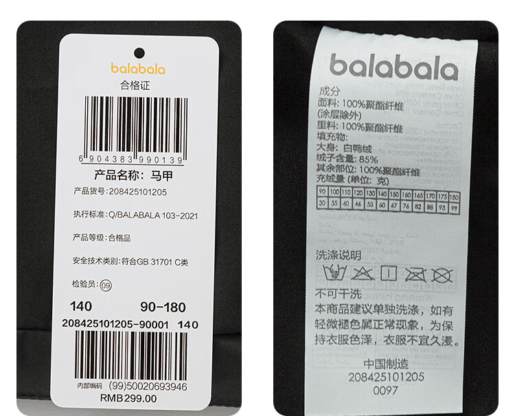 巴拉巴拉童装儿童羽绒马甲2025新款冬装男女童保暖外套亲子装208425101205