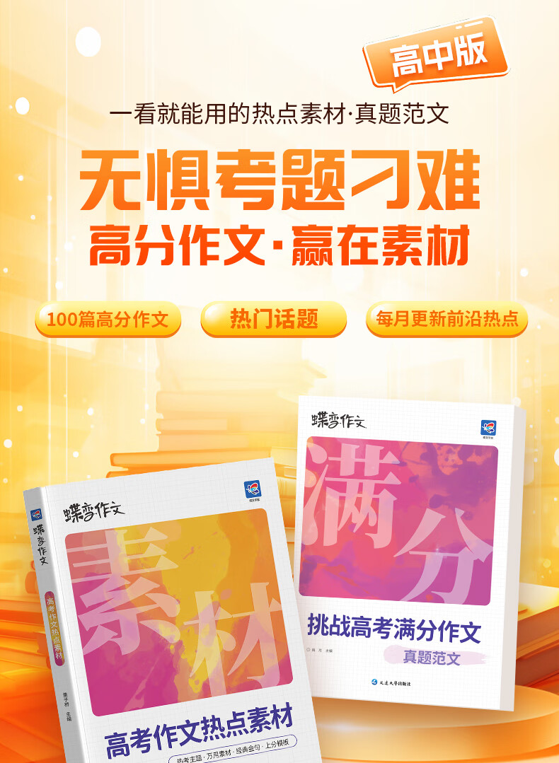 蝶变学园 高中作文书满分作文2026高考作文热点素材 高一高二高三语文写作热点人物前沿素材 高考作文书6年真题100篇范文技巧点拨 加分语段热点素材扫码每月更新 全国通用