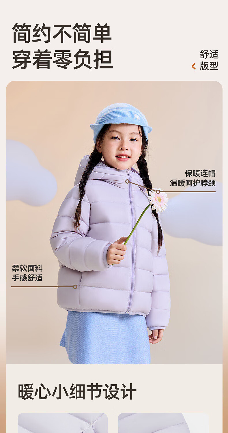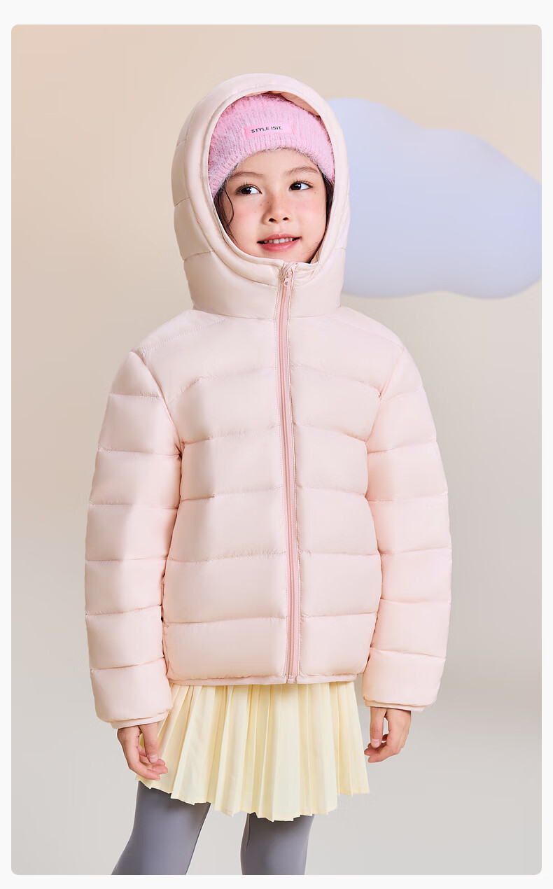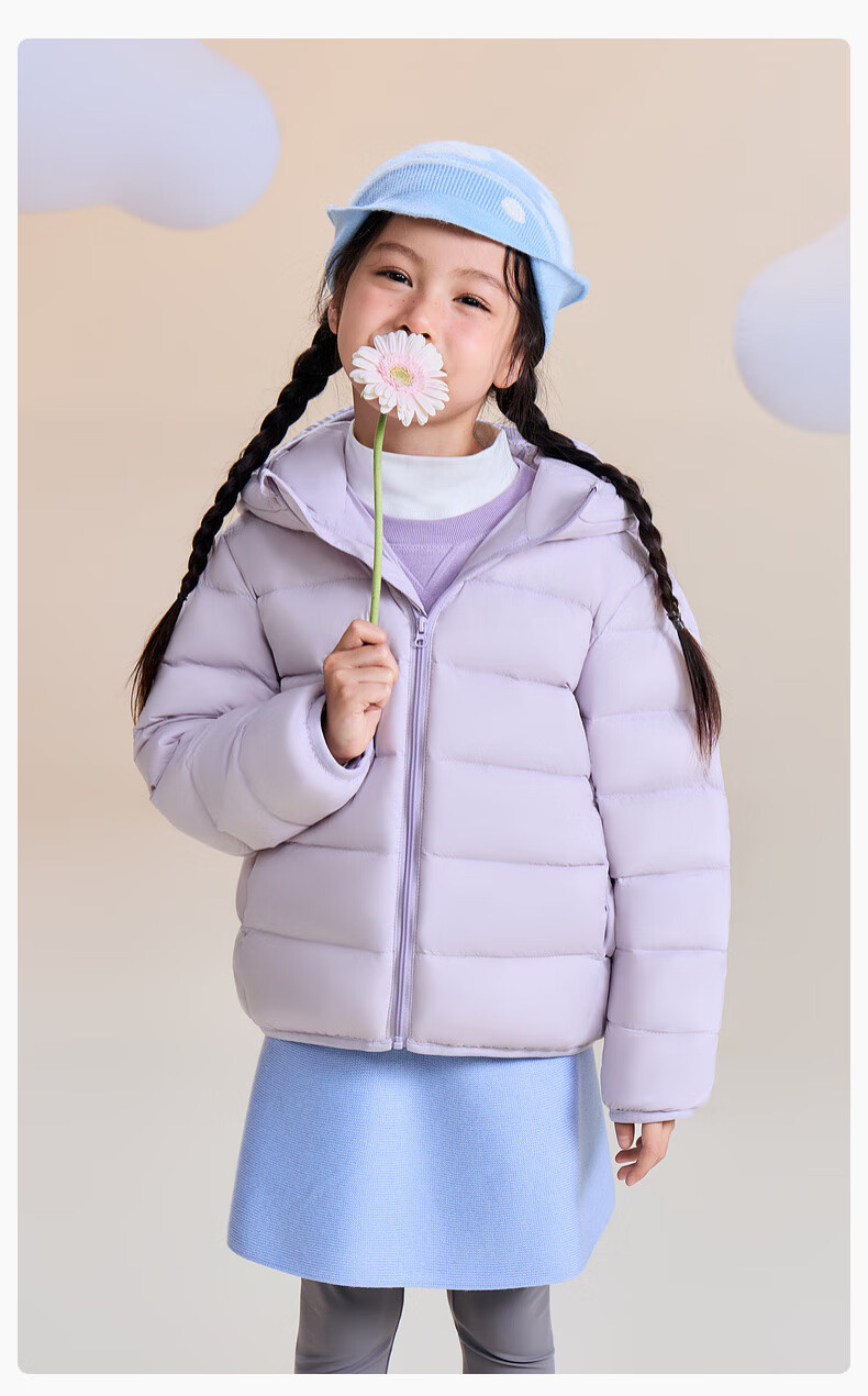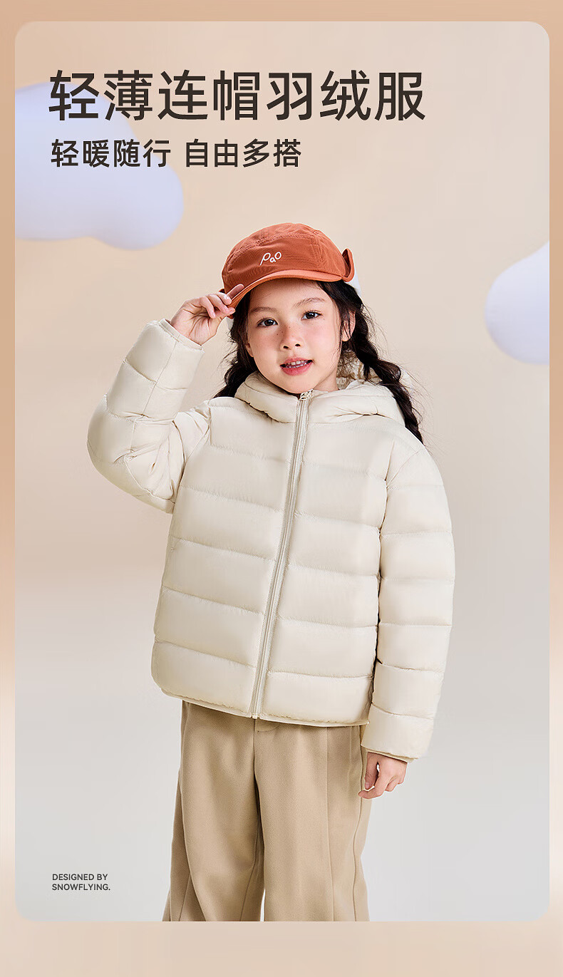 雪中飞秋冬新款儿童轻盈羽绒服可爱保暖轻薄舒适连帽羽绒服外套