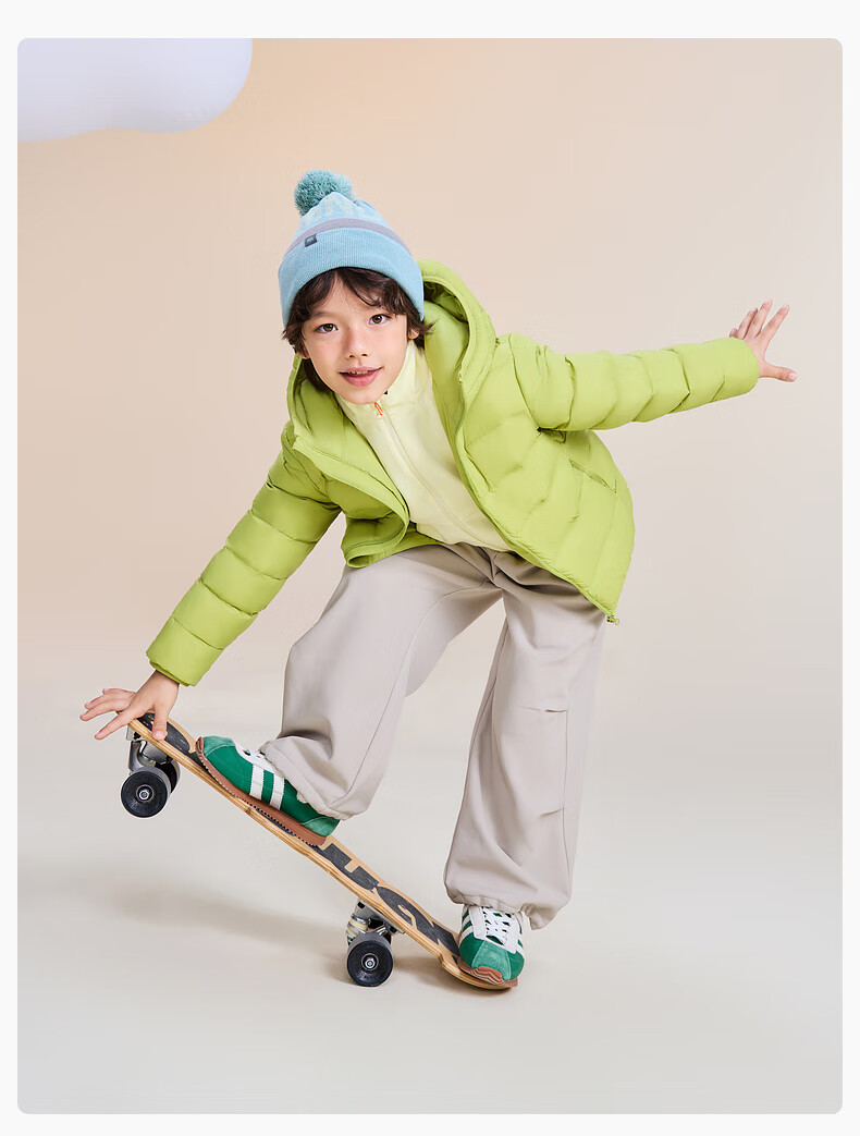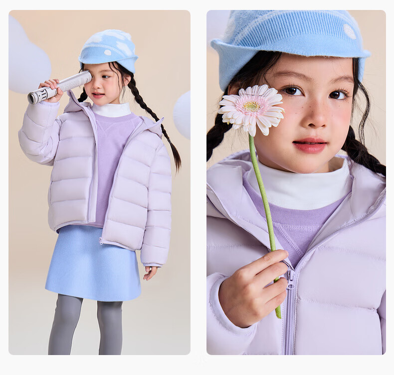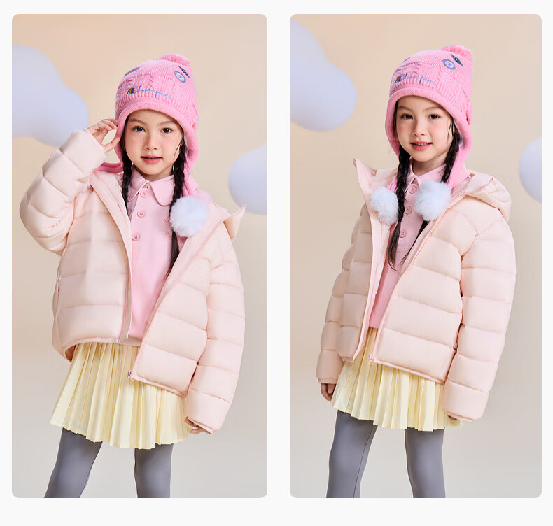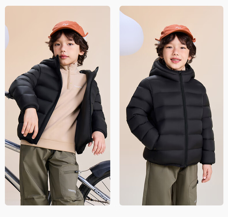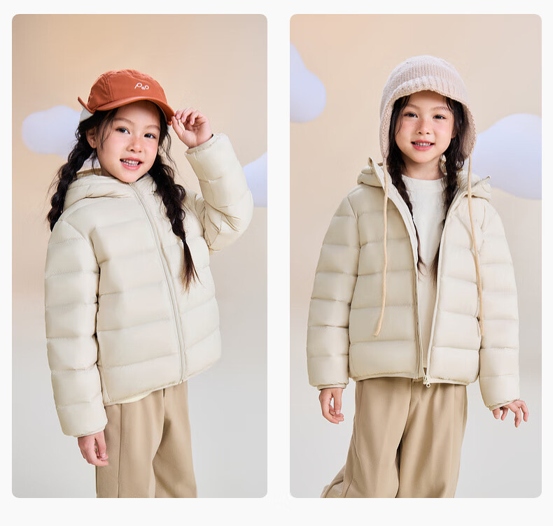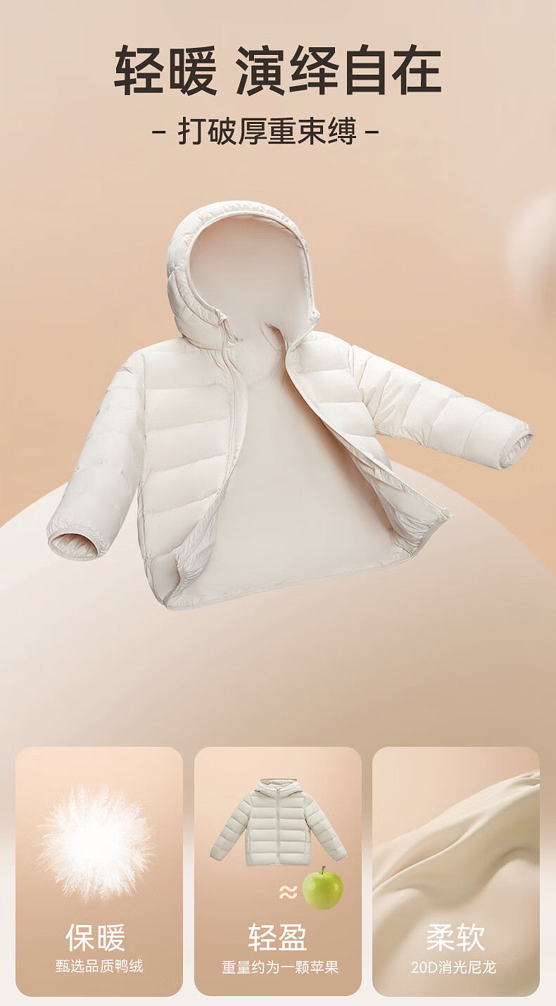 雪中飞秋冬新款儿童轻盈羽绒服可爱保暖轻薄舒适连帽羽绒服外套