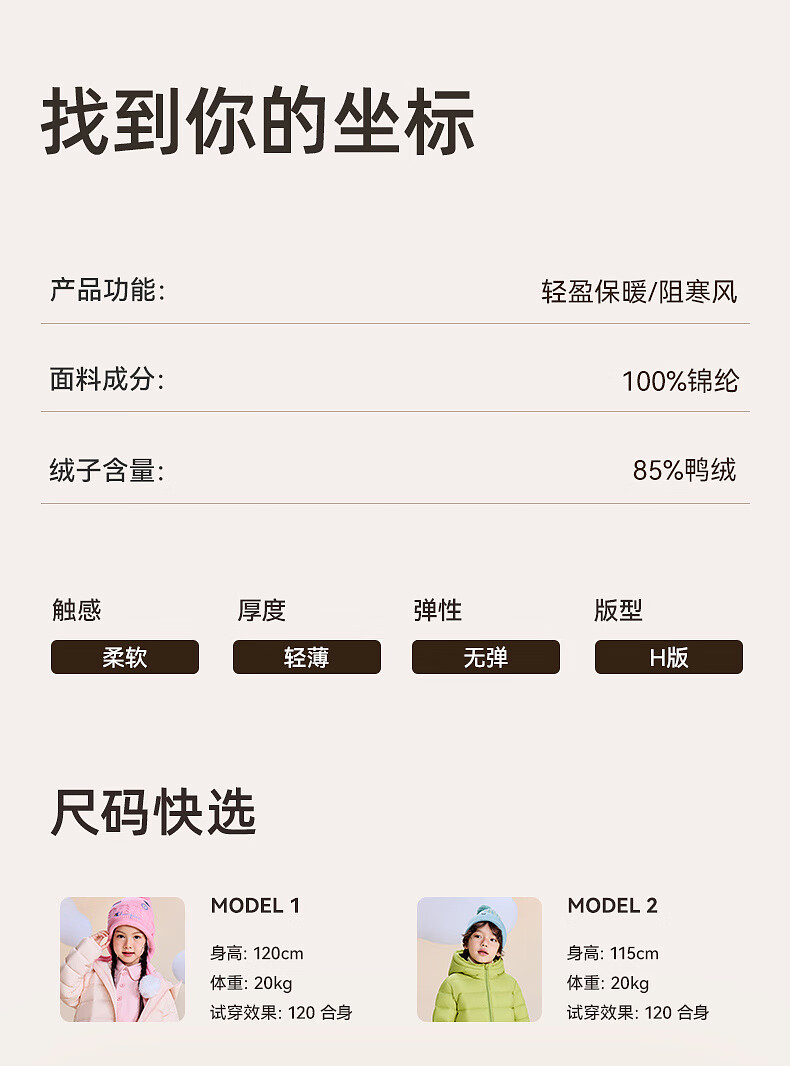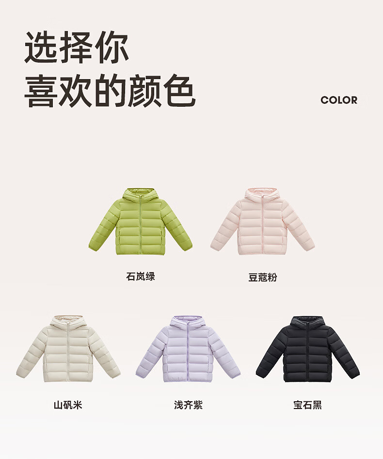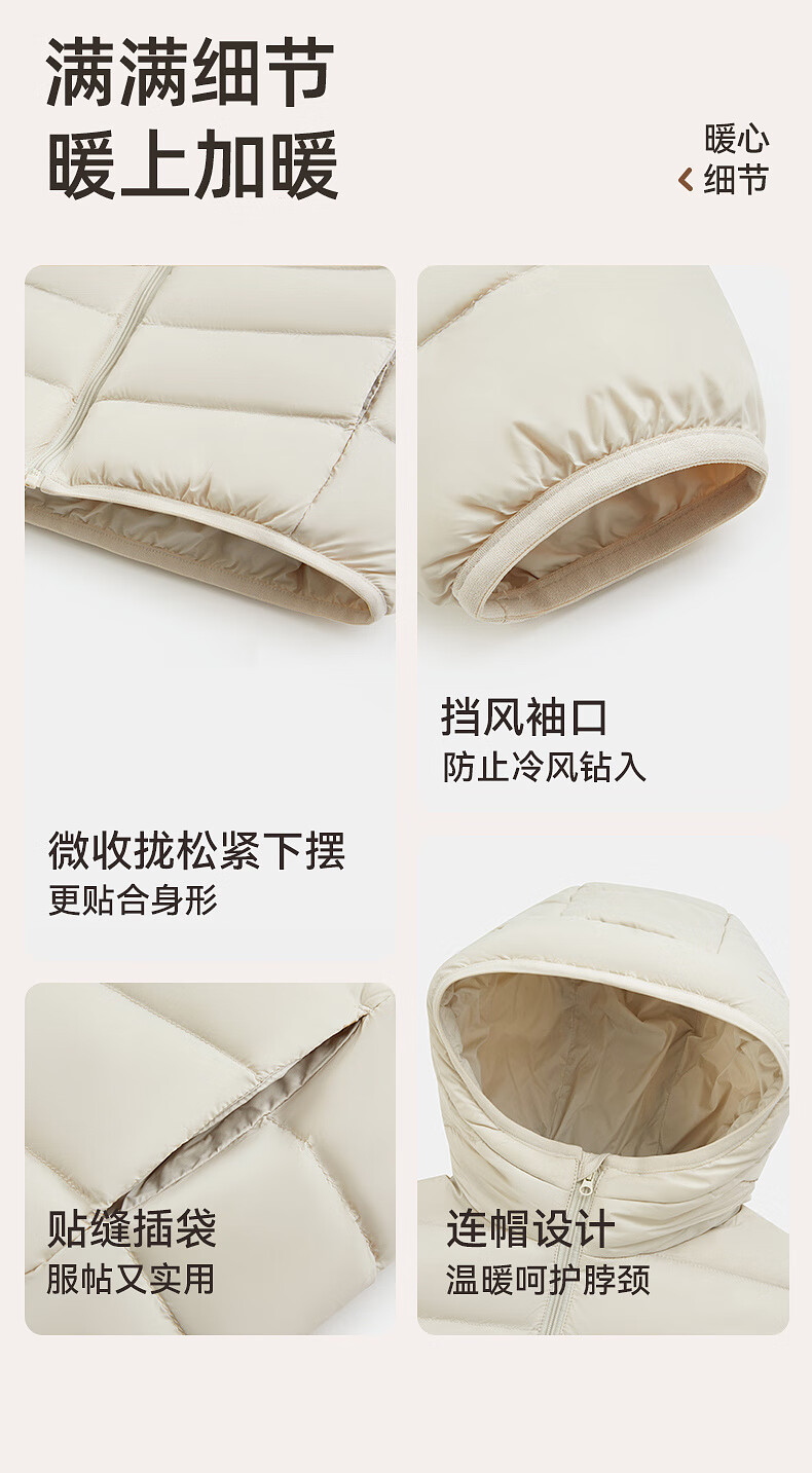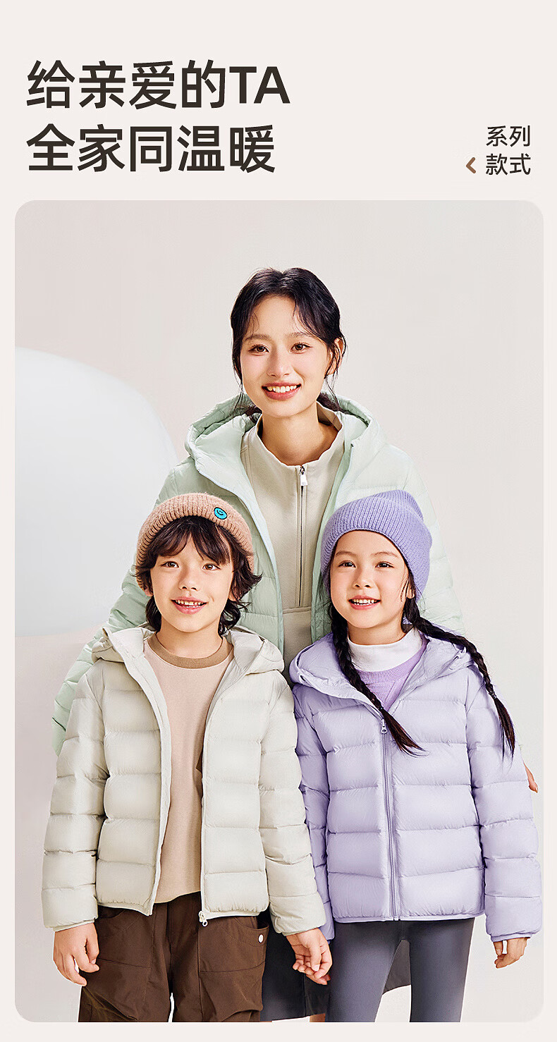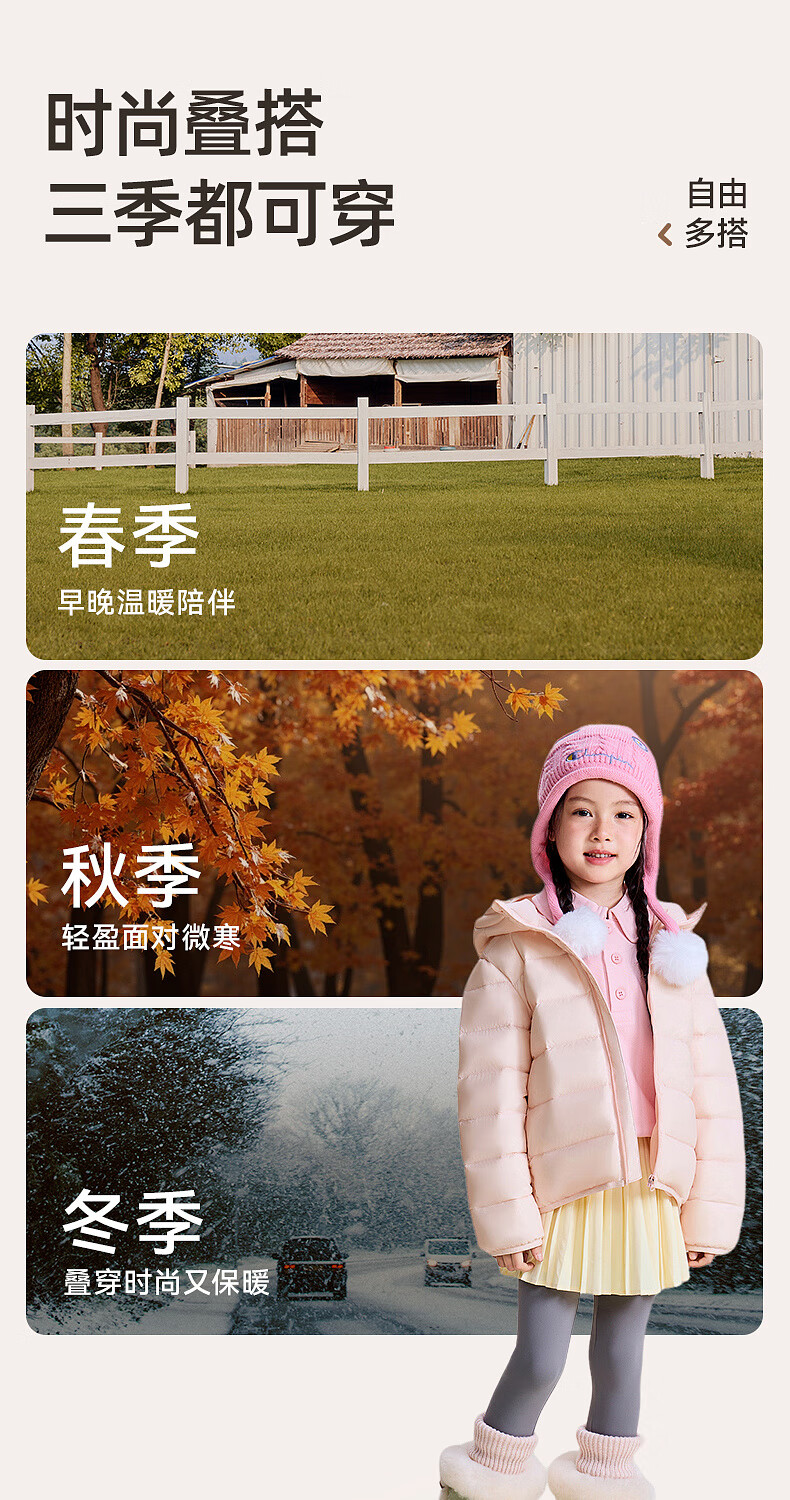 雪中飞秋冬新款儿童轻盈羽绒服可爱保暖轻薄舒适连帽羽绒服外套