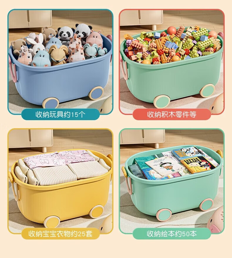 纳份爱手提收纳箱家用大容量衣服玩具零食书本整理箱子储物箱塑料储物筐 三件套-小+中+大【手提带盖丨四面开盖】