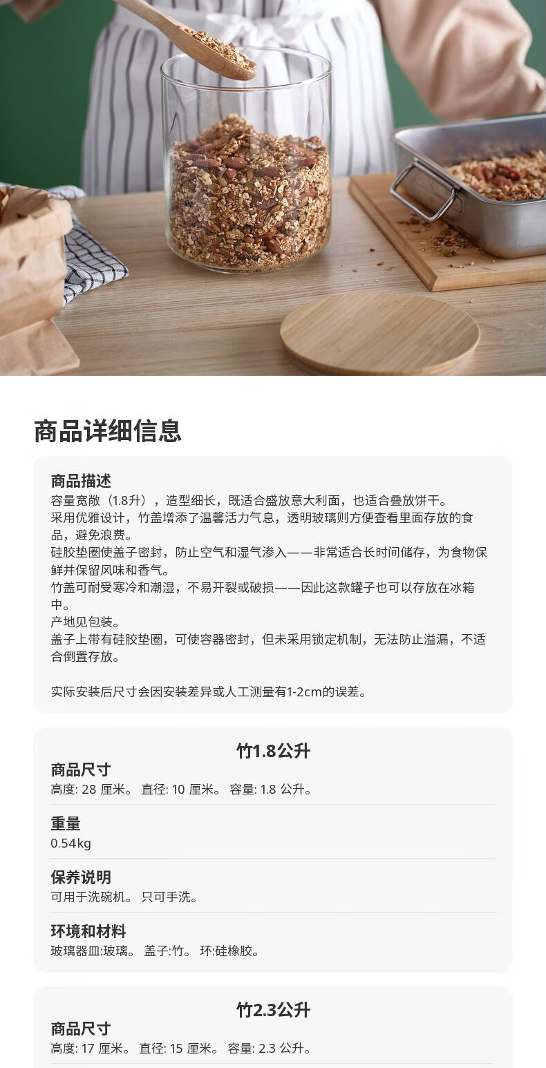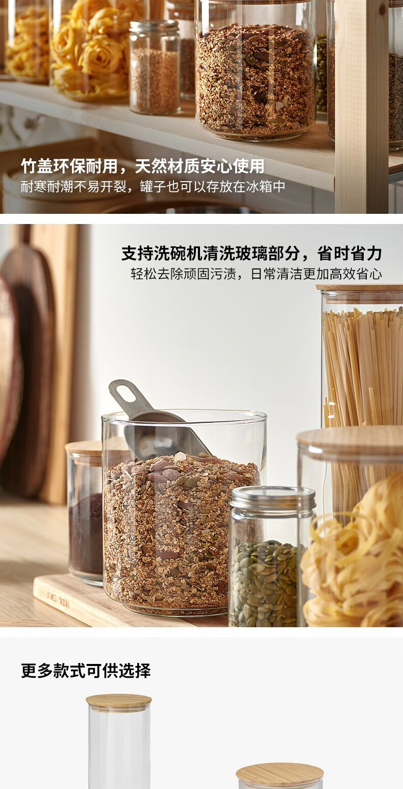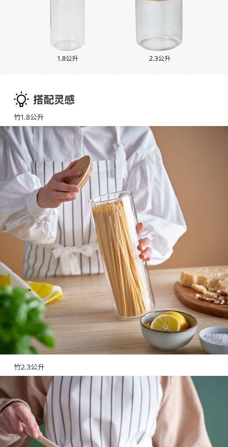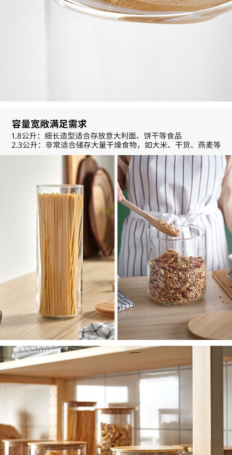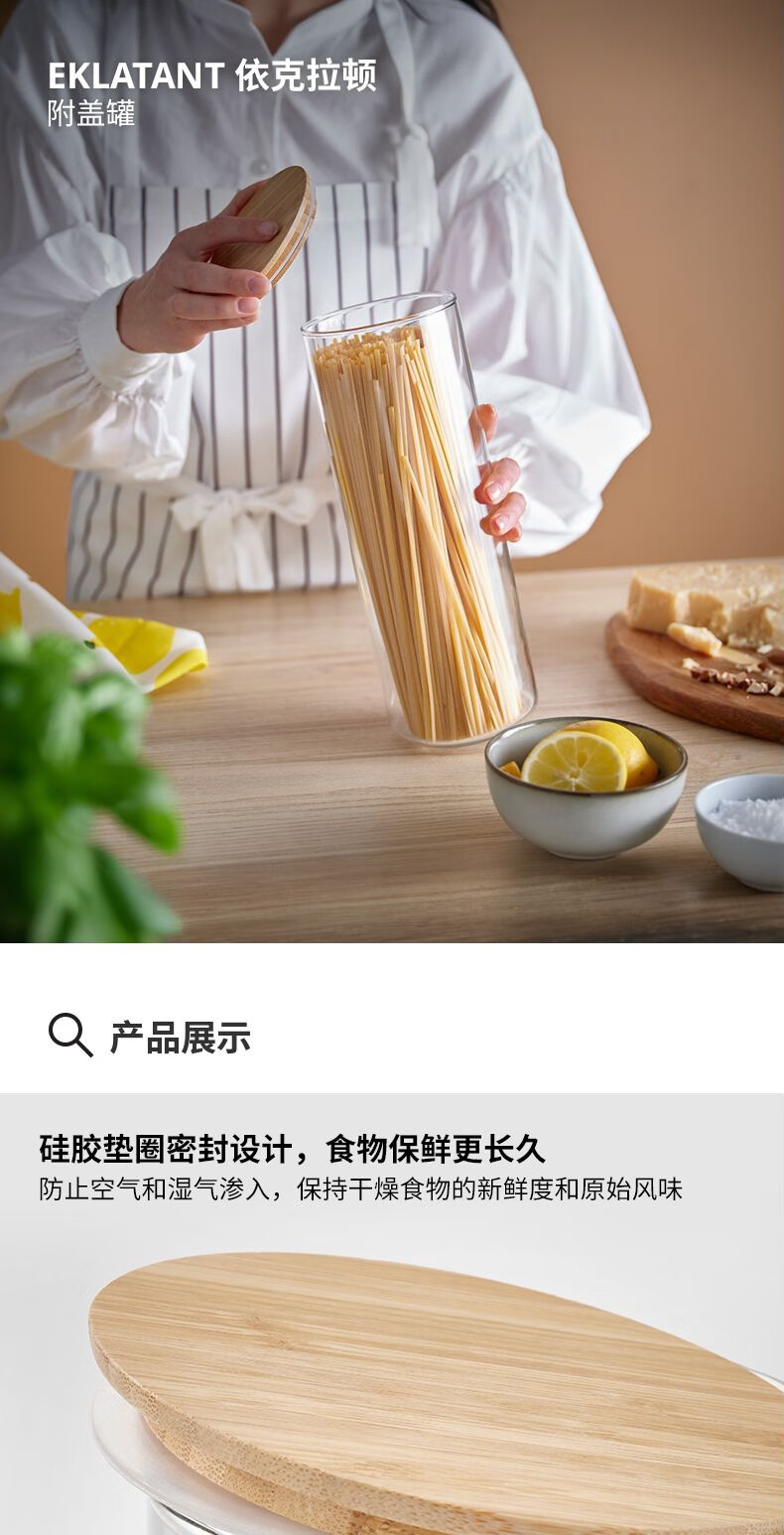 宜家(IKEA)【新品】EKLATANT依克拉顿附盖罐厨房面条保鲜储物罐 透明玻璃/竹附盖罐1.8L