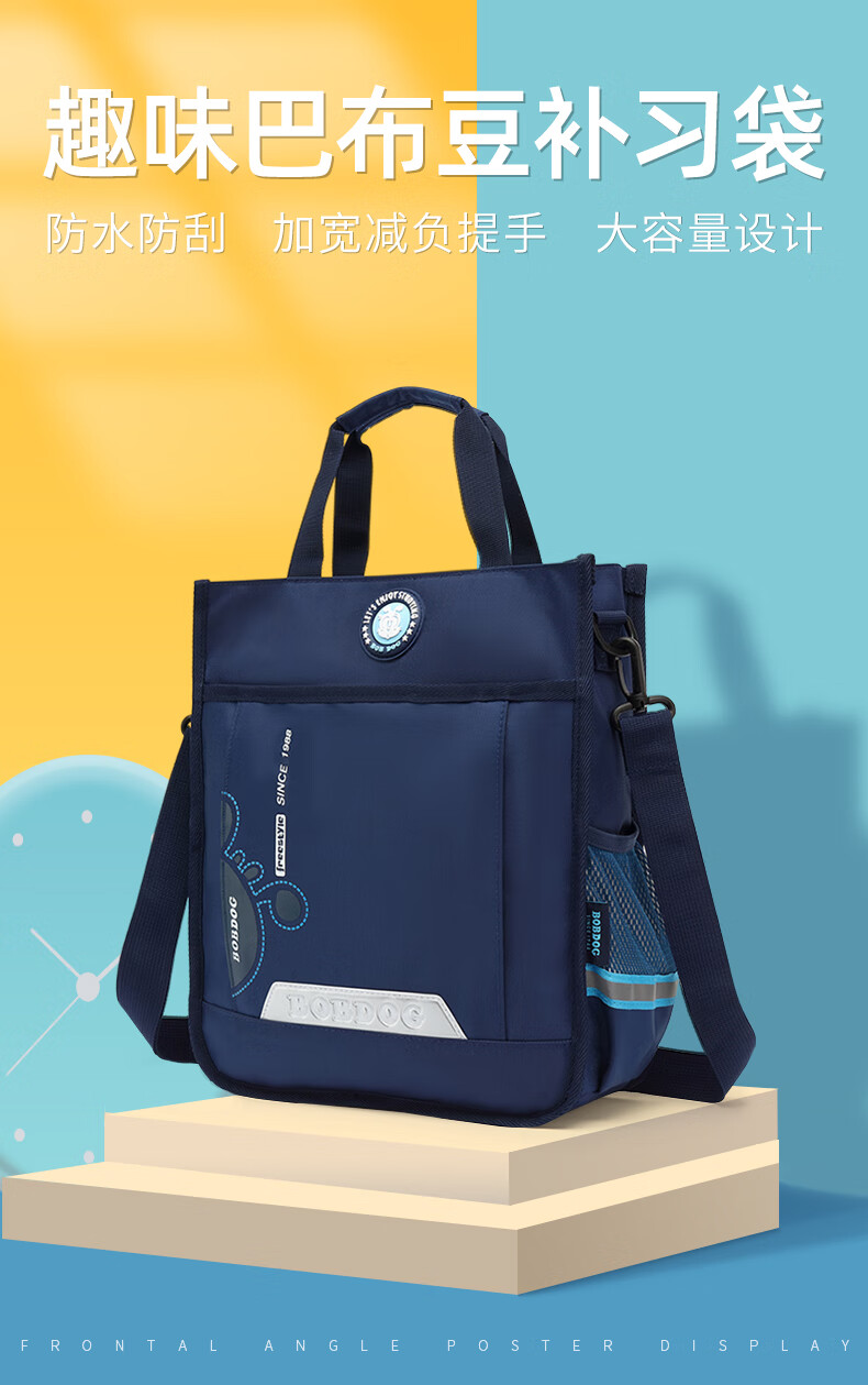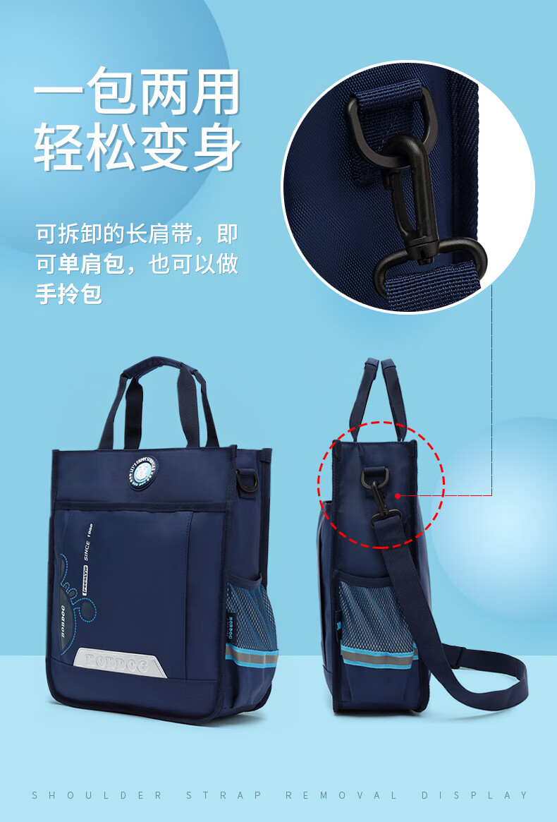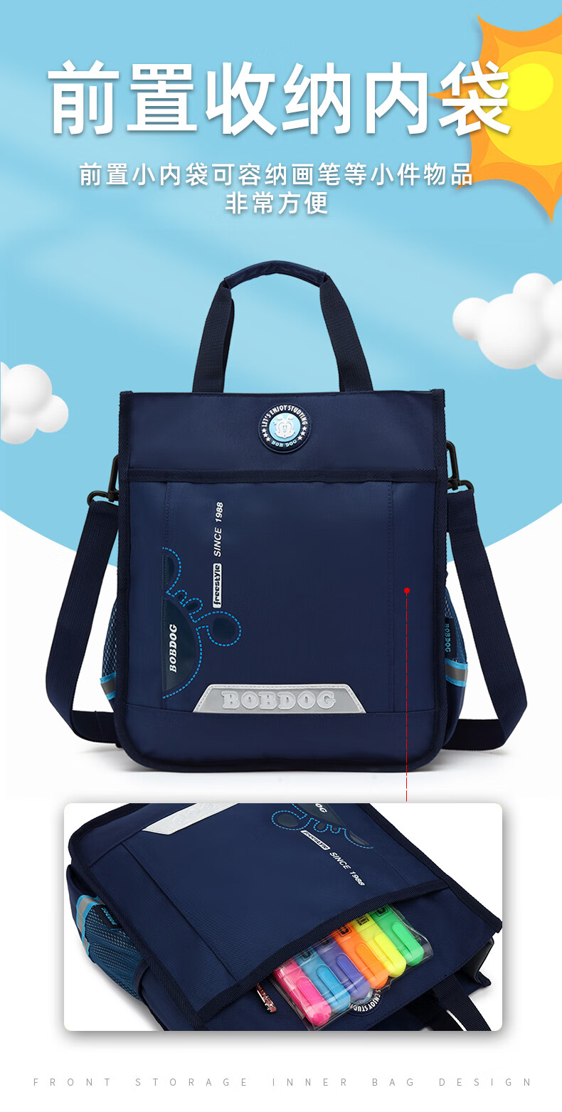 巴布豆补习袋小学生手提书包儿童单肩斜跨领书袋男童课外补课包女 1708宝蓝手提款