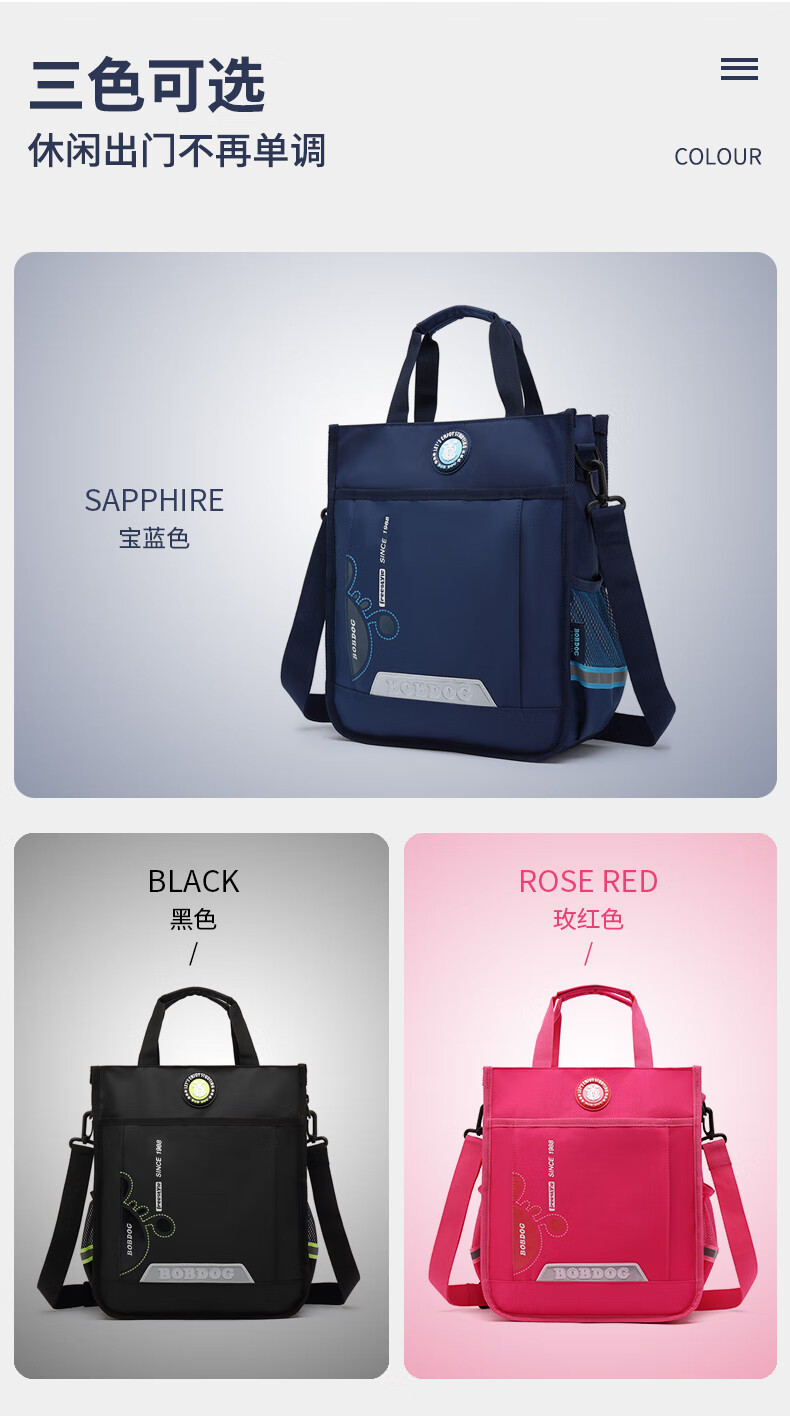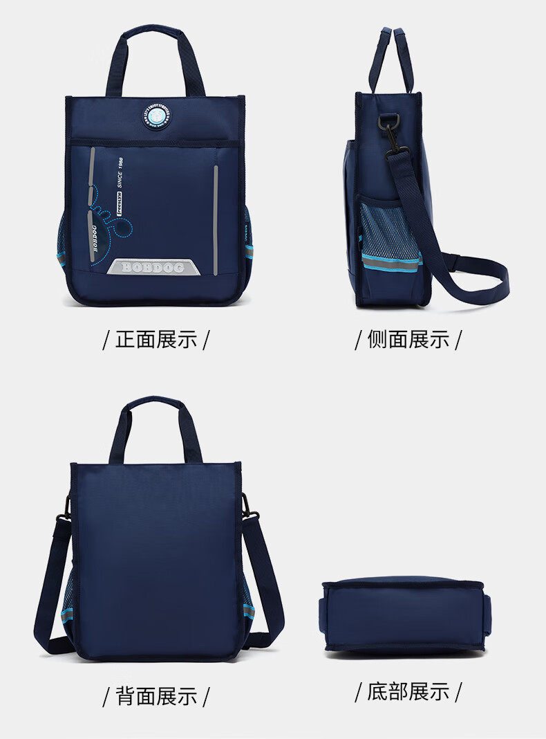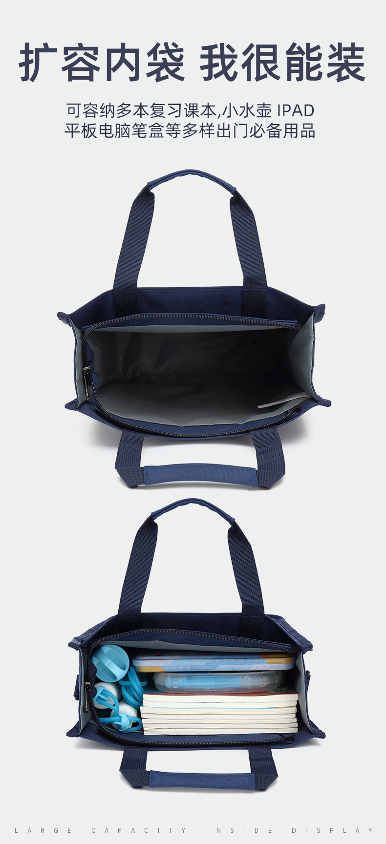 巴布豆补习袋小学生手提书包儿童单肩斜跨领书袋男童课外补课包女 1708宝蓝手提款