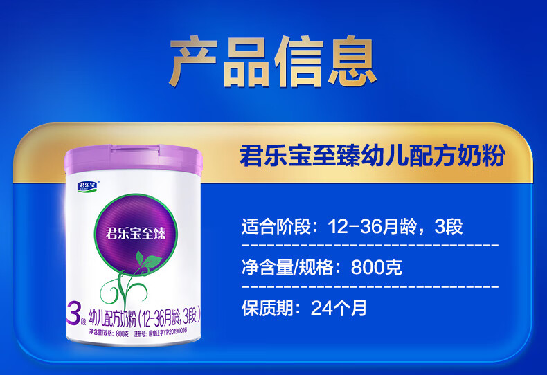 君乐宝至臻 3段幼儿配方奶粉(12-36月龄)800克*6听装