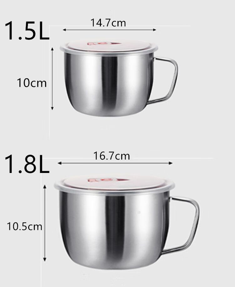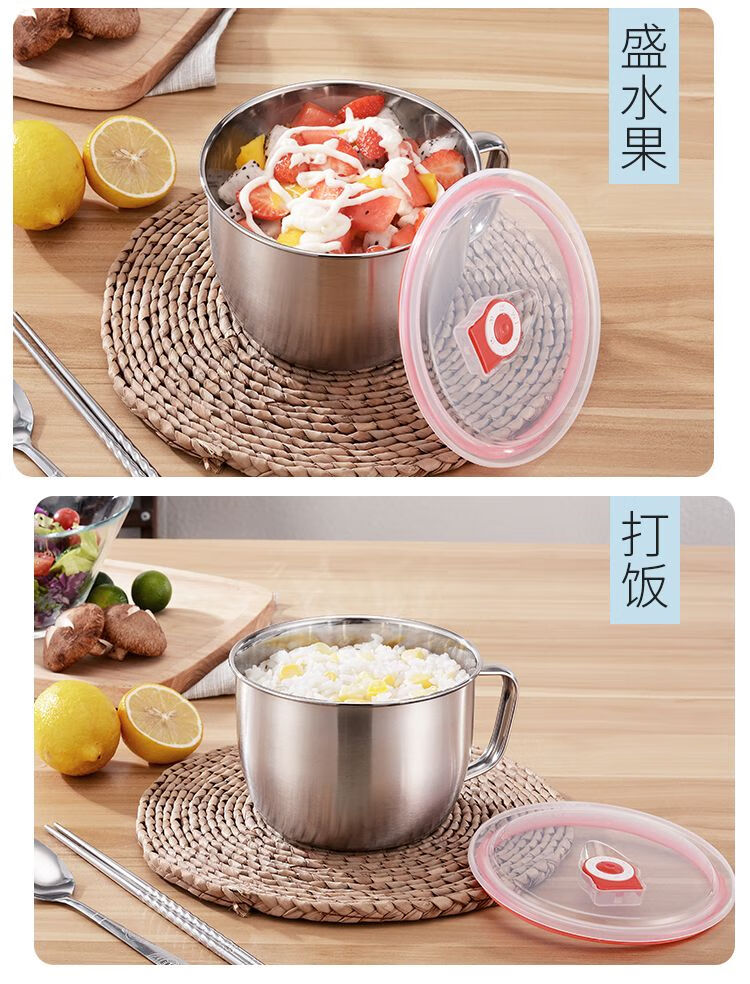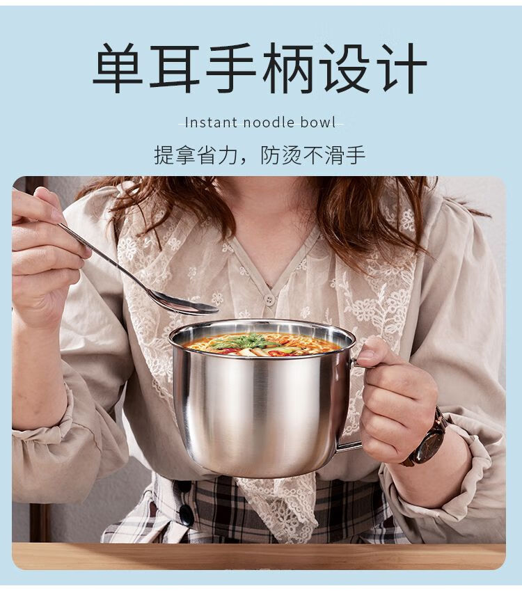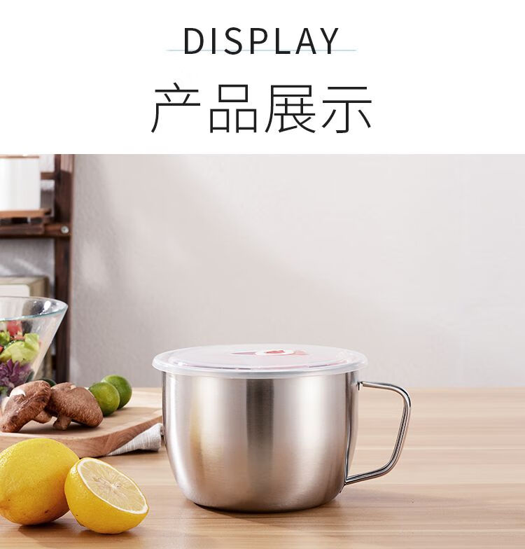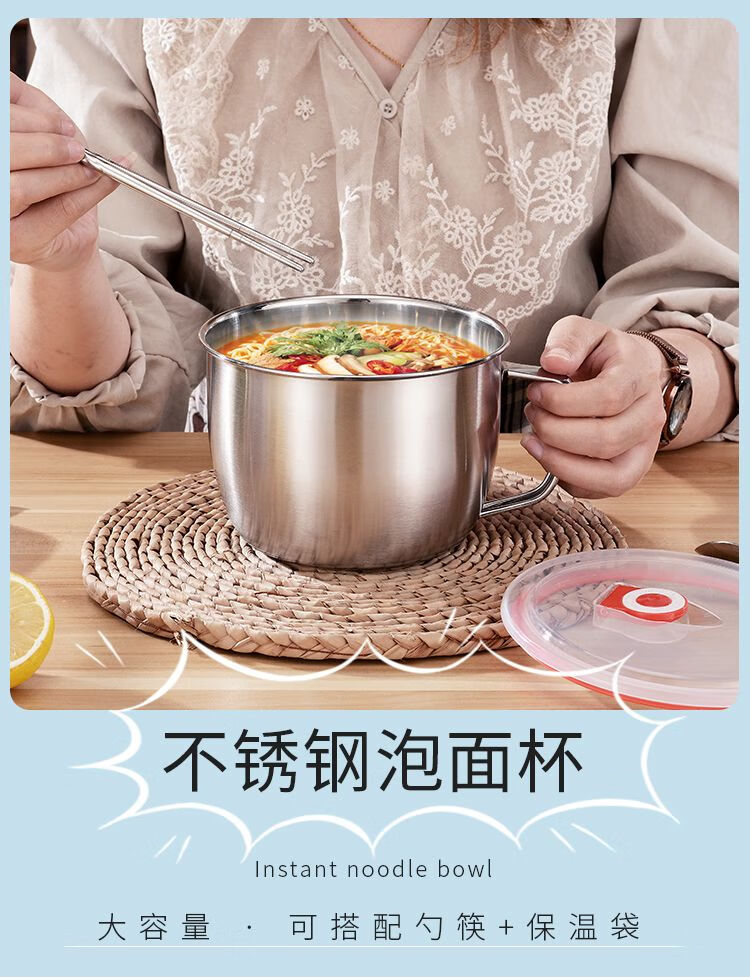 DEATKN不锈钢泡面碗带盖汤碗学生饭盒食堂打饭碗快餐方便面杯带筷勺 1.3L泡面杯【普通款】