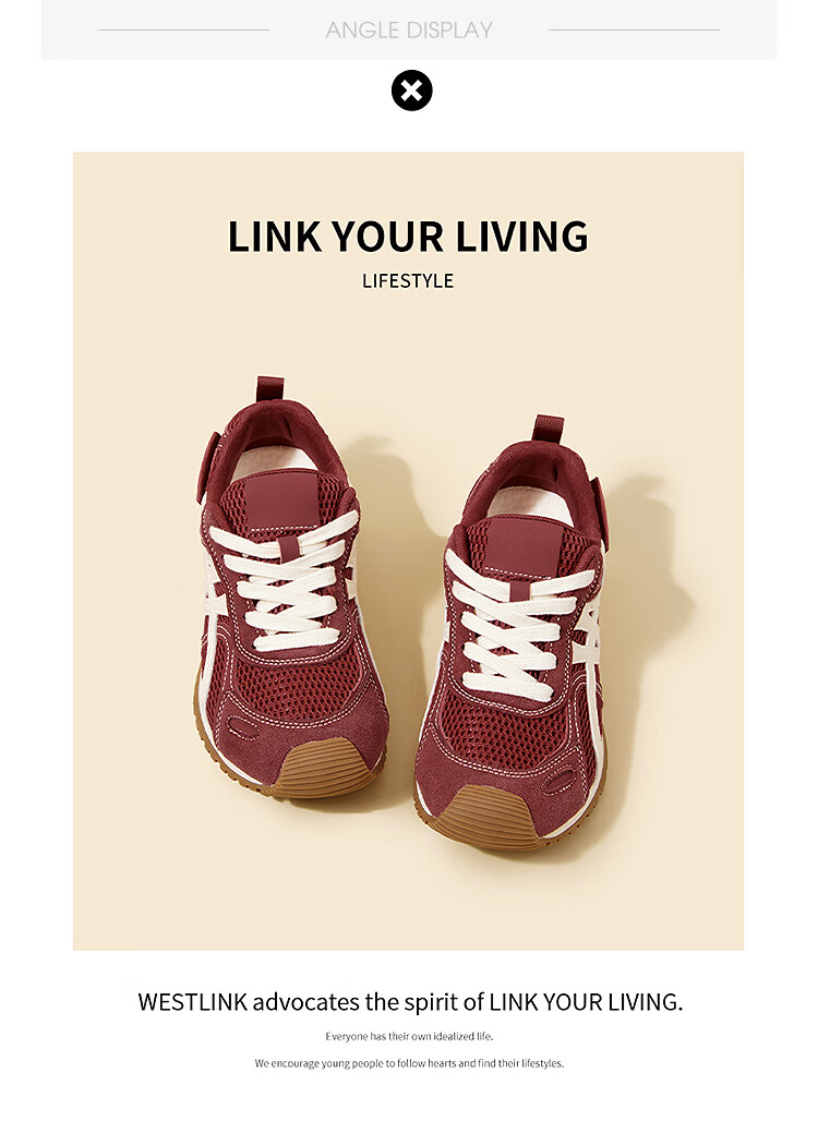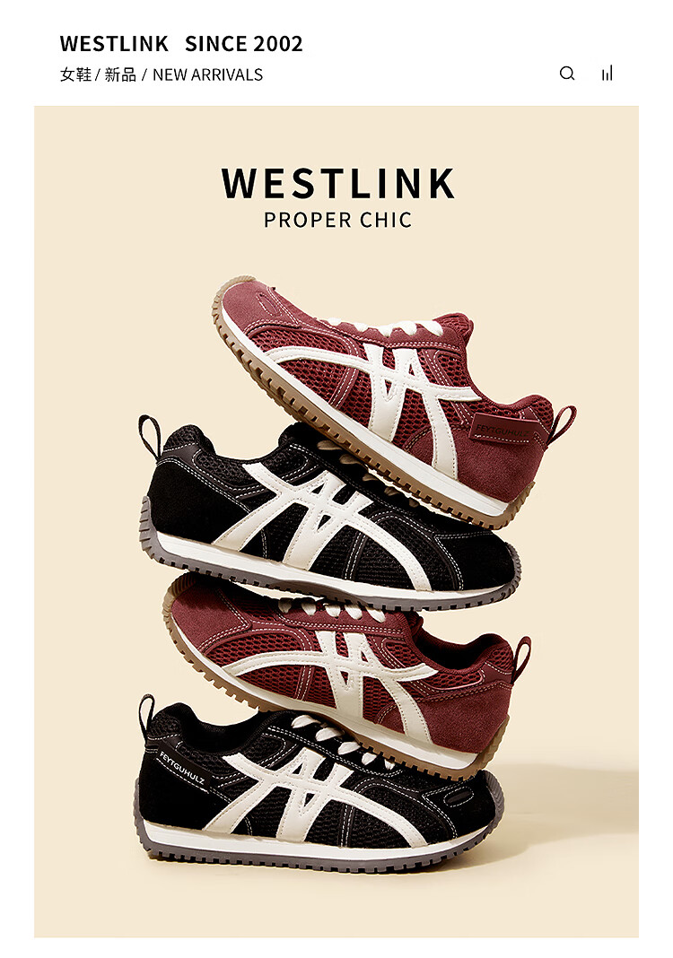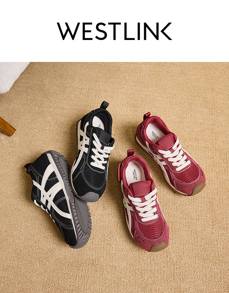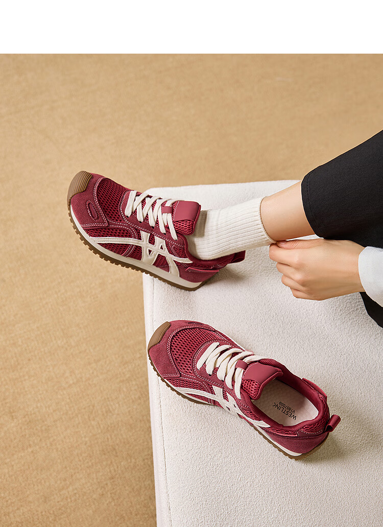 西遇(Westlink)平底德训鞋女2025新款秋季超火复古双鞋带棕色休闲轻便运动鞋 红色 38 (240)
