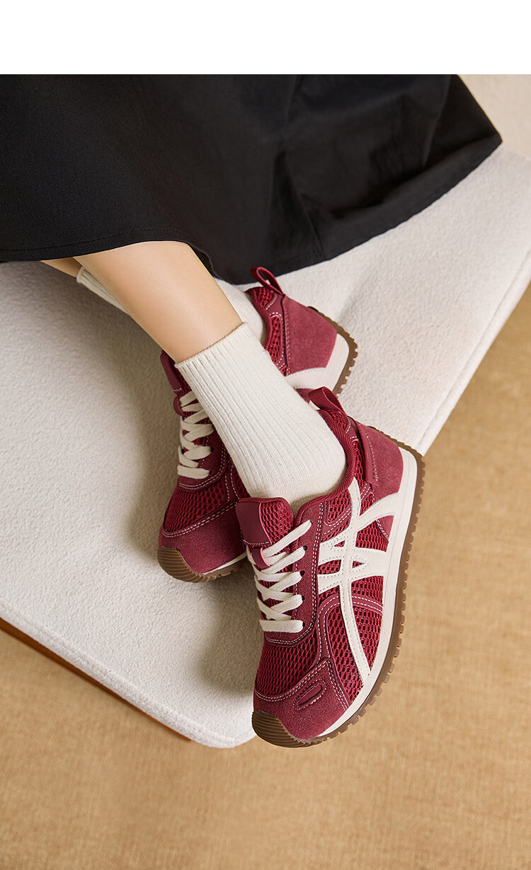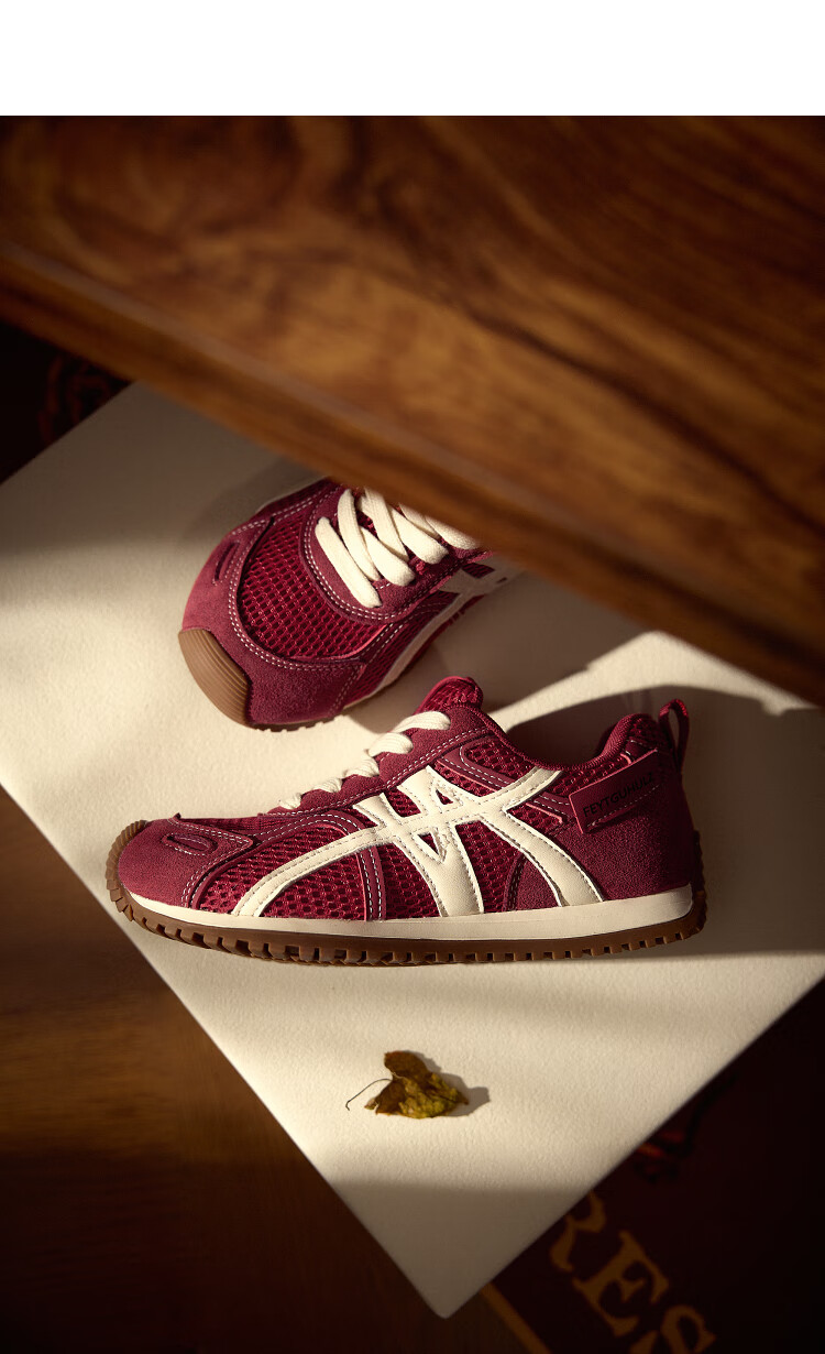 西遇平底德训鞋女2025新款秋季百搭薄底休闲鞋复古红色运动鞋 红色 36 (230)
