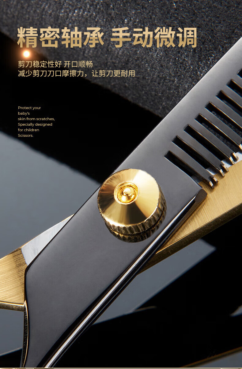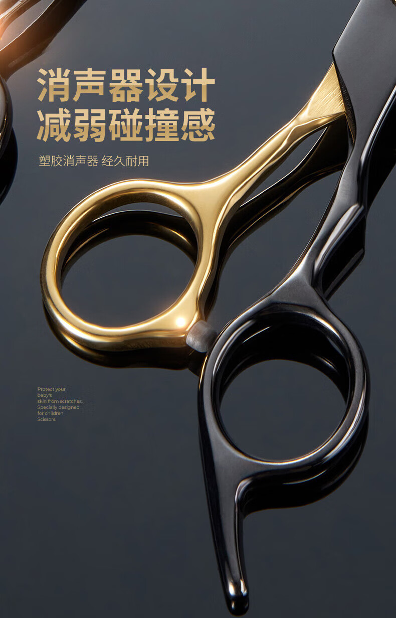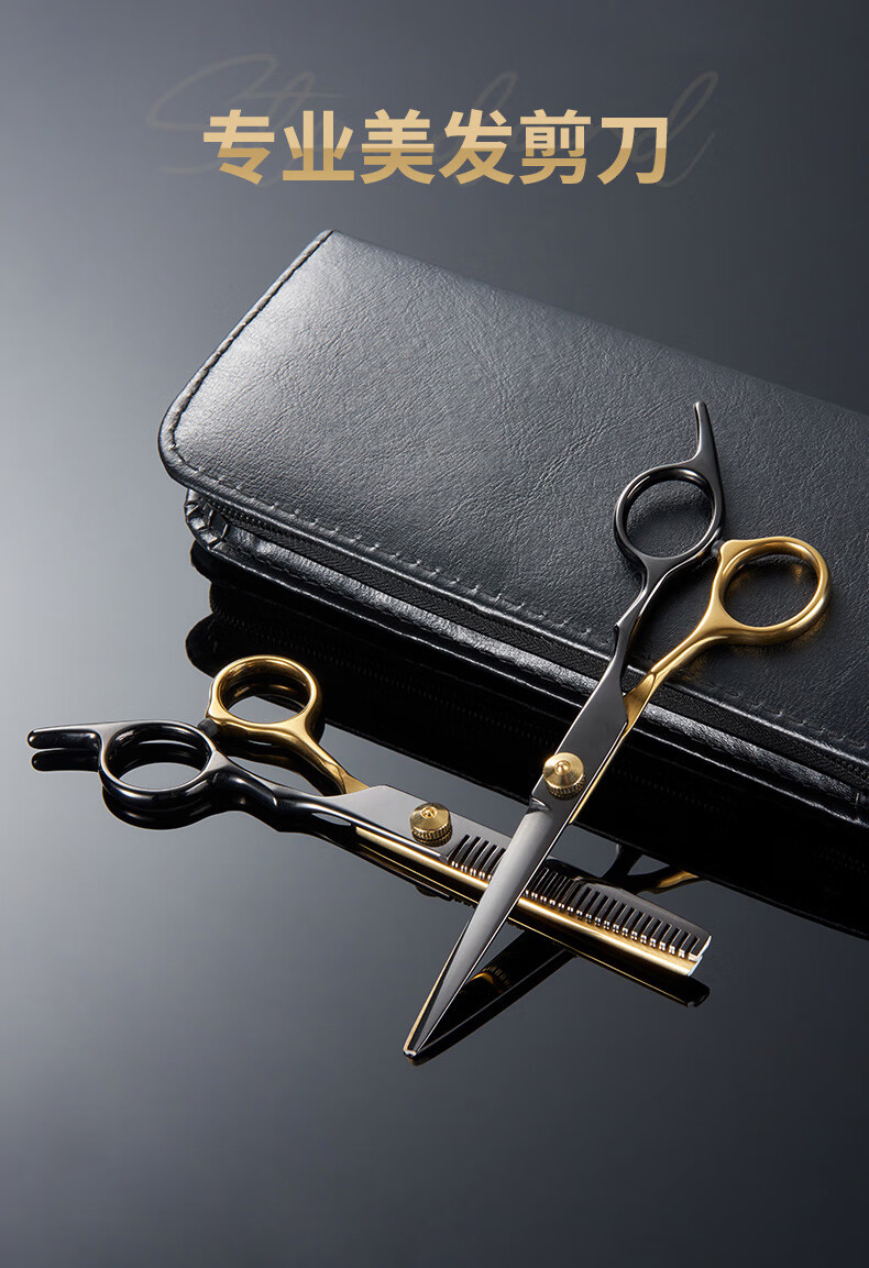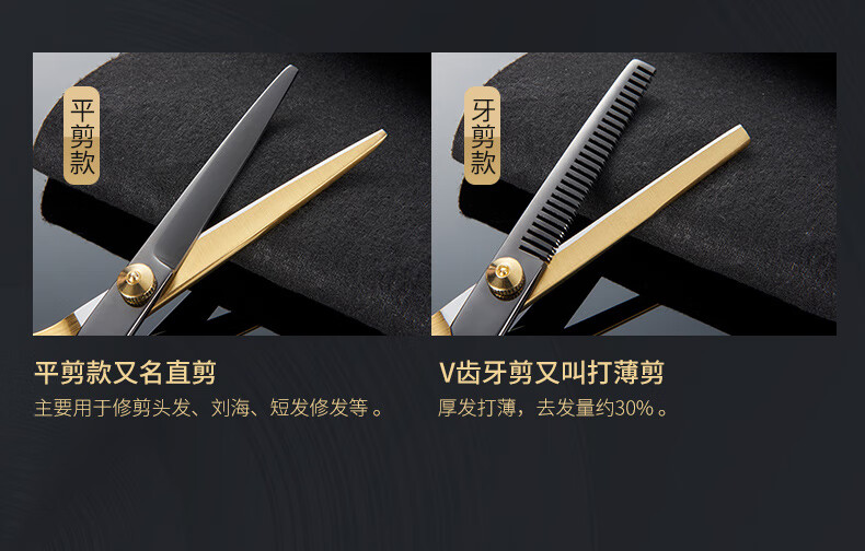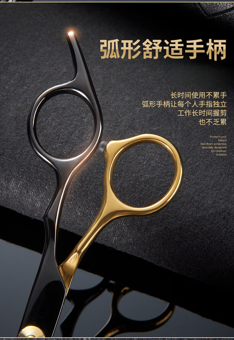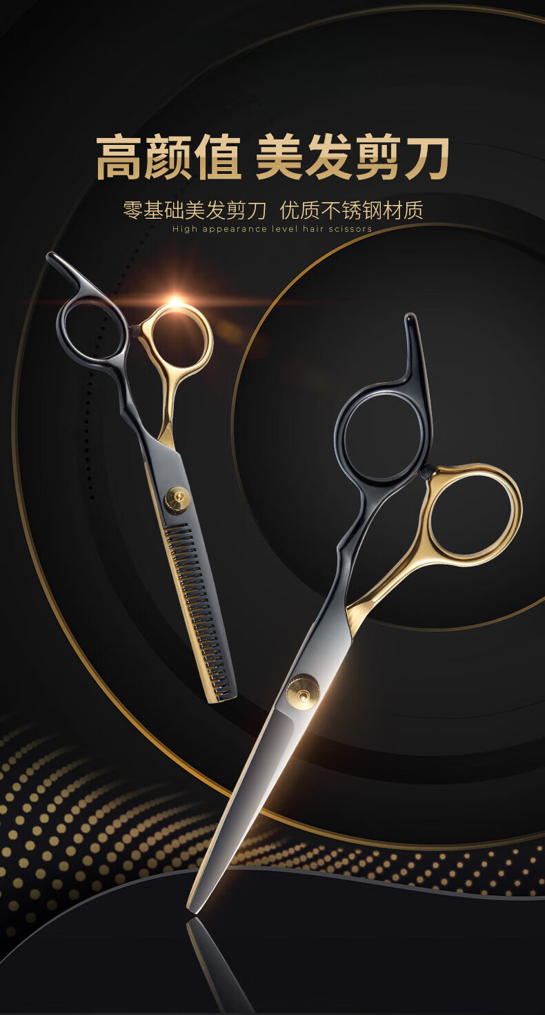 AILUKI日本理发剪刀美发剪专业无痕牙剪打薄刘海神器自己剪头发家用工具 黑金款-平剪(金色螺丝)