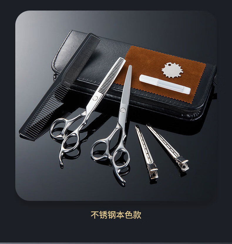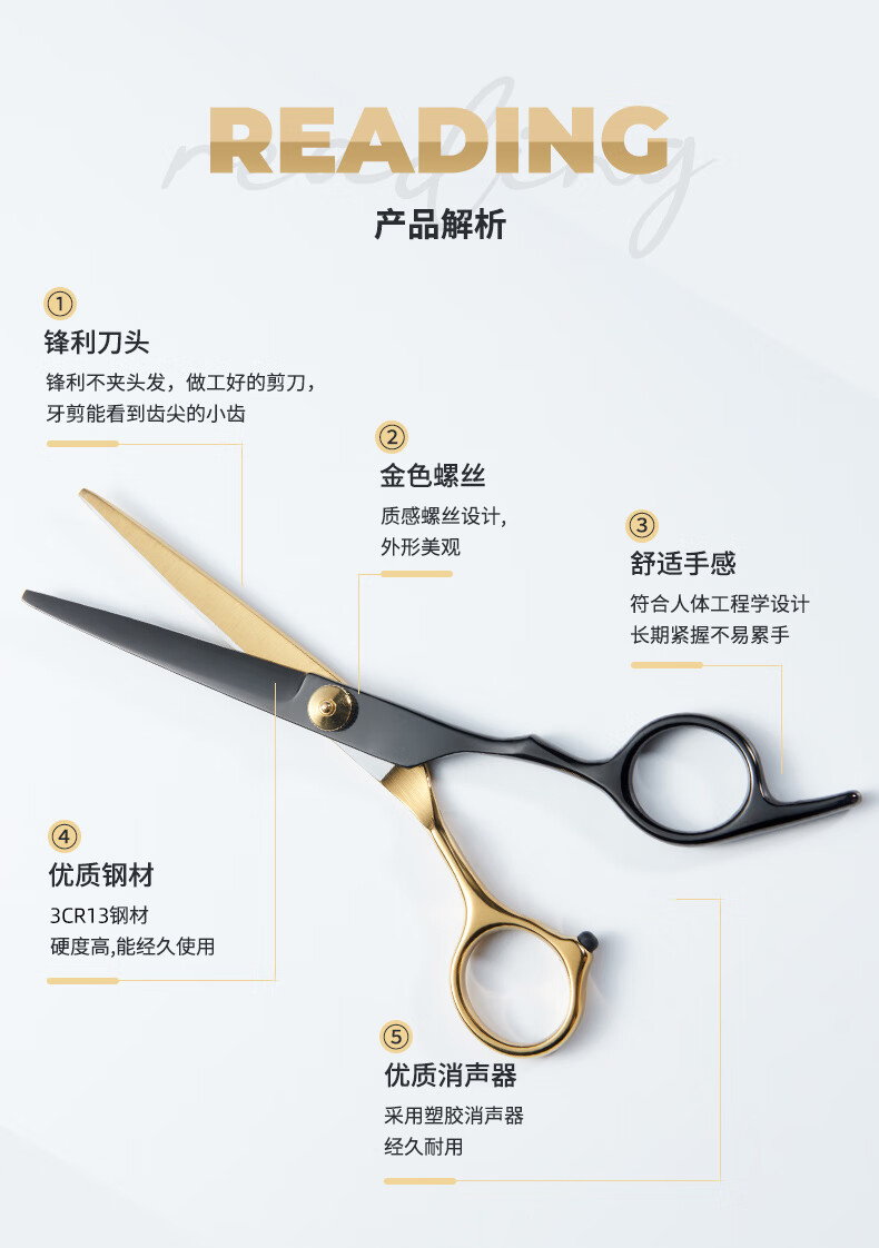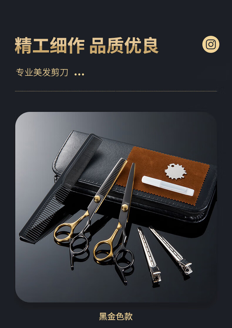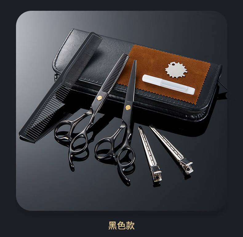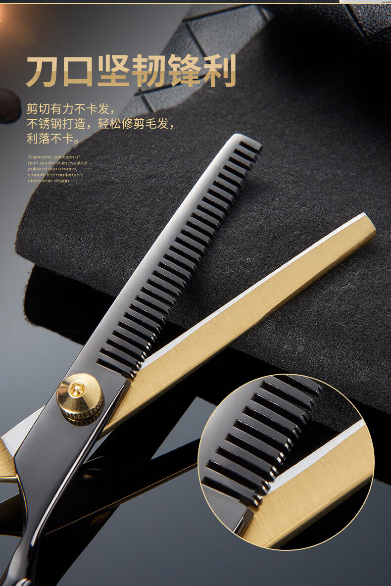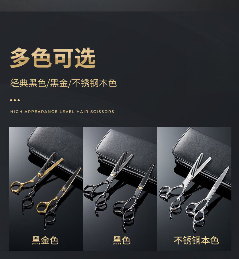 AILUKI日本理发剪刀美发剪专业无痕牙剪打薄刘海神器自己剪头发家用工具 黑金款-平剪(金色螺丝)