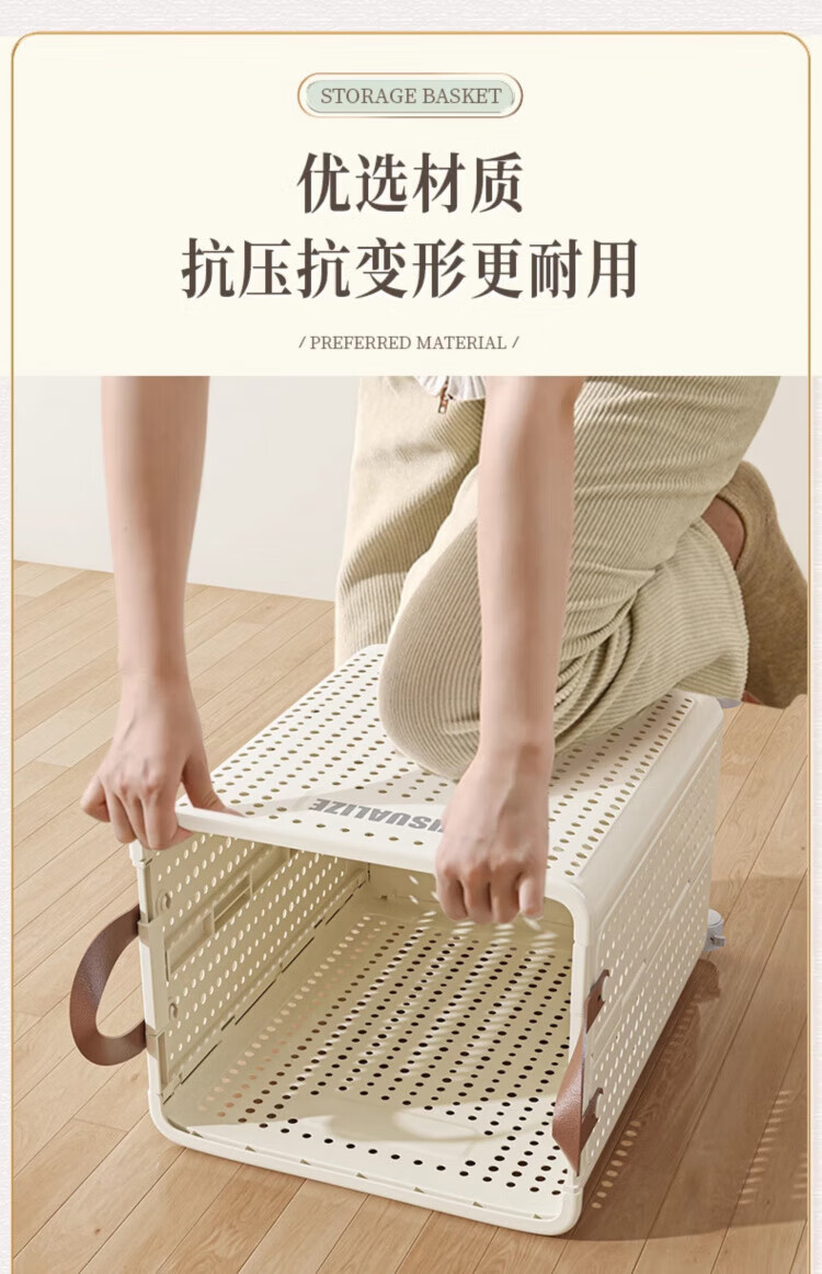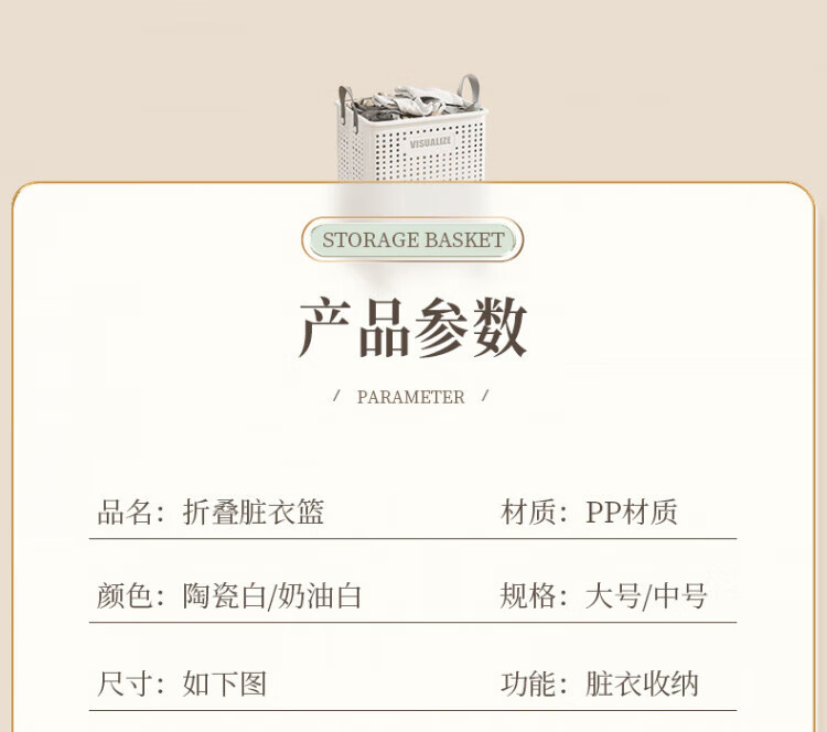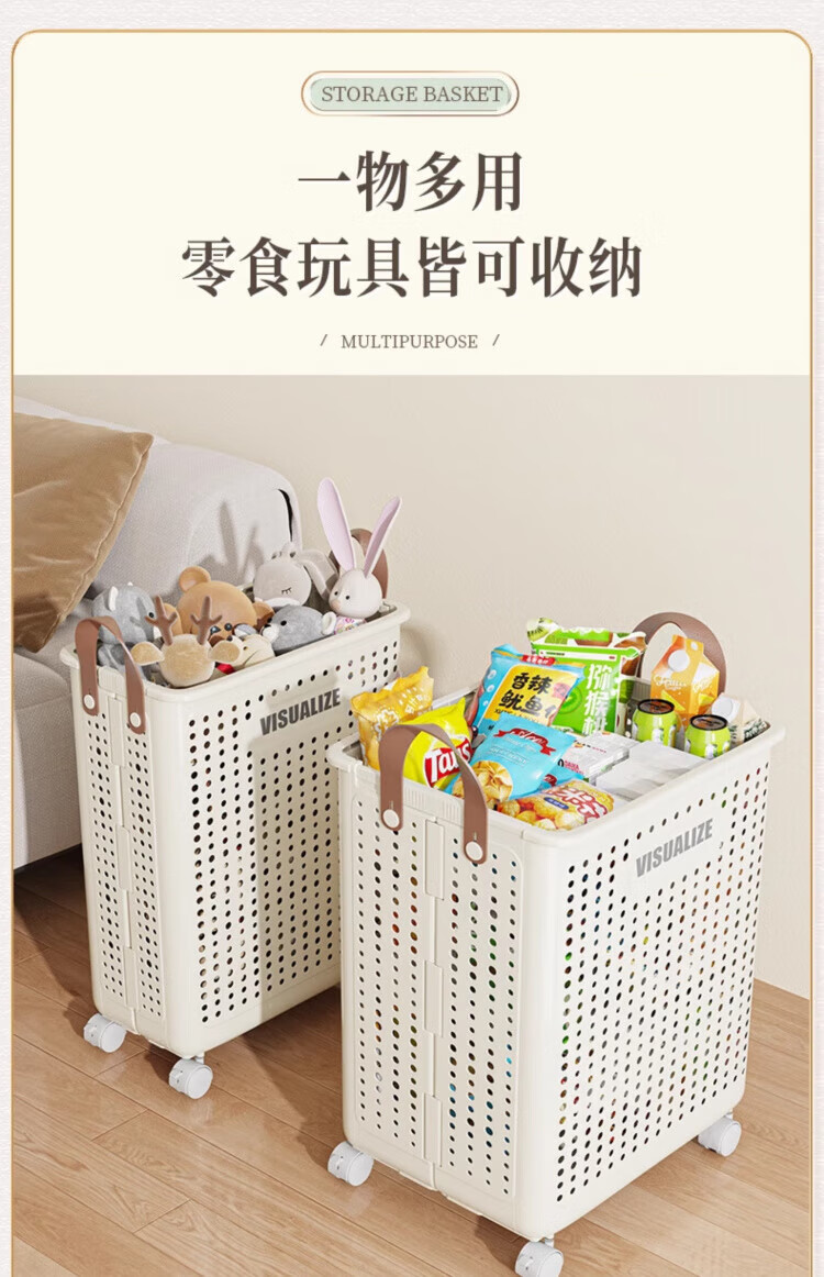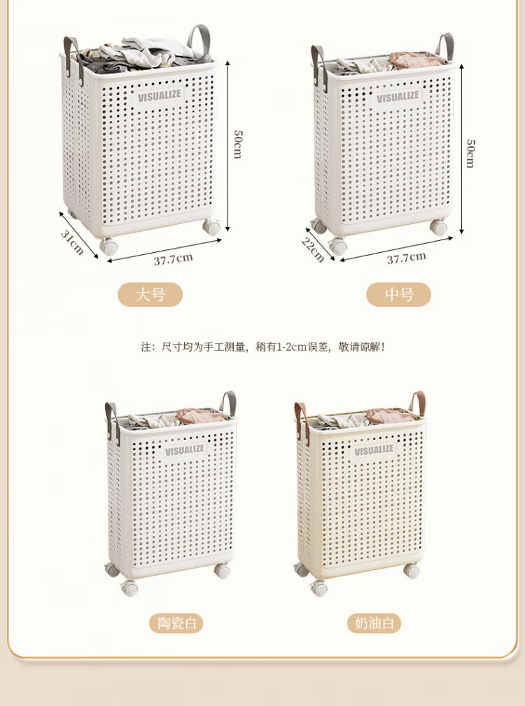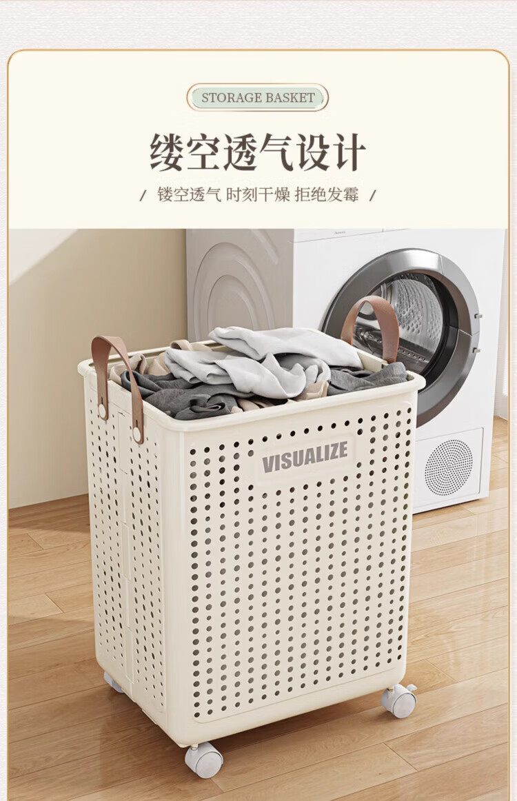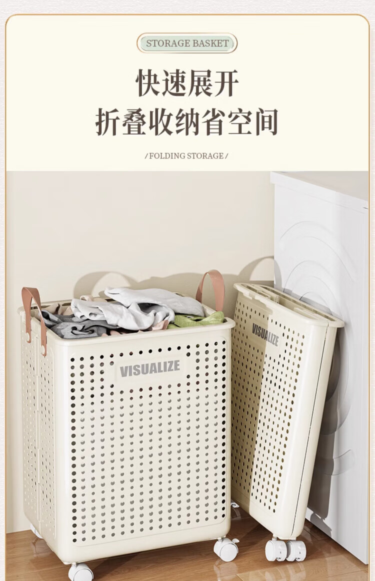 WCZ德国脏衣篮可折叠家用脏衣篓高颜值浴室洗衣篮脏衣服污衣篮收纳筐 象牙白大号带轮折叠脏衣篓