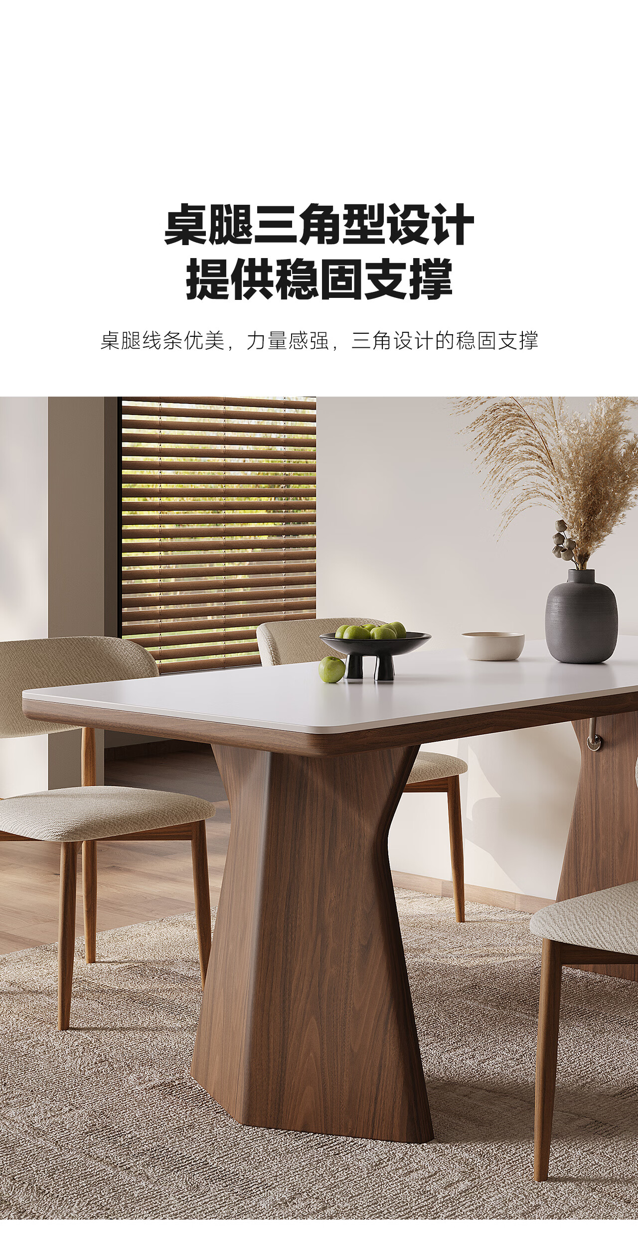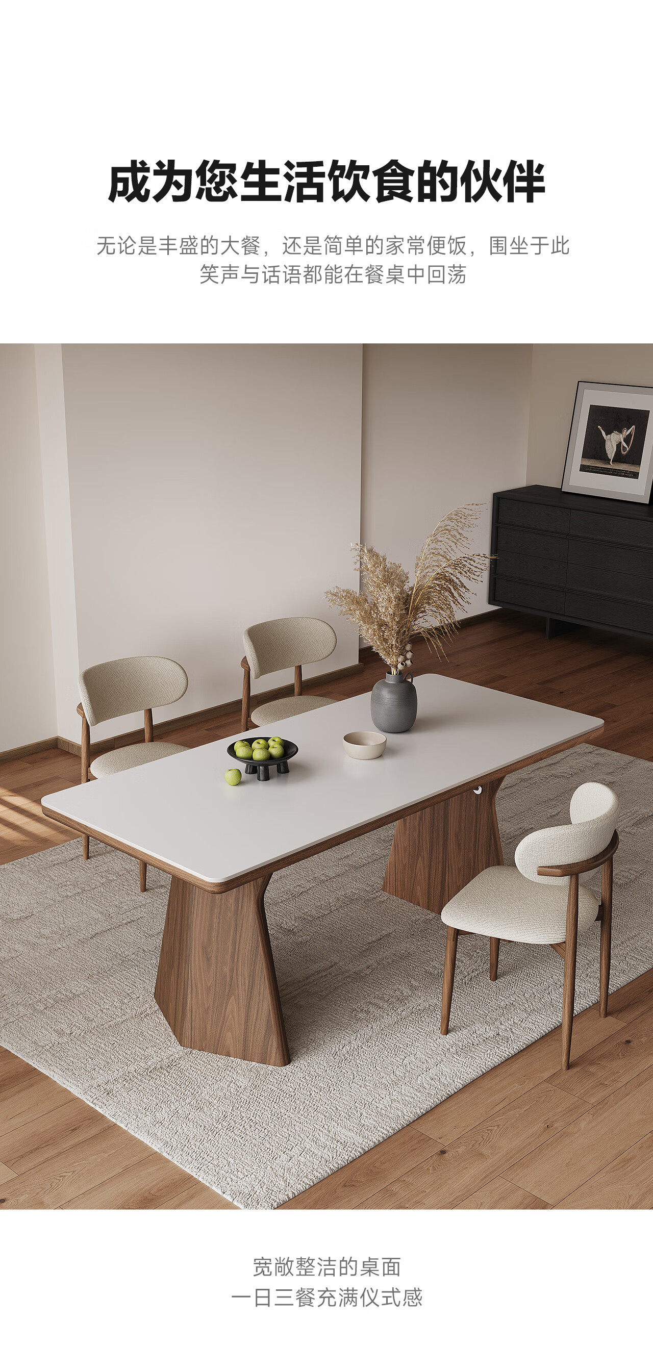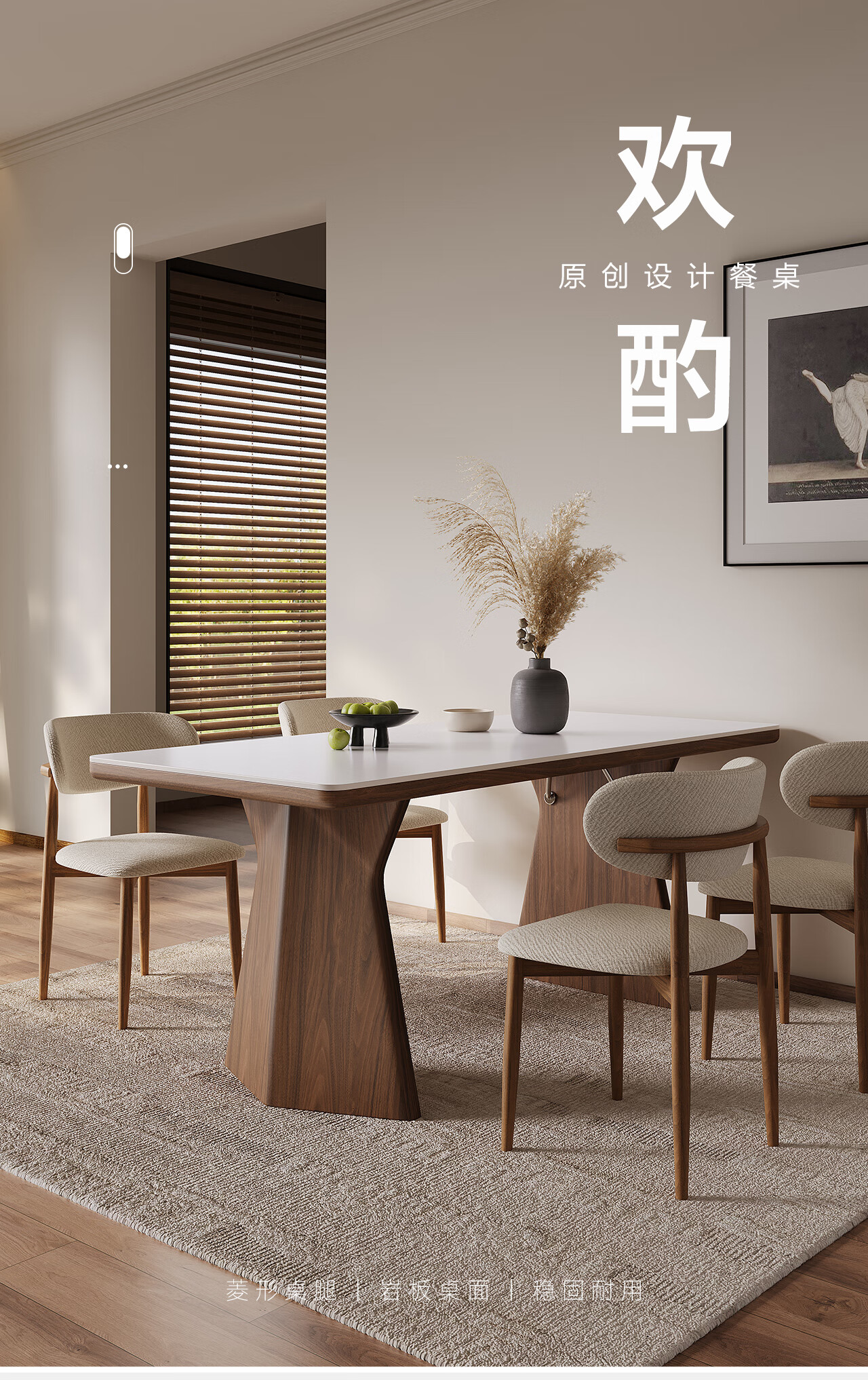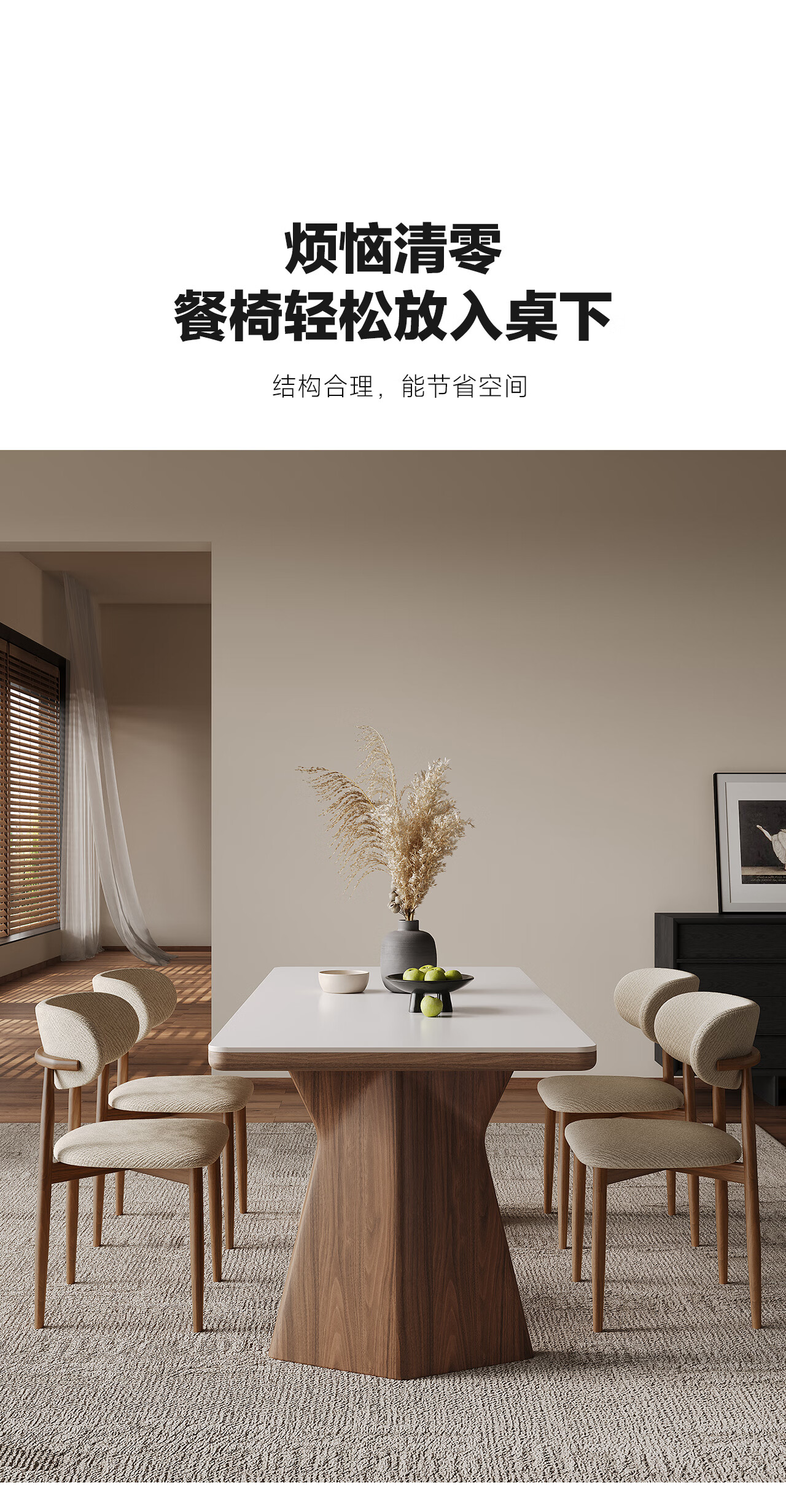 全慕(QUANMU)实木岩板餐桌椅组合现代简约中古风胡桃木色家用餐厅吃饭桌子歺桌 1.6米餐桌+6椅【简逸餐椅】