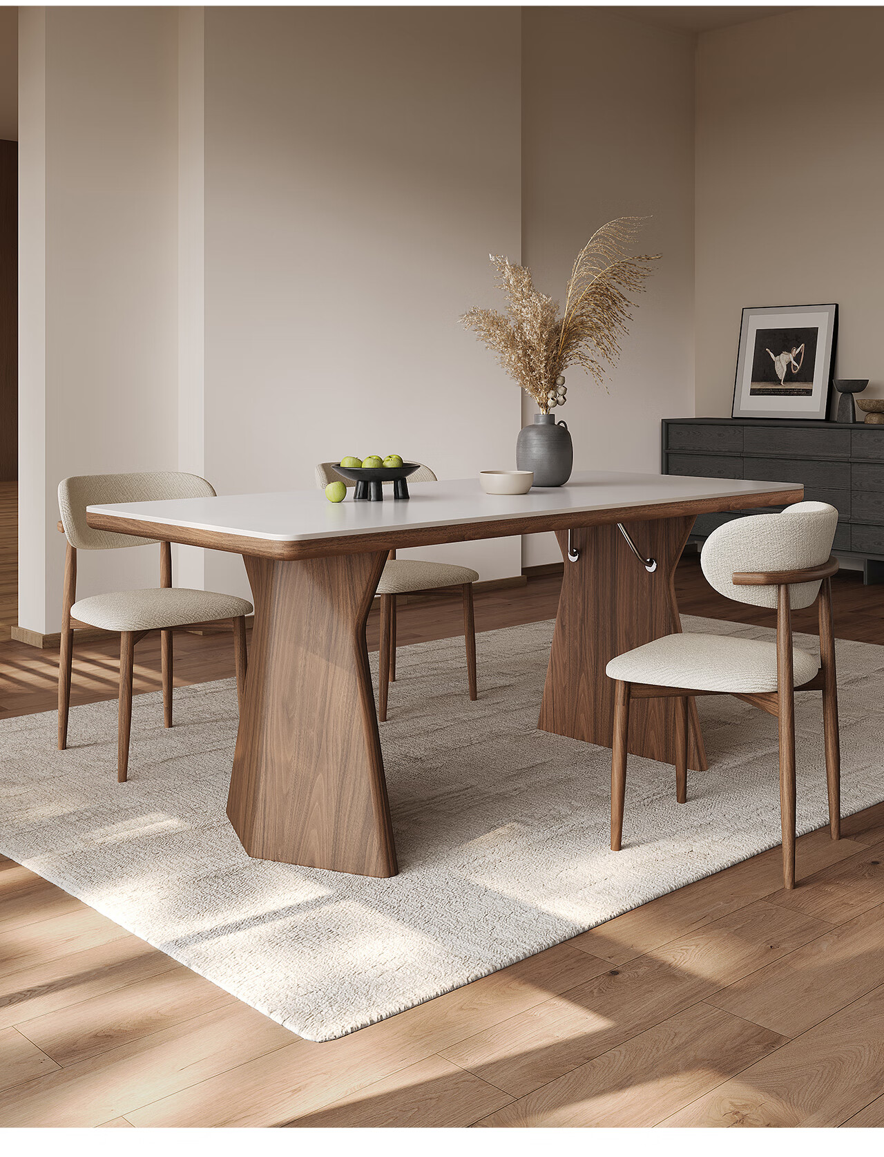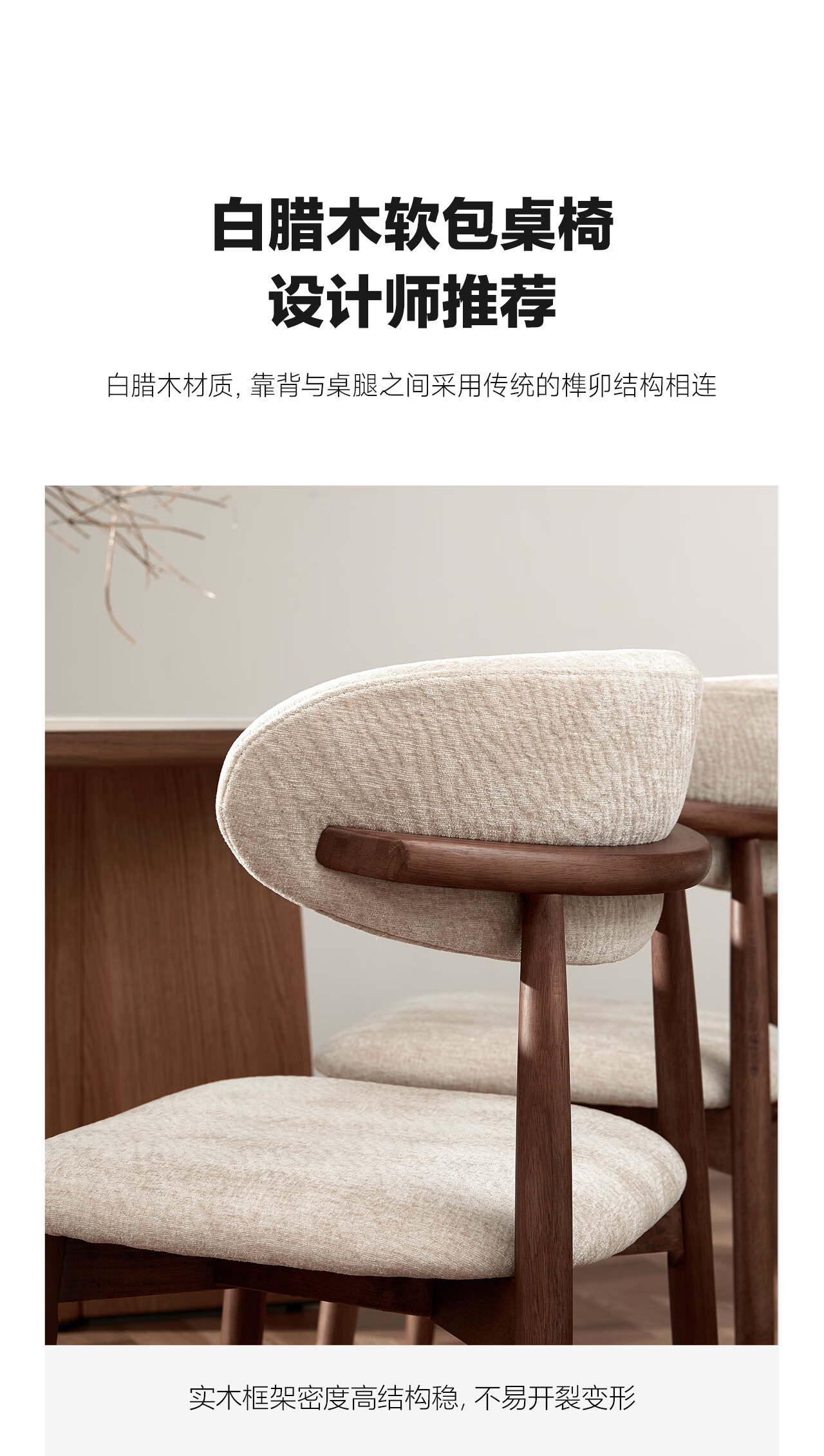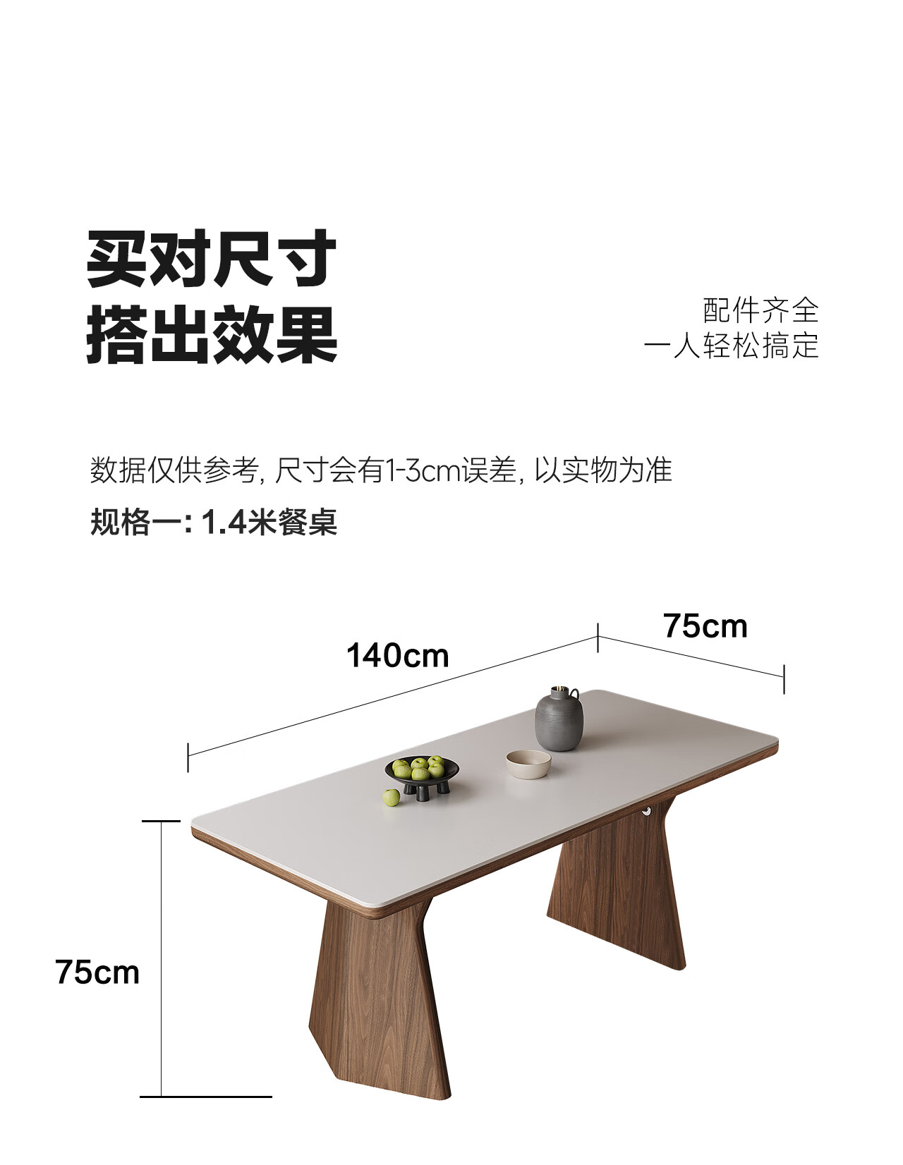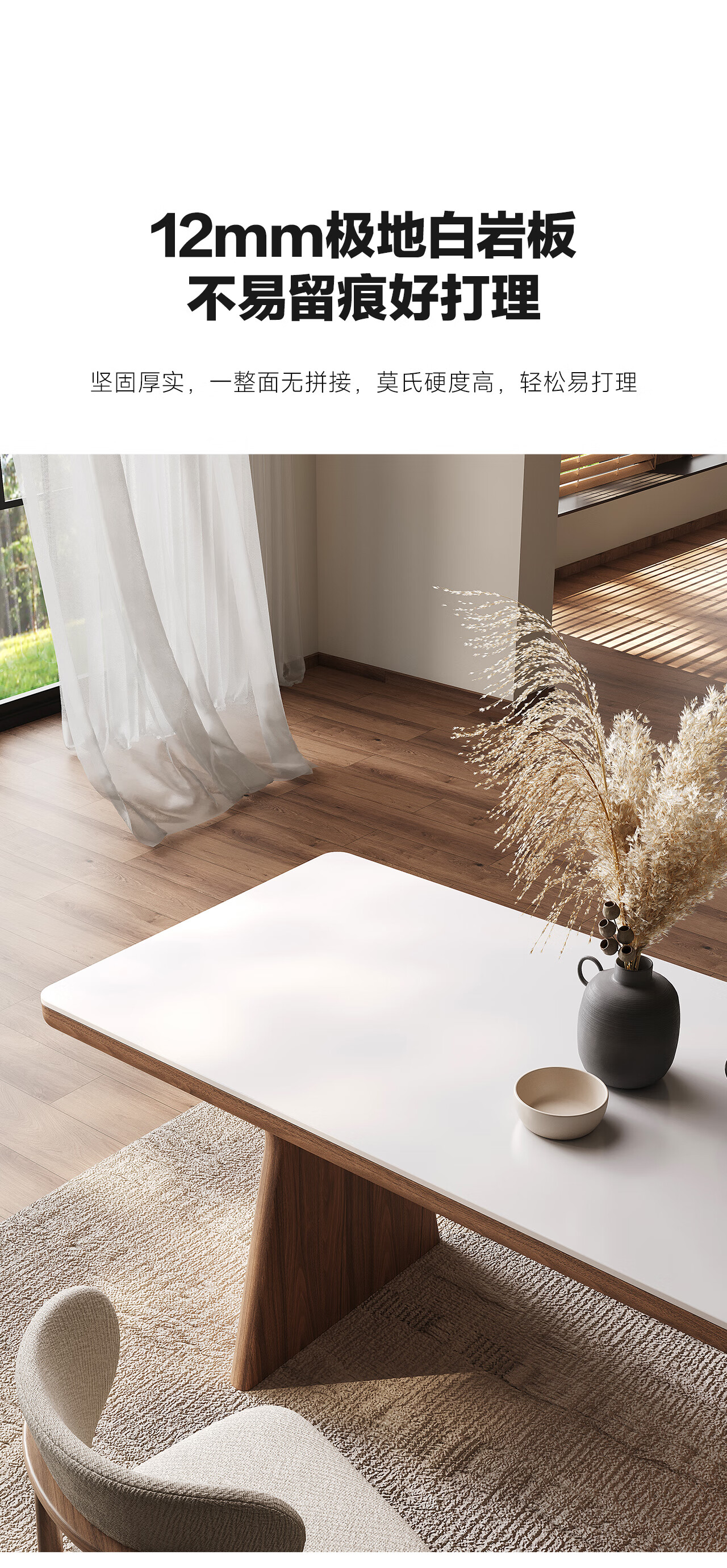 全慕(QUANMU)实木岩板餐桌椅组合现代简约中古风胡桃木色家用餐厅吃饭桌子歺桌 1.6米餐桌+6椅【简逸餐椅】