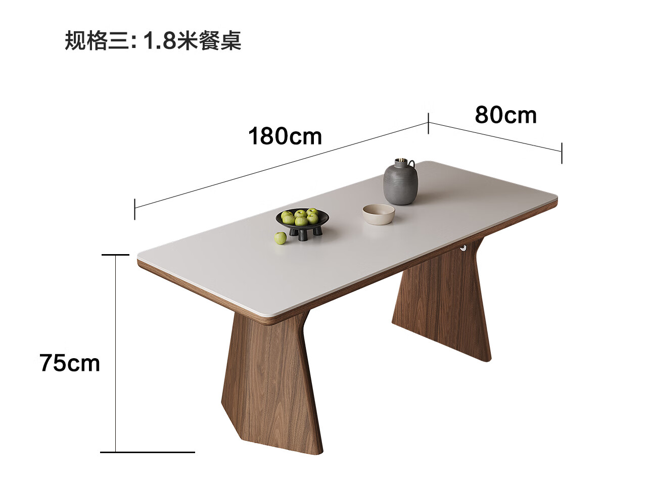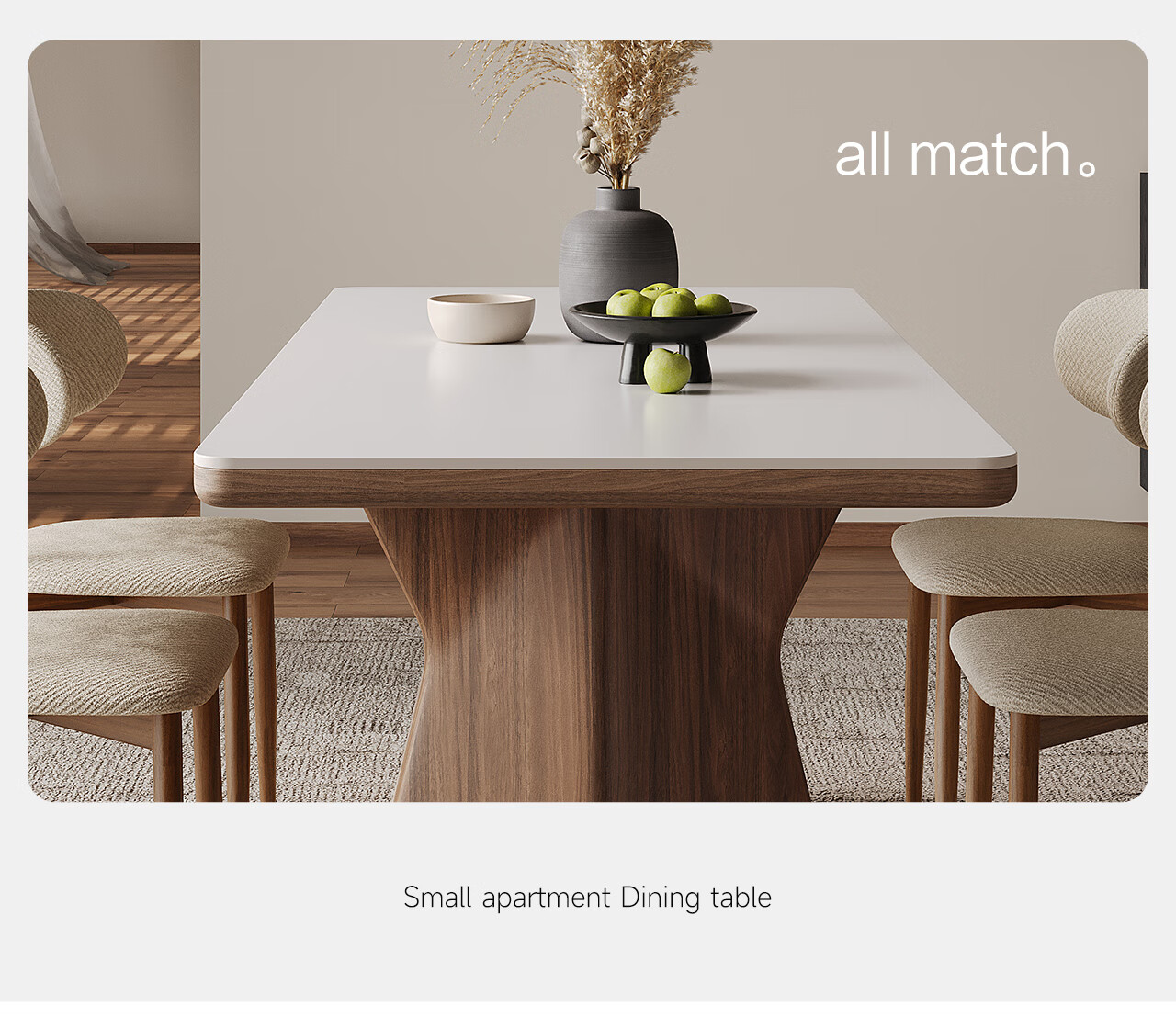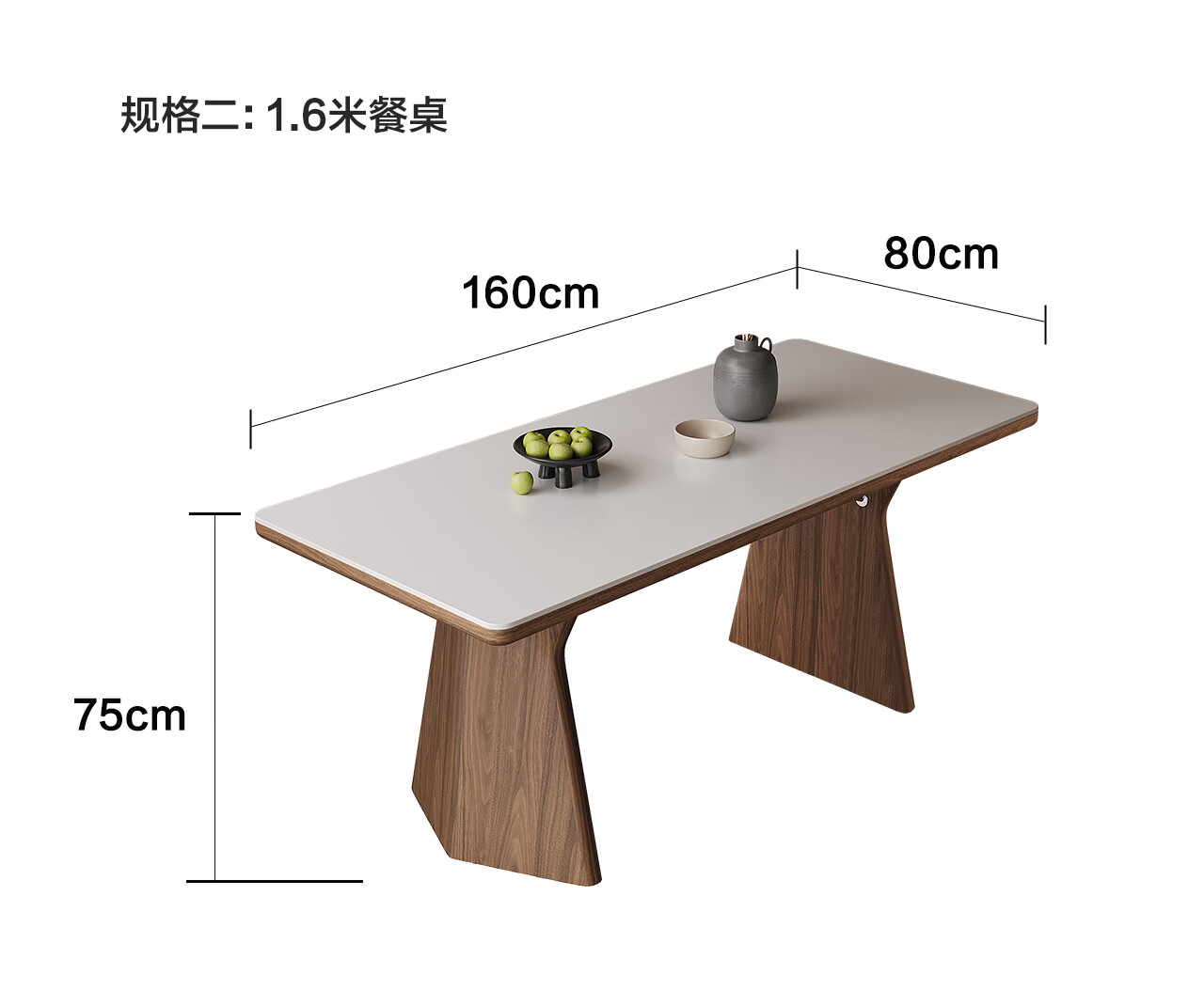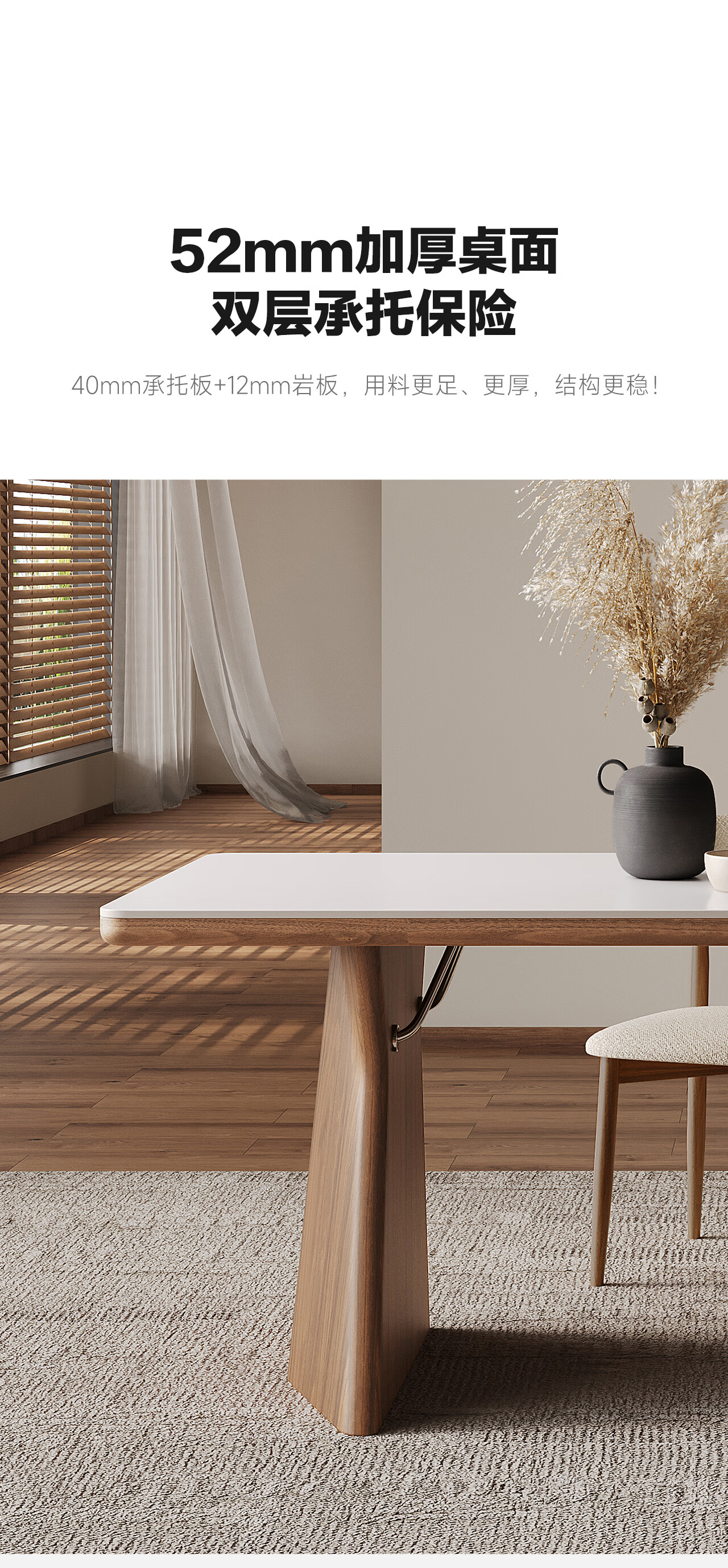 全慕(QUANMU)实木岩板餐桌椅组合现代简约中古风胡桃木色家用餐厅吃饭桌子歺桌 1.6米餐桌+6椅【简逸餐椅】
