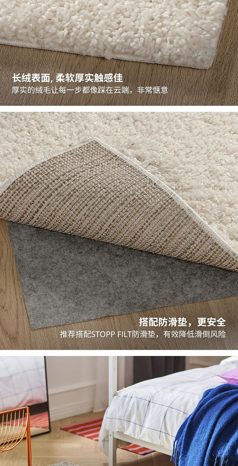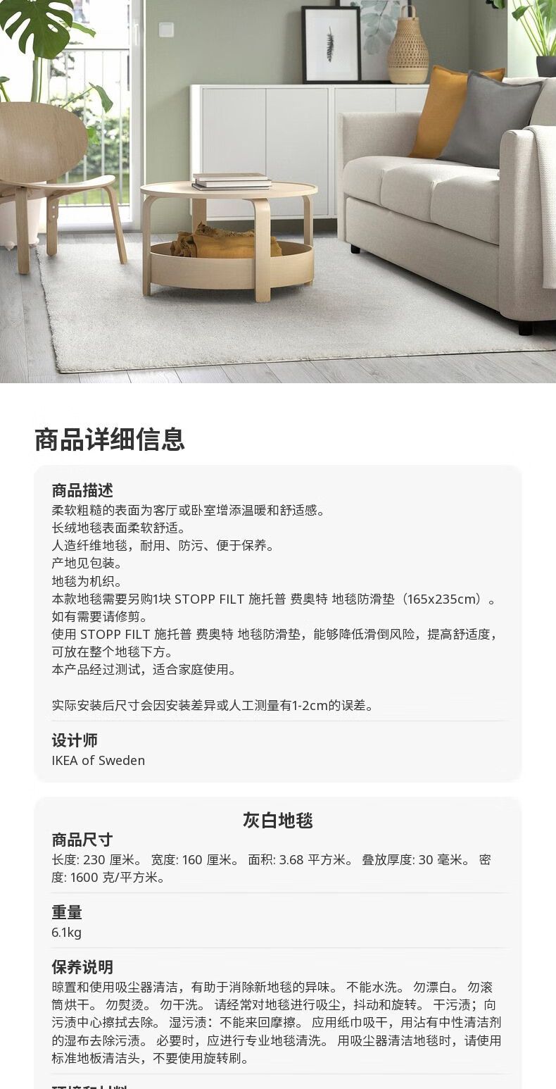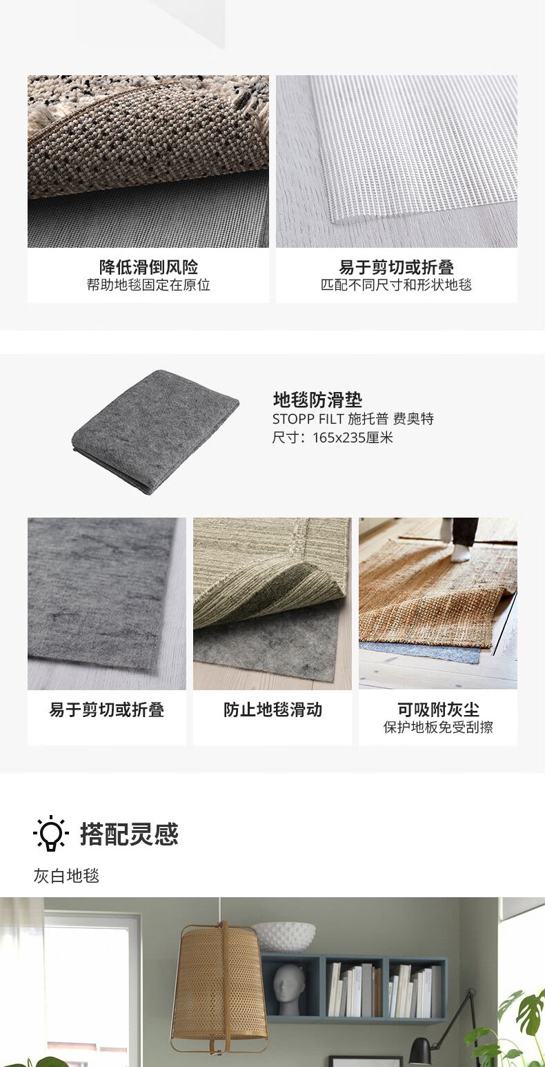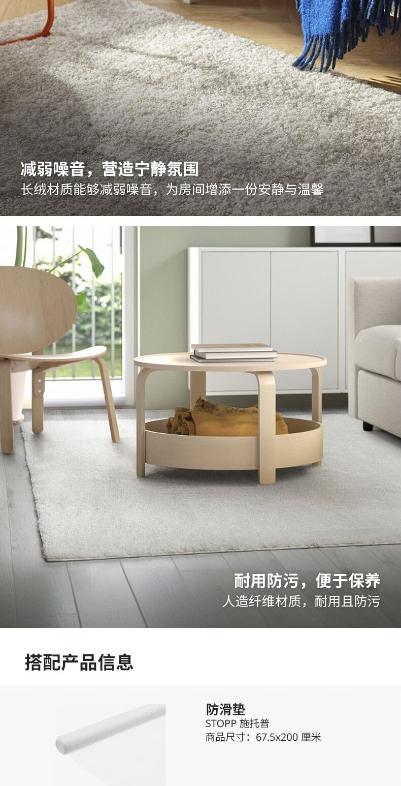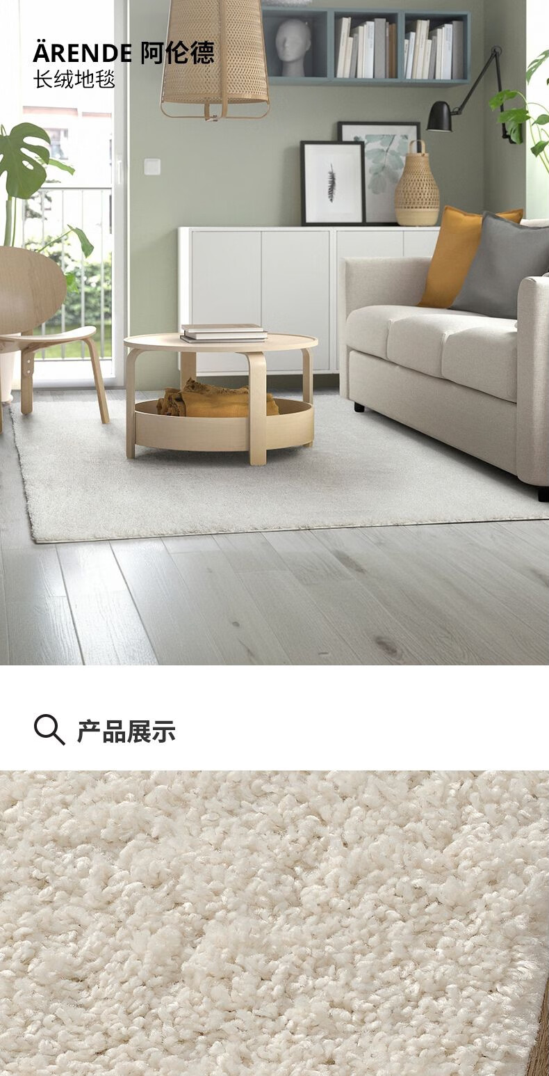 宜家(IKEA)【新品】ARENDE阿伦德长绒地毯沙发毯子可机洗防滑毯 【新品】灰白地毯+防滑垫165x235cm*1