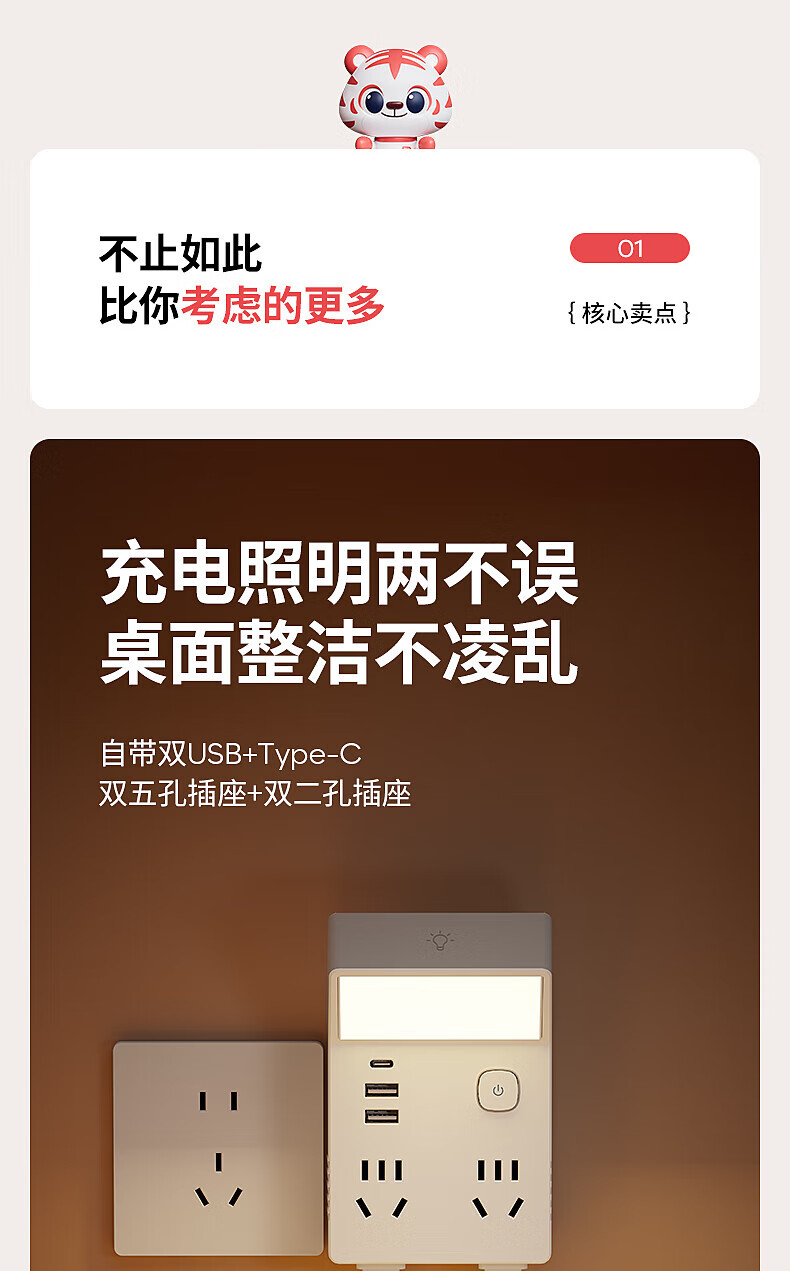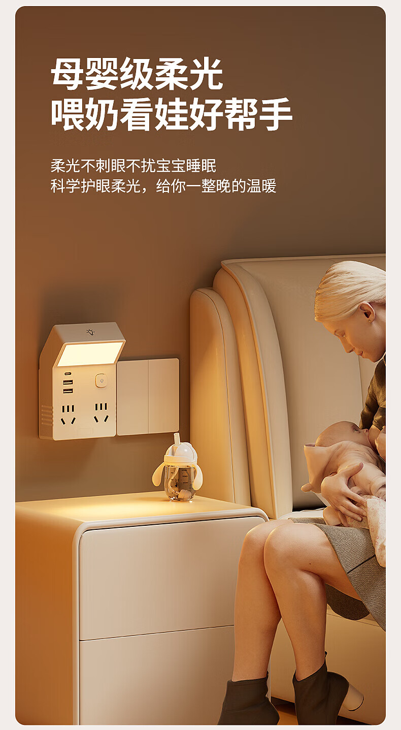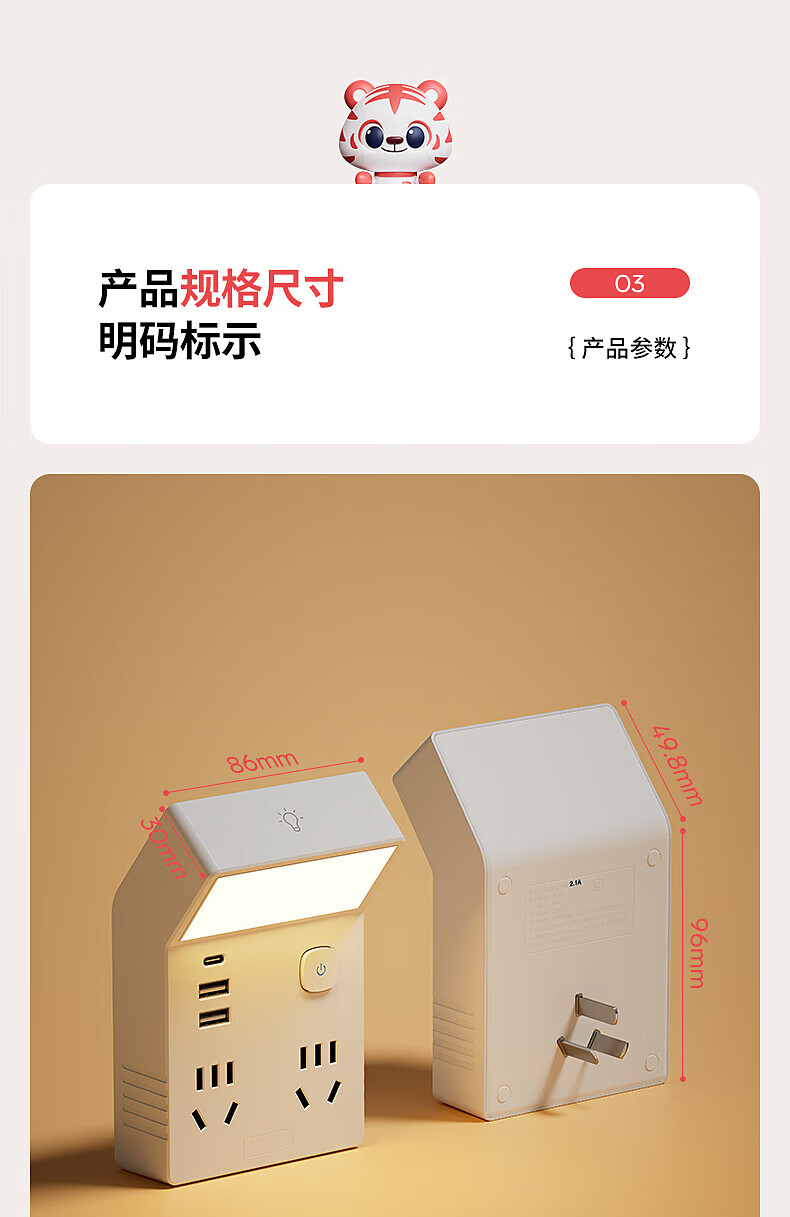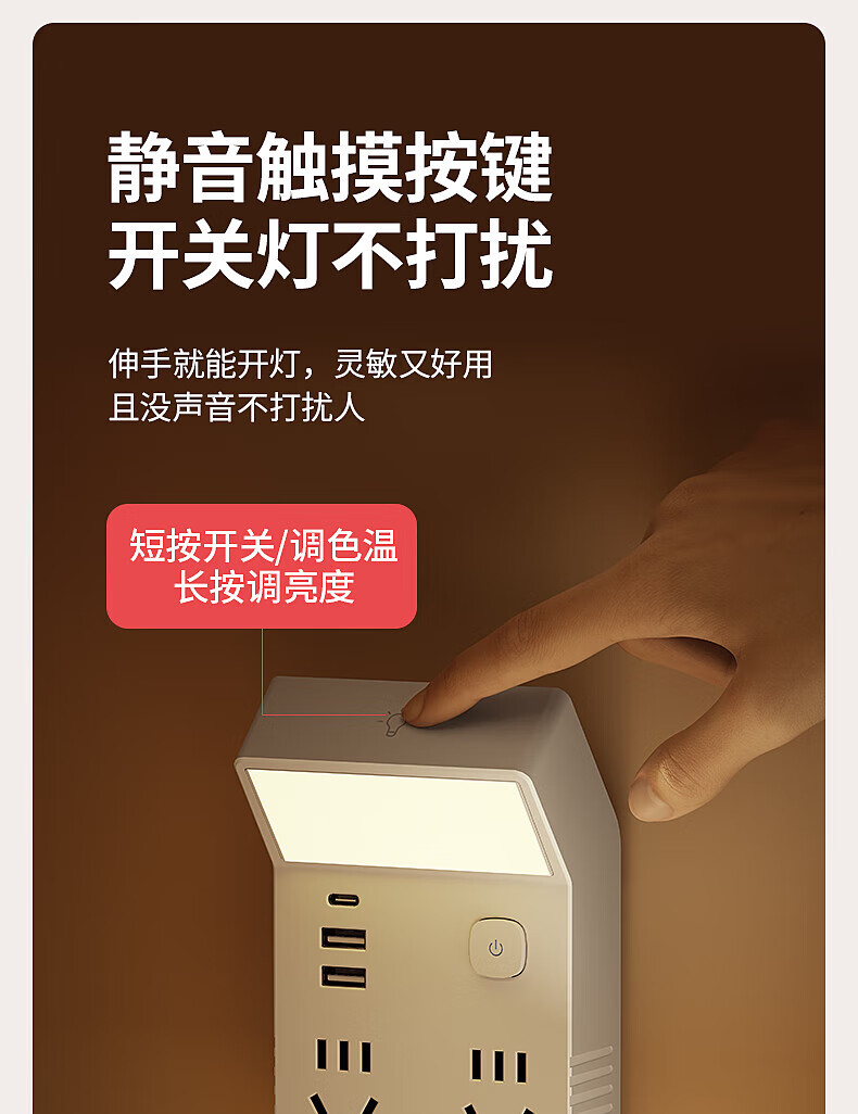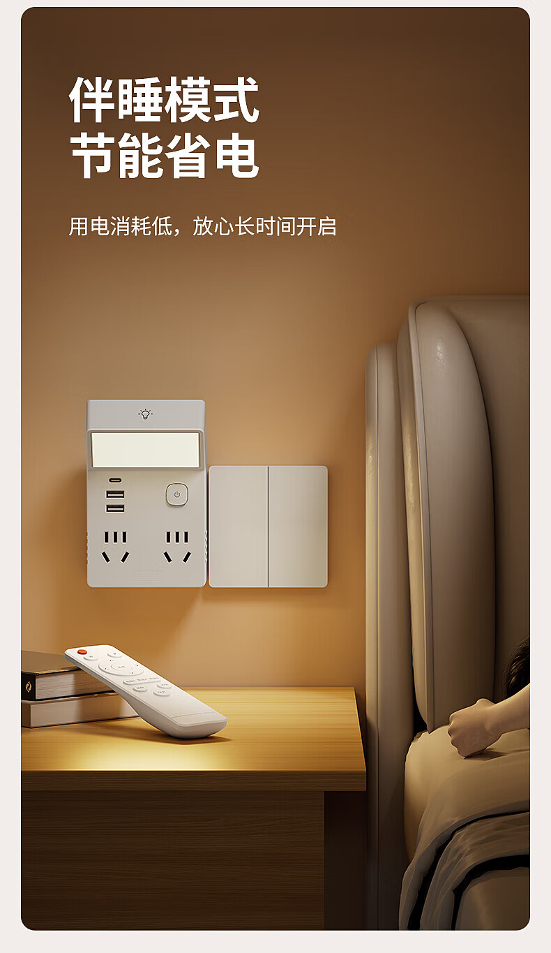 国际电工(FDD)直插式拓展插座一转四墙壁多功能无线转换插头床头86型扩展插座 黑色一转四带灯+USB/20W快充