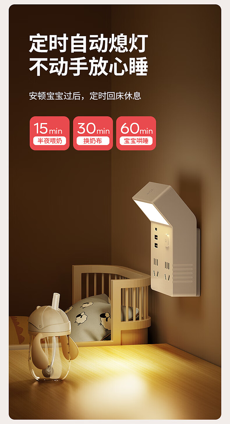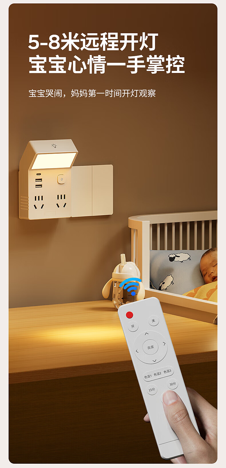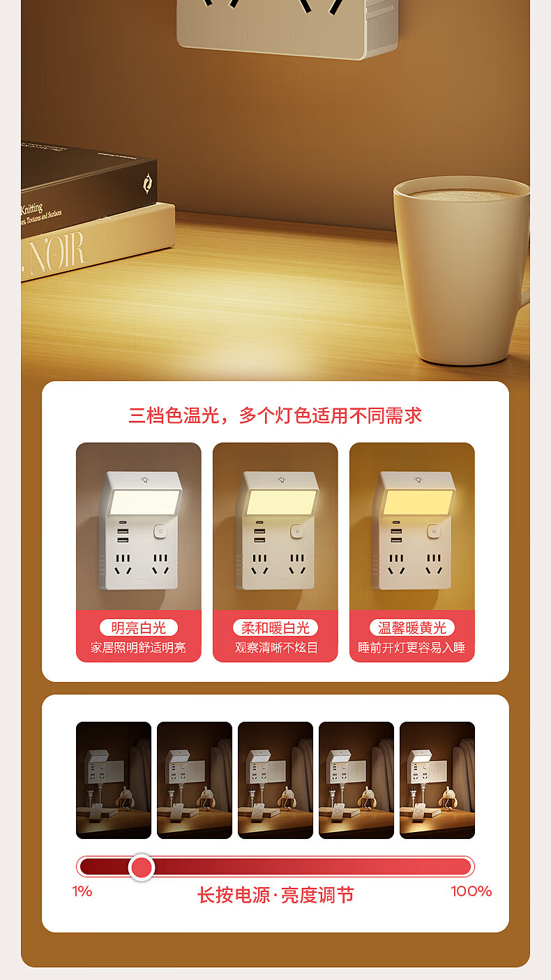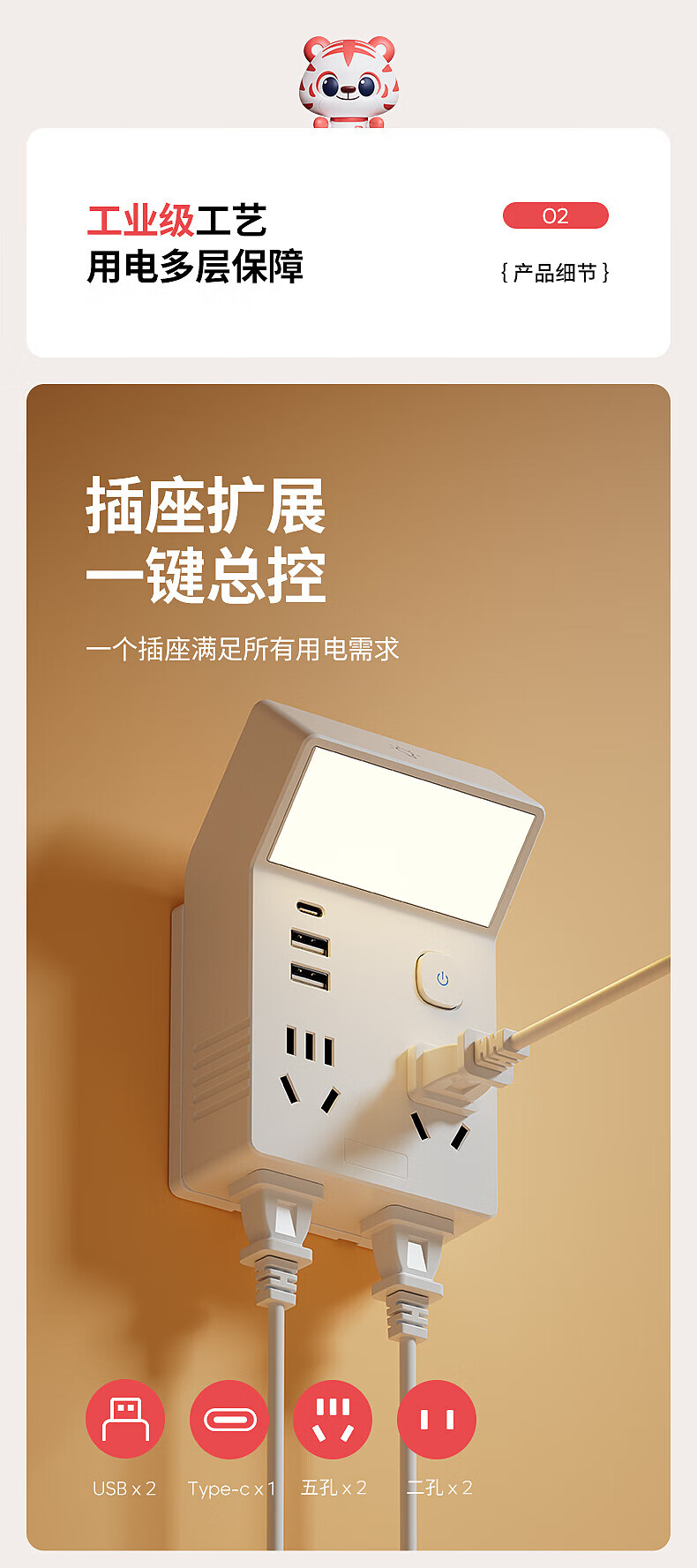 国际电工(FDD)直插式拓展插座一转四墙壁多功能无线转换插头床头86型扩展插座 黑色一转四带灯+USB/20W快充
