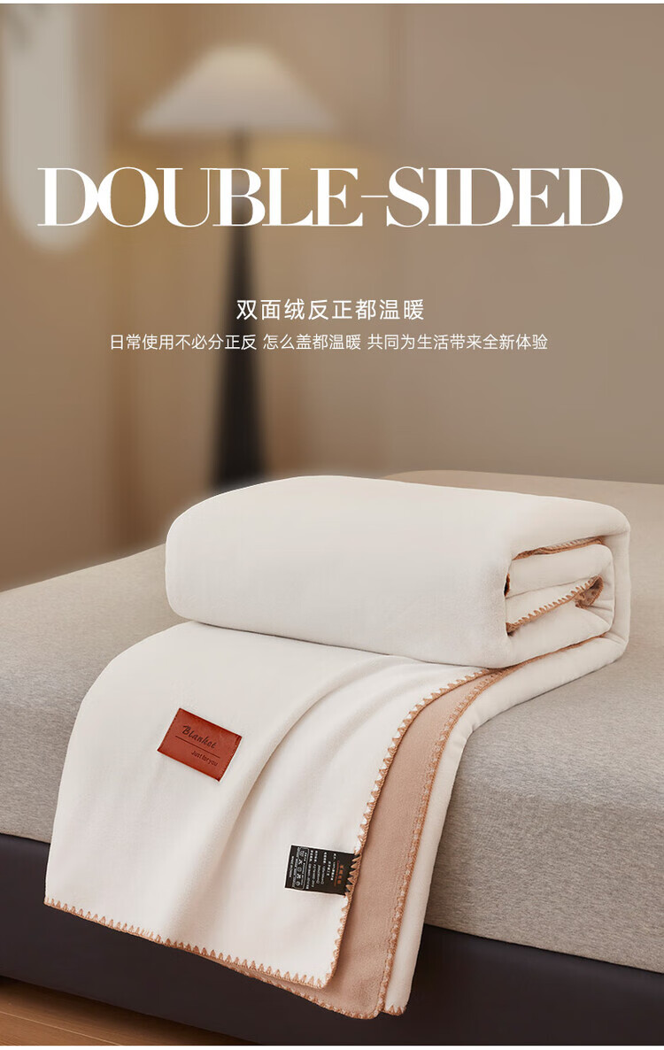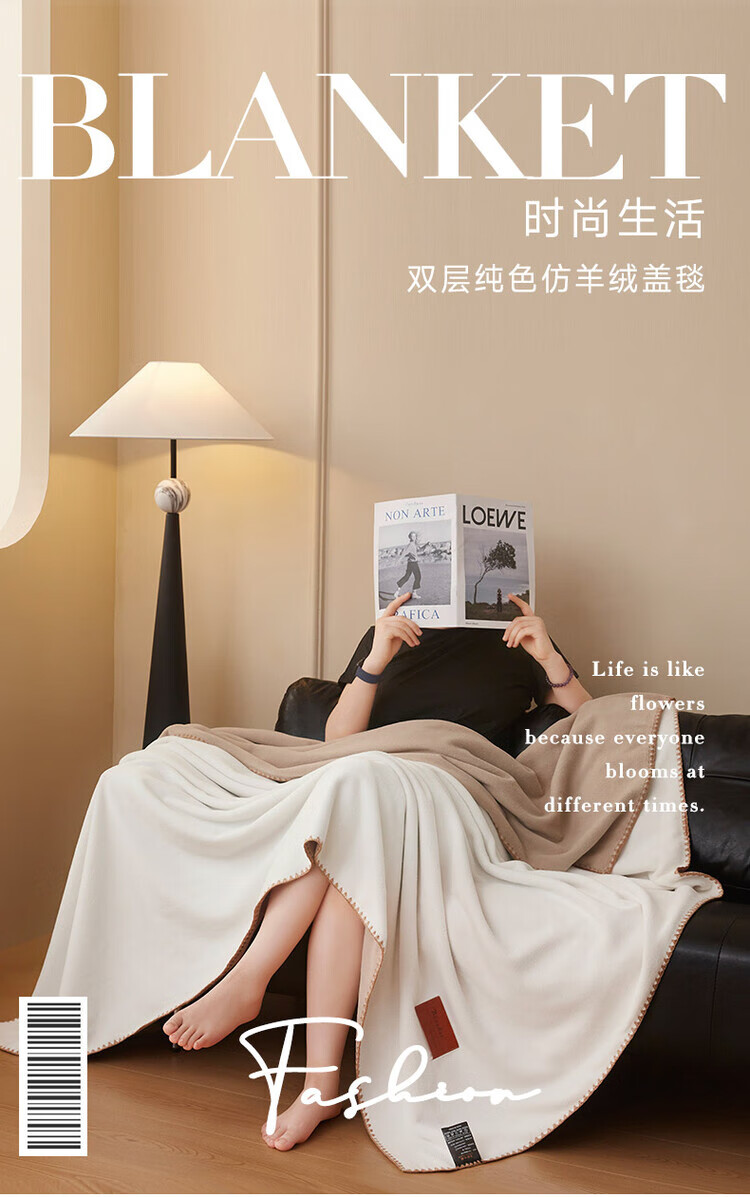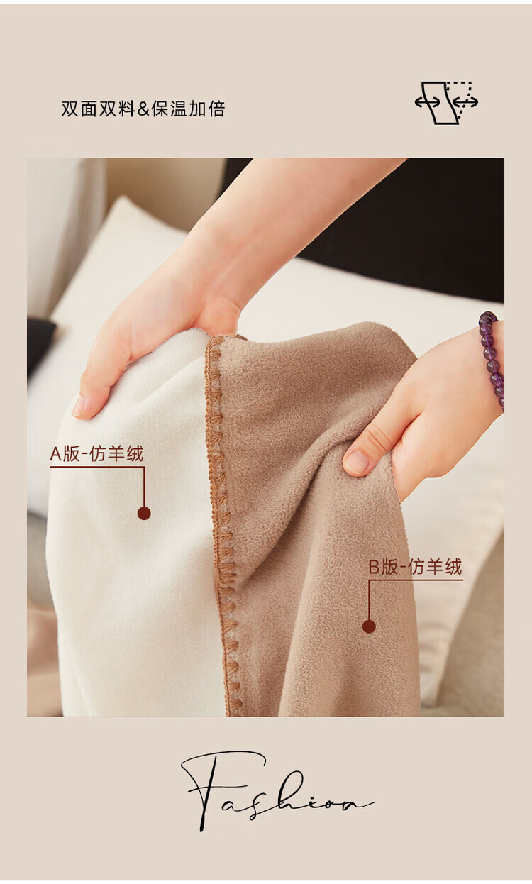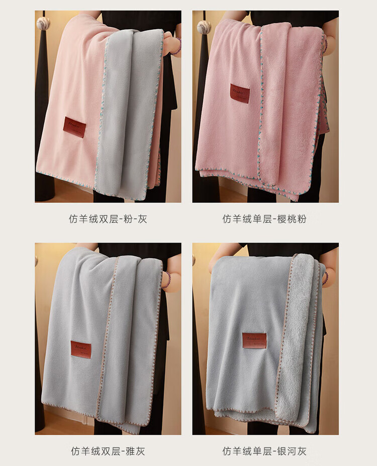 户璃德国毛毯冬季羊驼绒纯色牛奶绒办公室午休小毯子秋季披肩毯沙发毯 仿羊绒双层-粉-灰【升级加绒加厚 四季多功能毯】 100cm*150cm 单人毯-