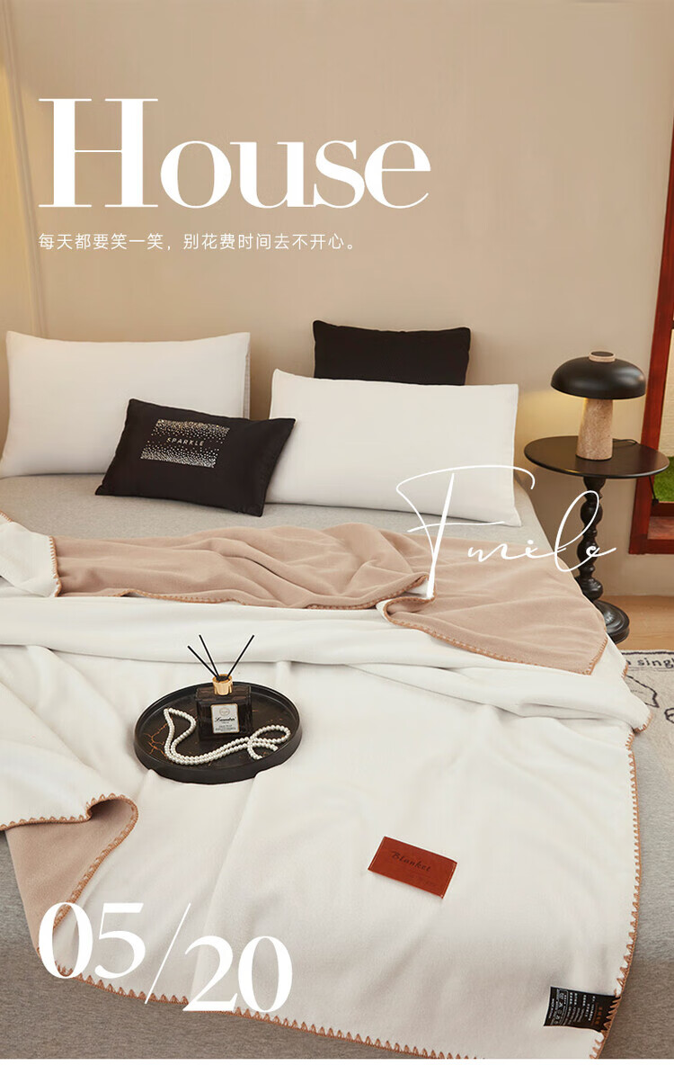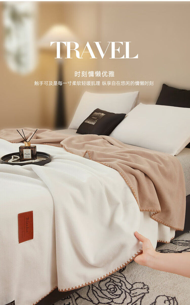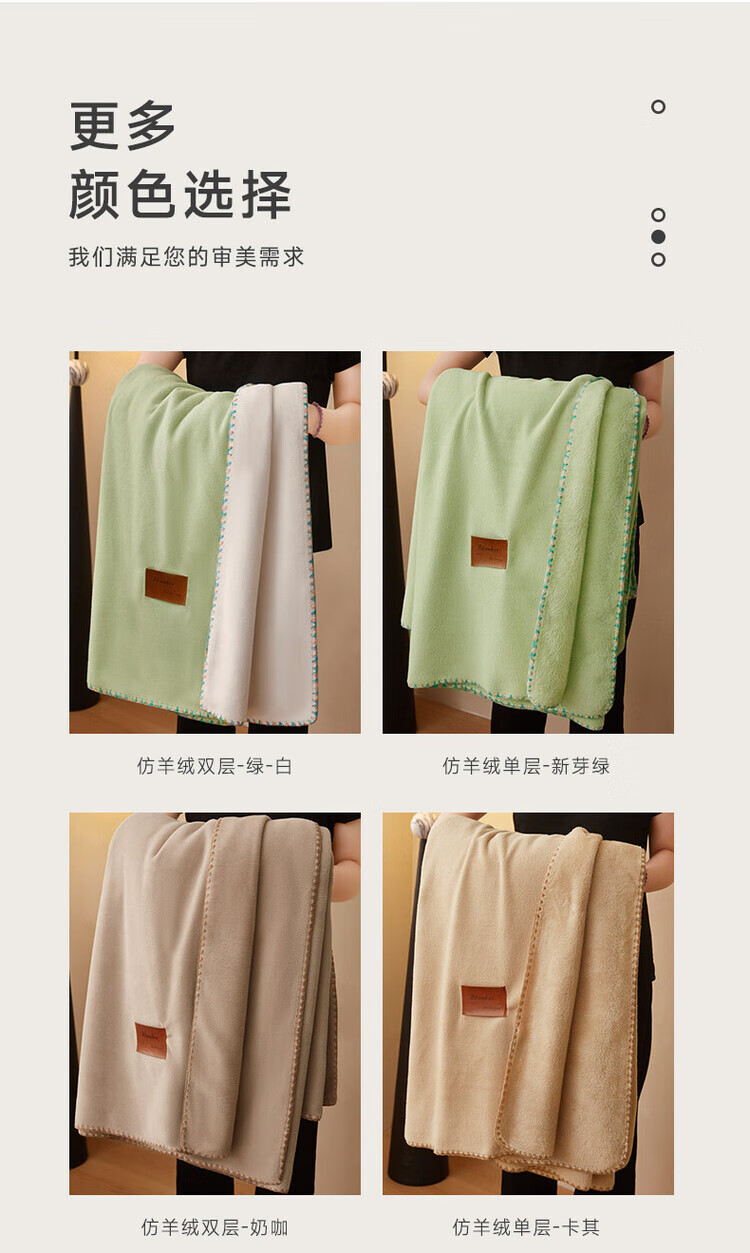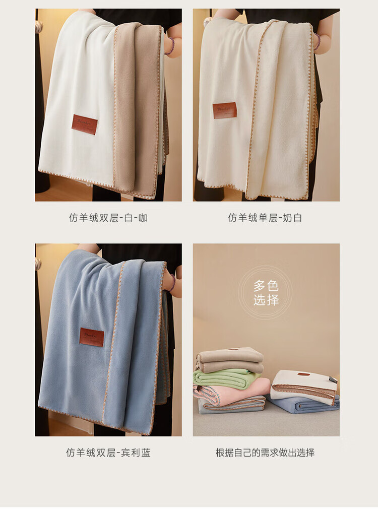 户璃德国毛毯冬季羊驼绒纯色牛奶绒办公室午休小毯子秋季披肩毯沙发毯 仿羊绒双层-粉-灰【升级加绒加厚 四季多功能毯】 100cm*150cm 单人毯-