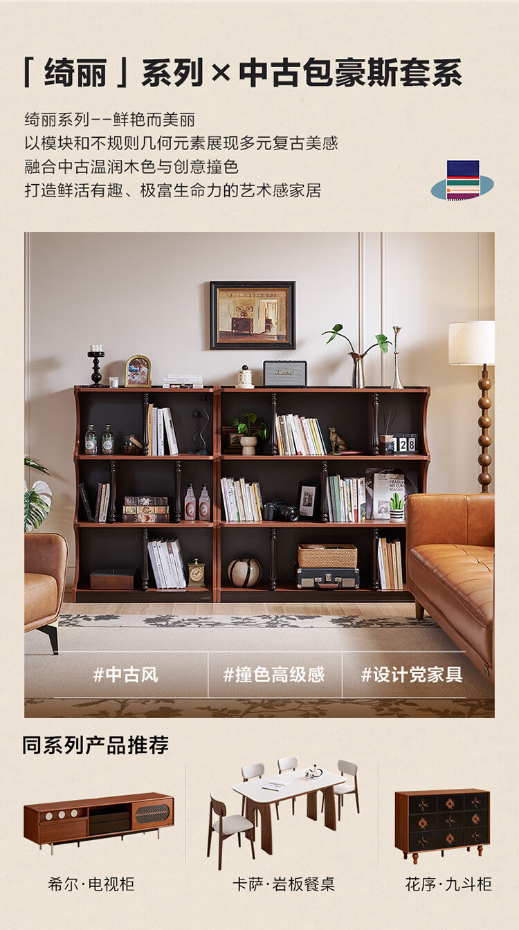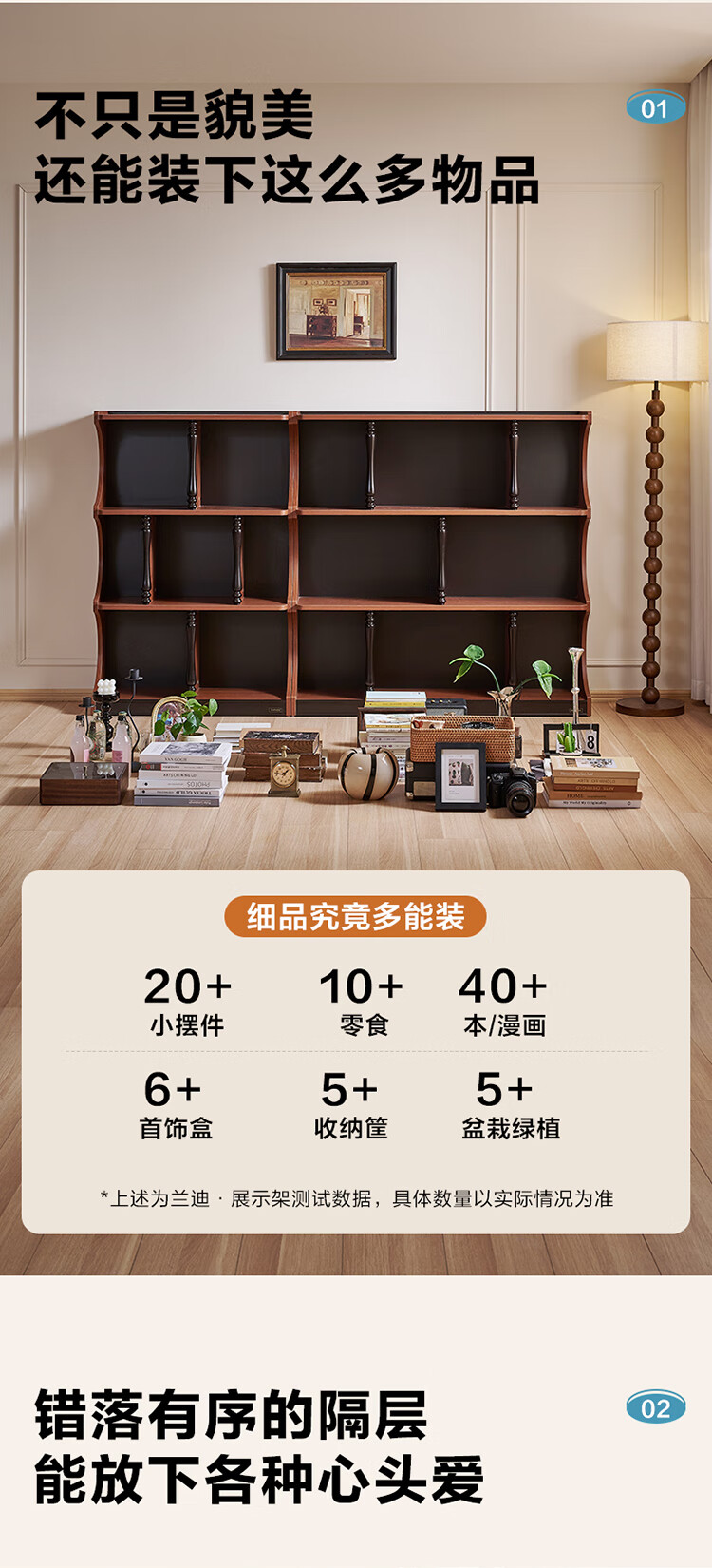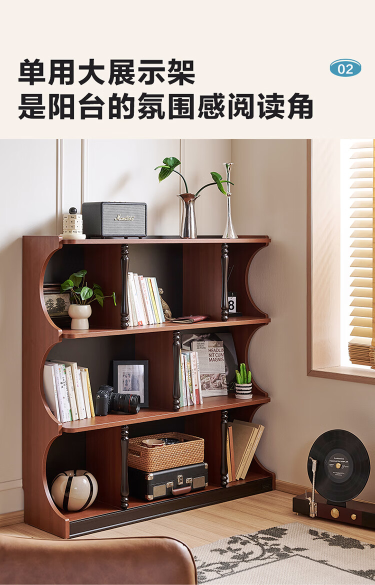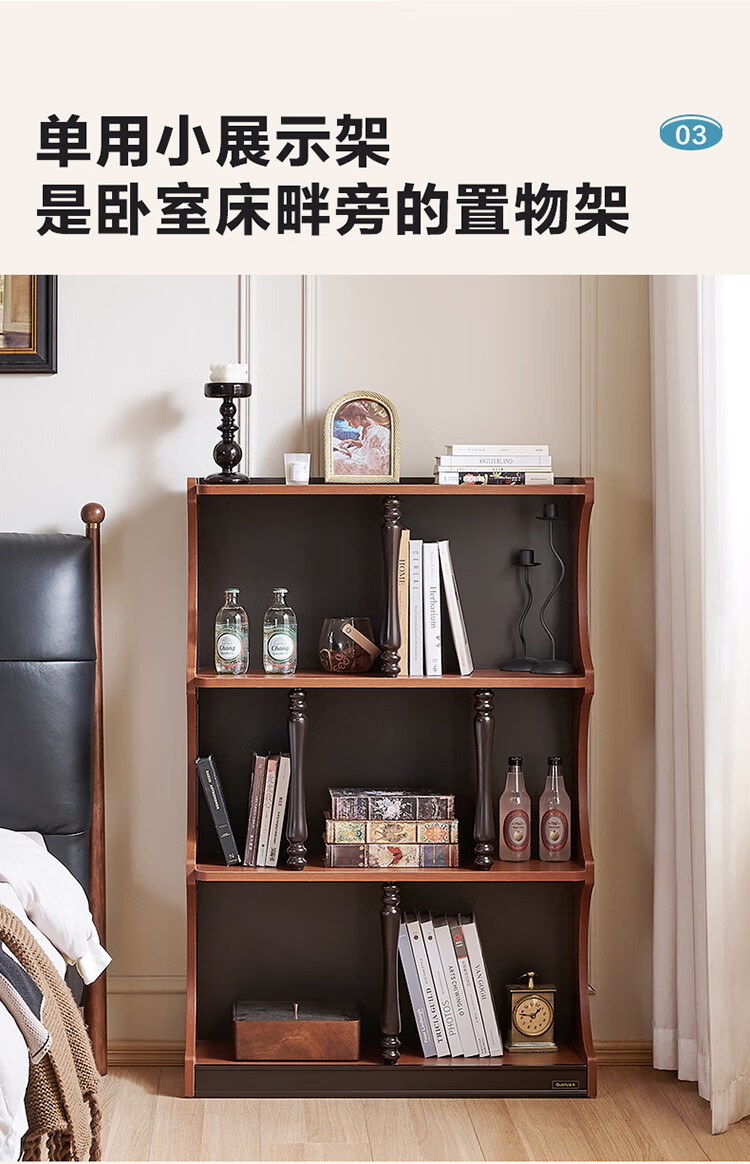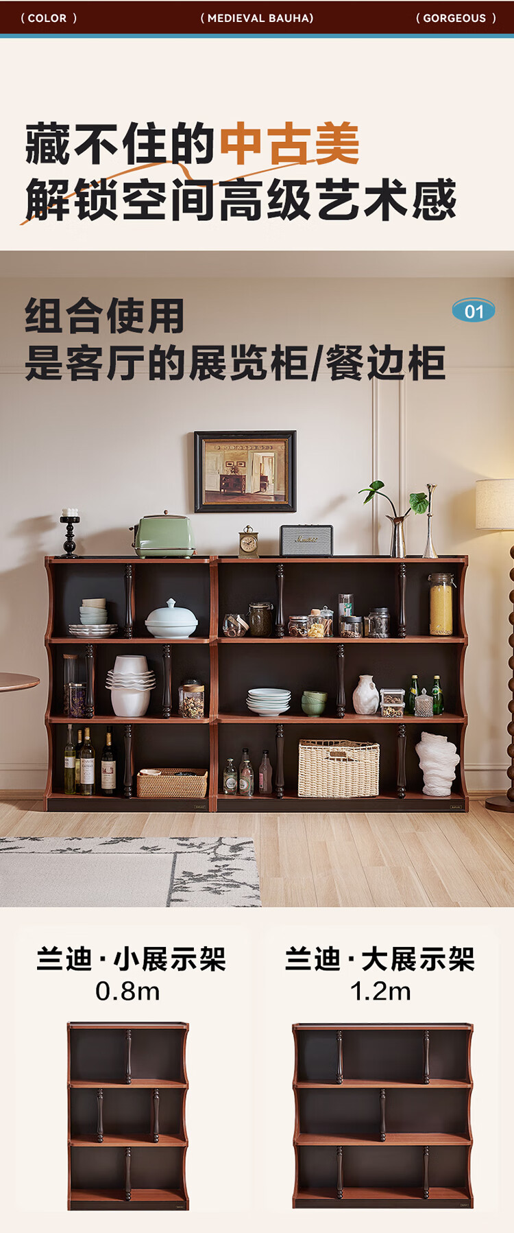 全友家居中古风书柜开放式书架家用客厅橱柜置物架展示柜收纳储物柜 【黑茶色+木色】0.8m小展示架