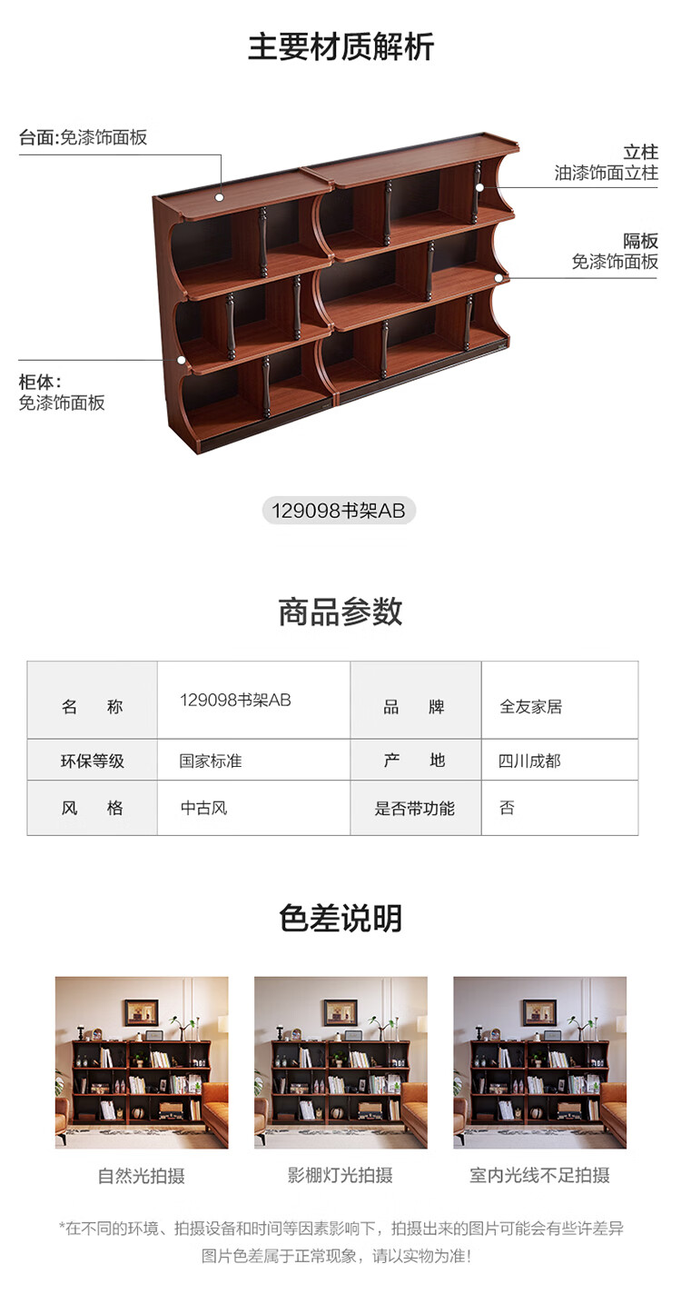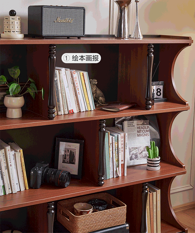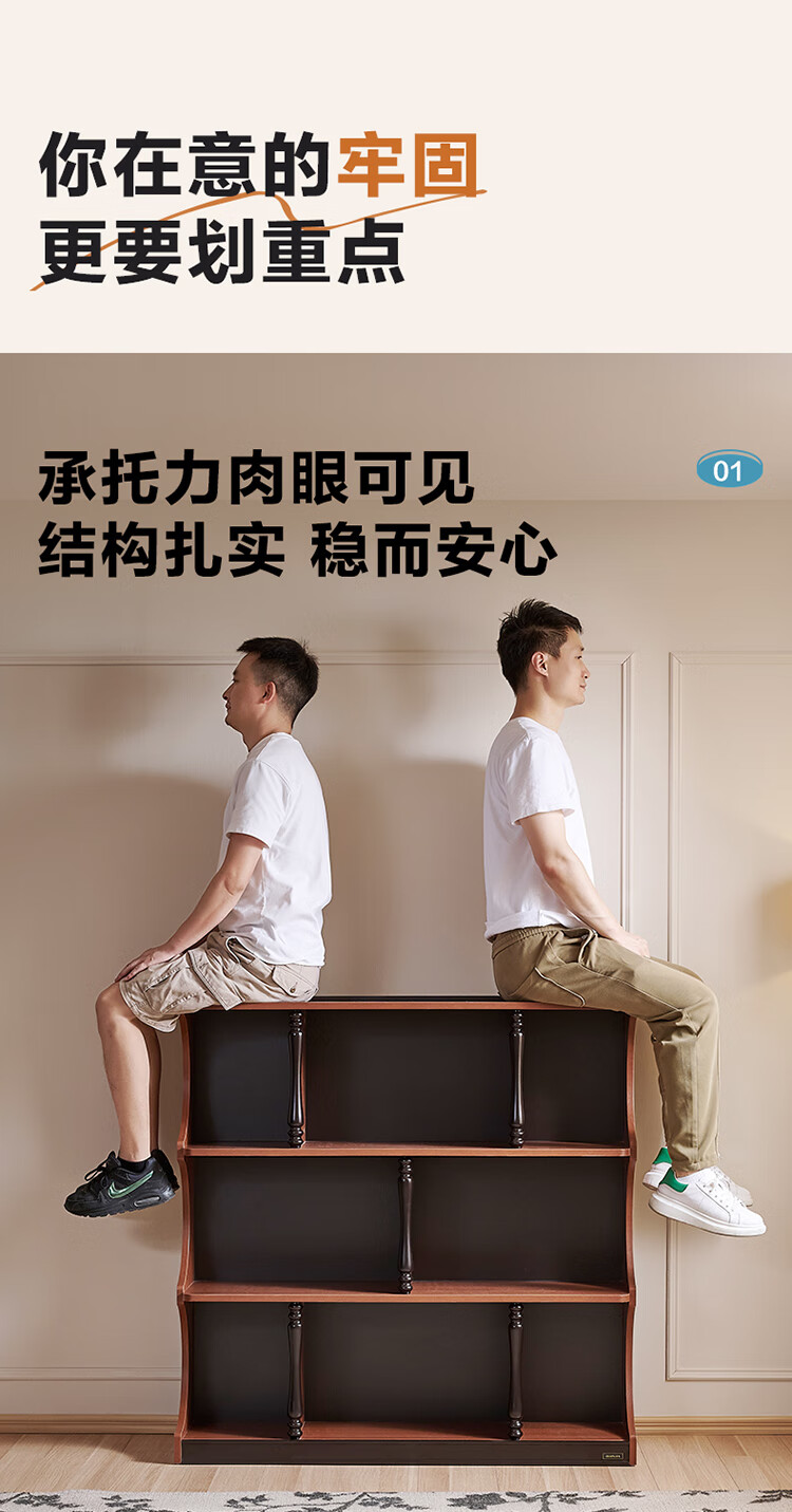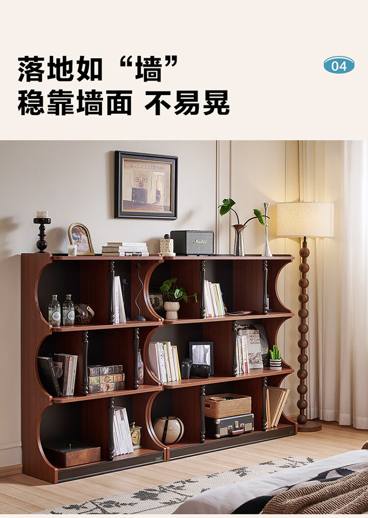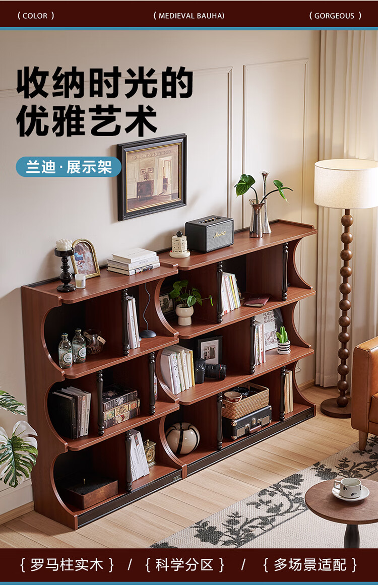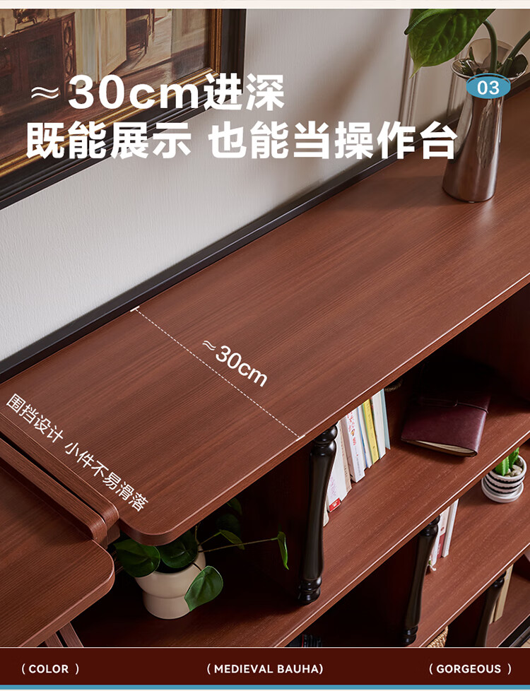全友家居中古风书柜开放式书架家用客厅橱柜置物架展示柜收纳储物柜 【黑茶色+木色】0.8m小展示架