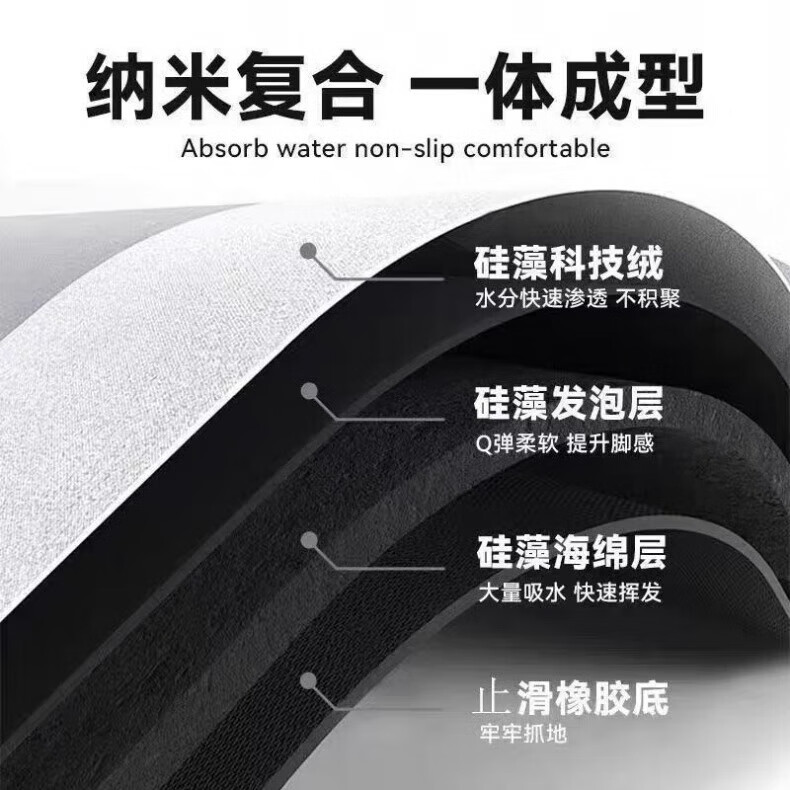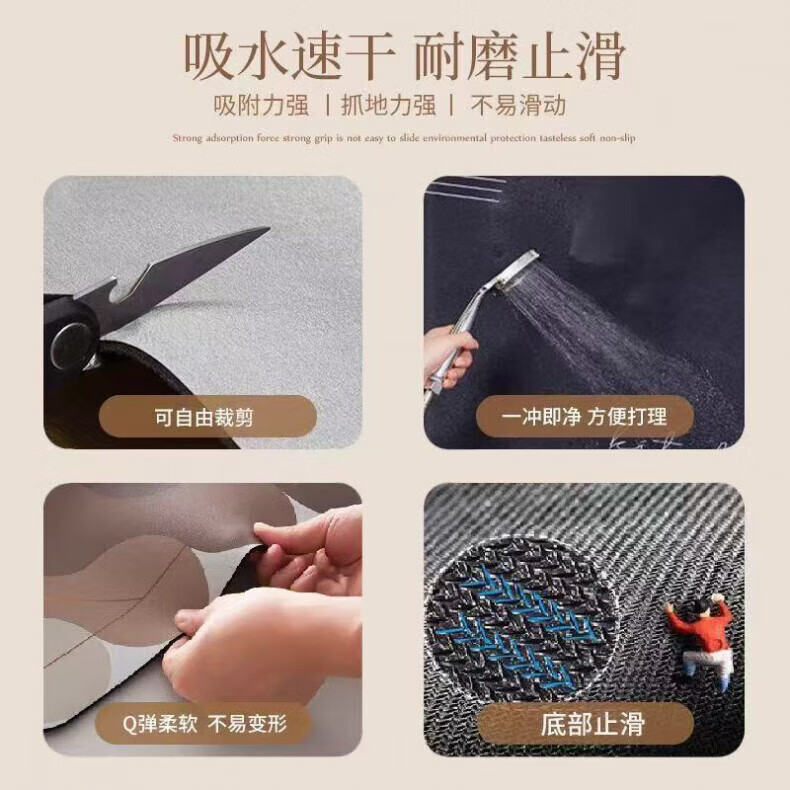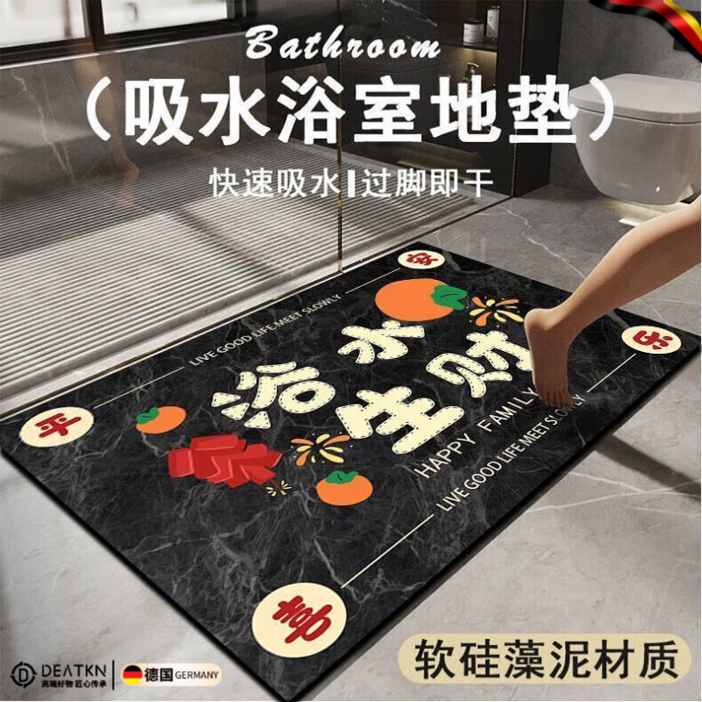 DEATKN德国浴室地垫硅藻吸水速干卫生间厕所耐脏防滑门口洗手间地毯脚垫 顺风顺水【吸水止滑硅藻泥】 45cm*70cm 踩屎感:厘米【升级加厚款】