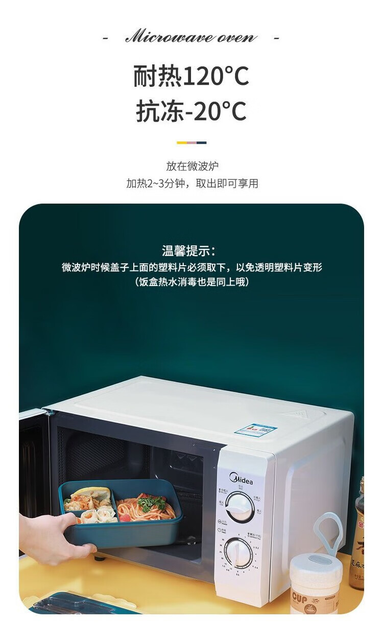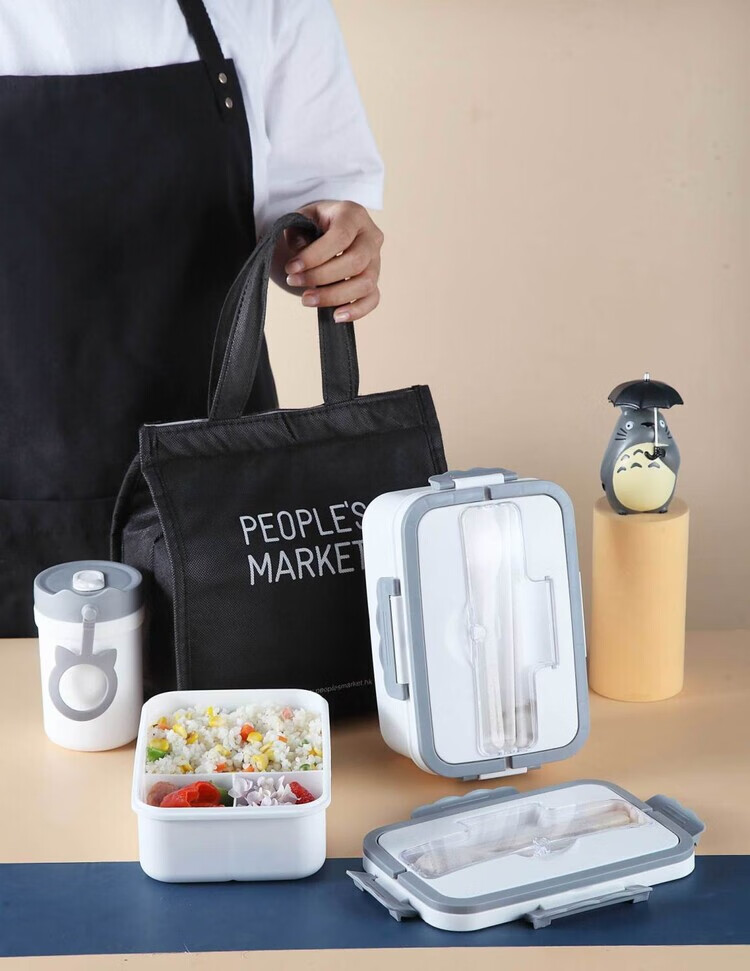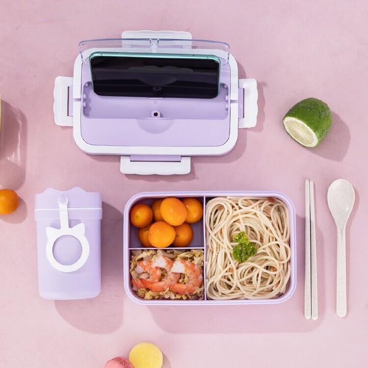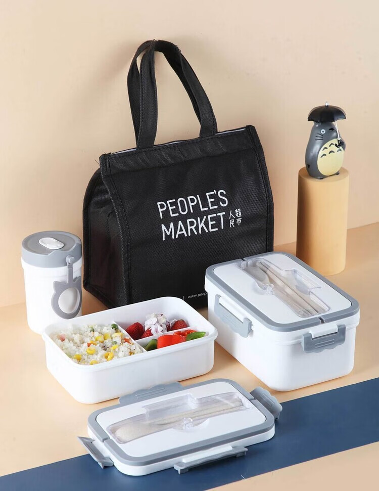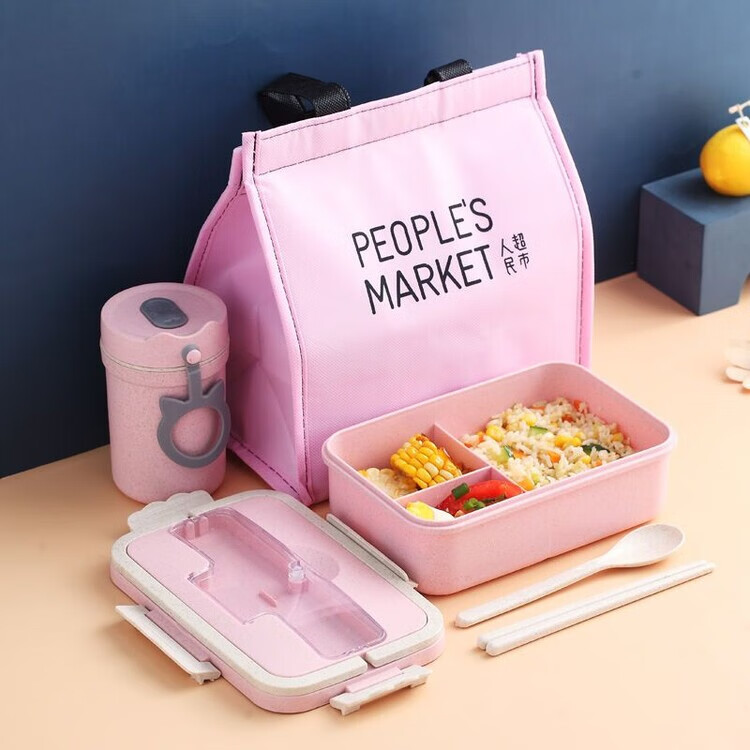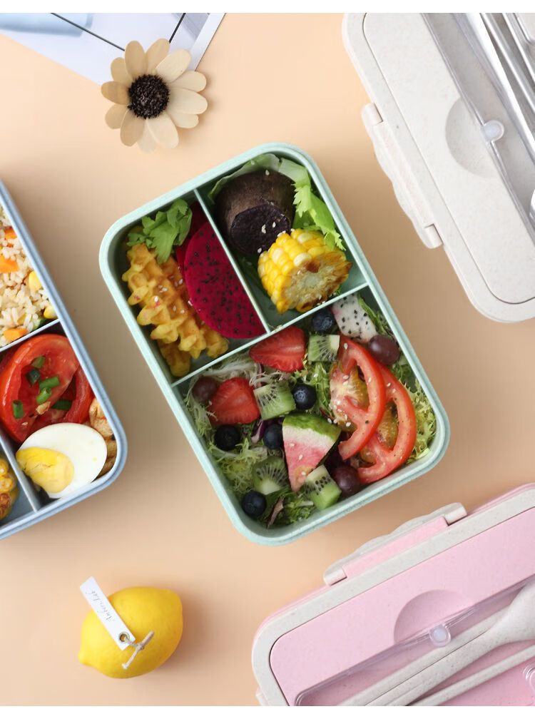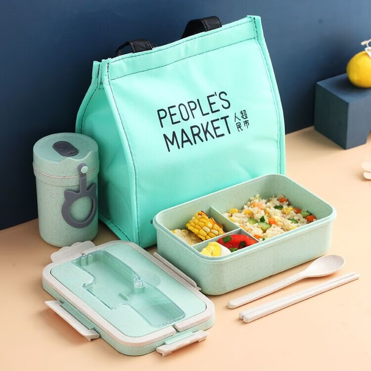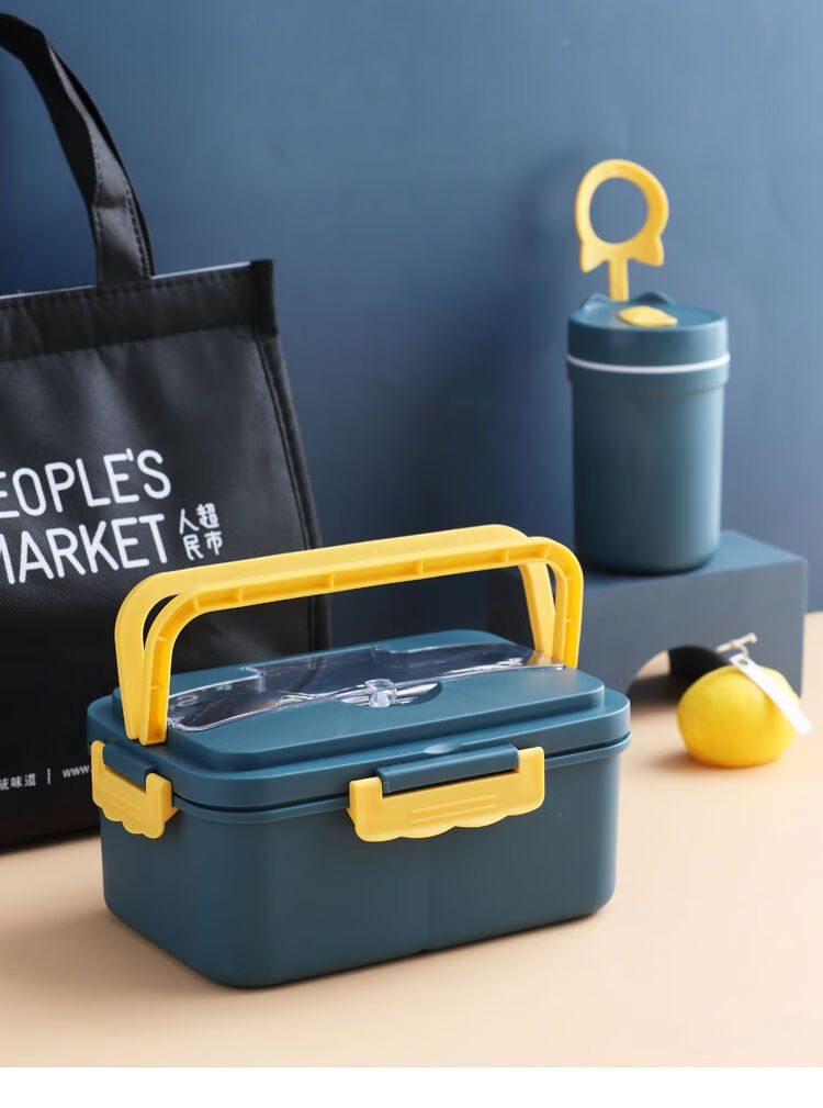 DEATKN德国小麦便携保温饭盒学生三格便当盒女手提大容量加热密封上班族 藏青蓝(三格1000ml) 贈(小麦)筷勺