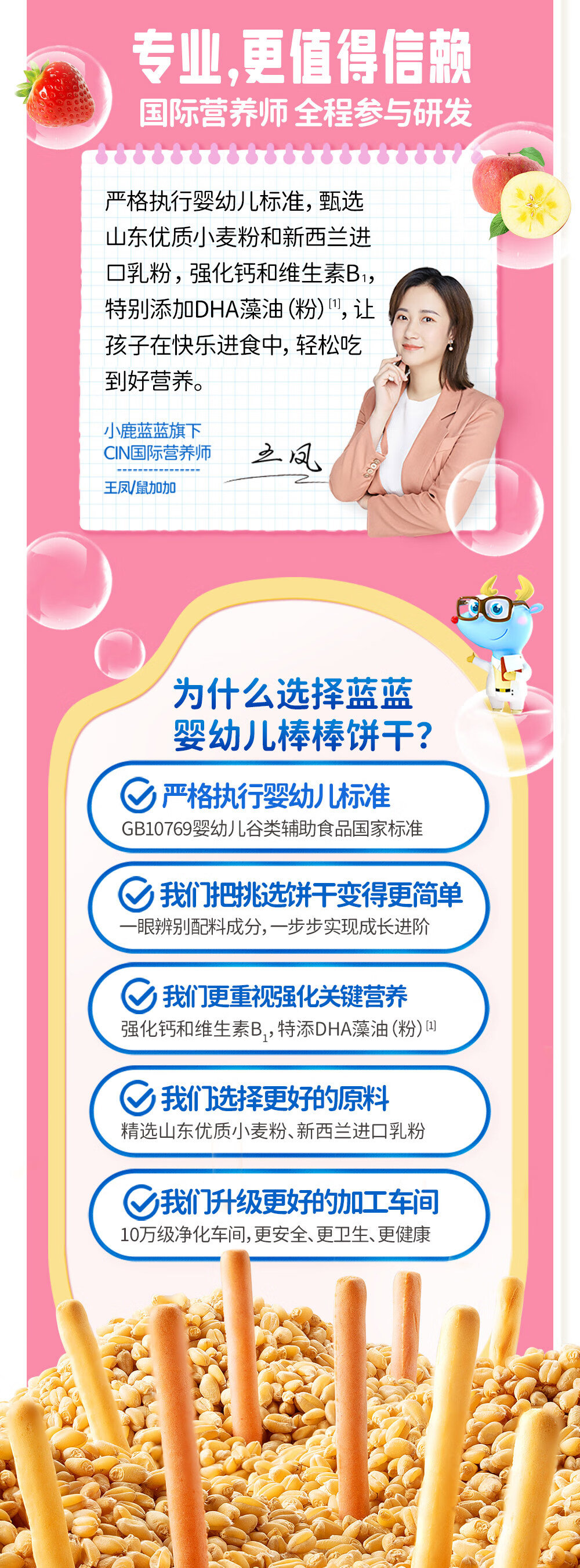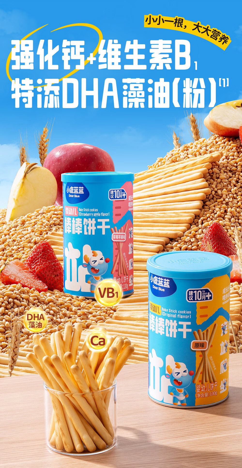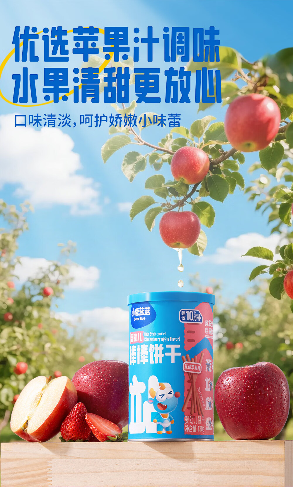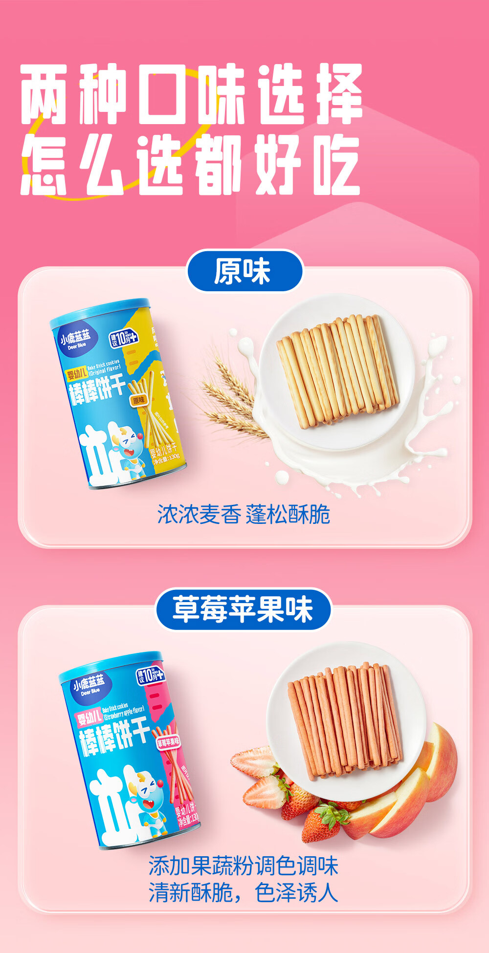小鹿蓝蓝婴幼儿棒棒饼干炭烧棒婴儿磨牙饼干130g儿童宝宝零食草莓苹果味