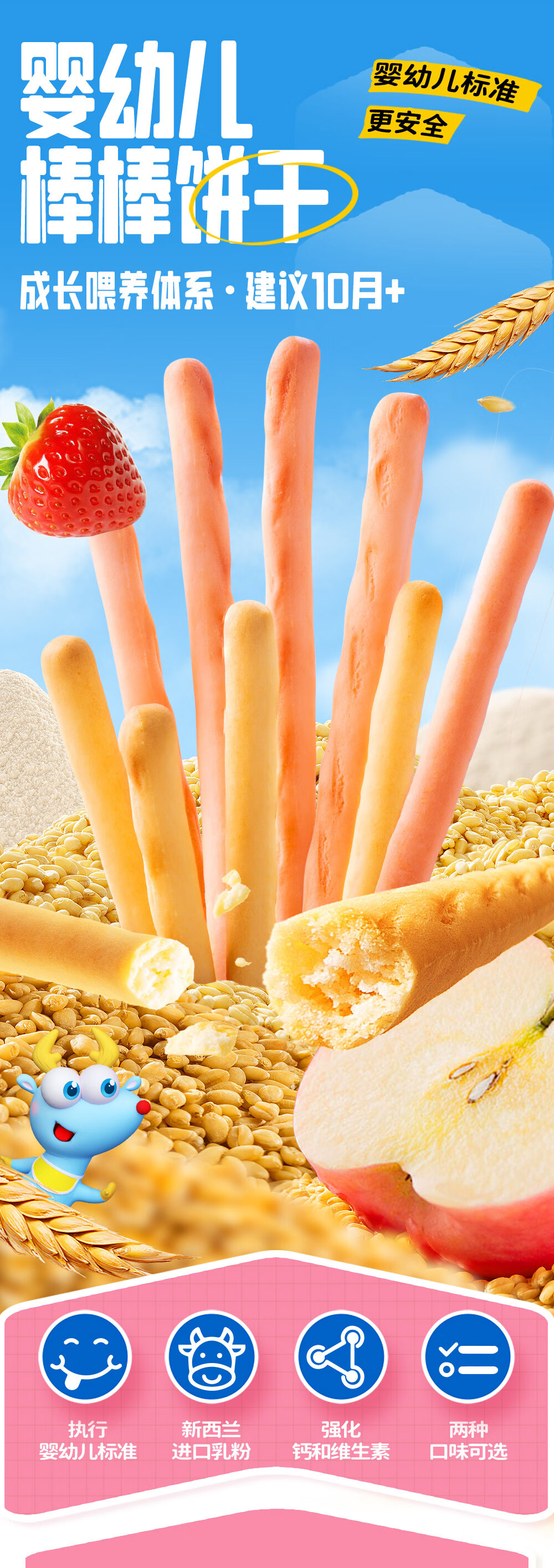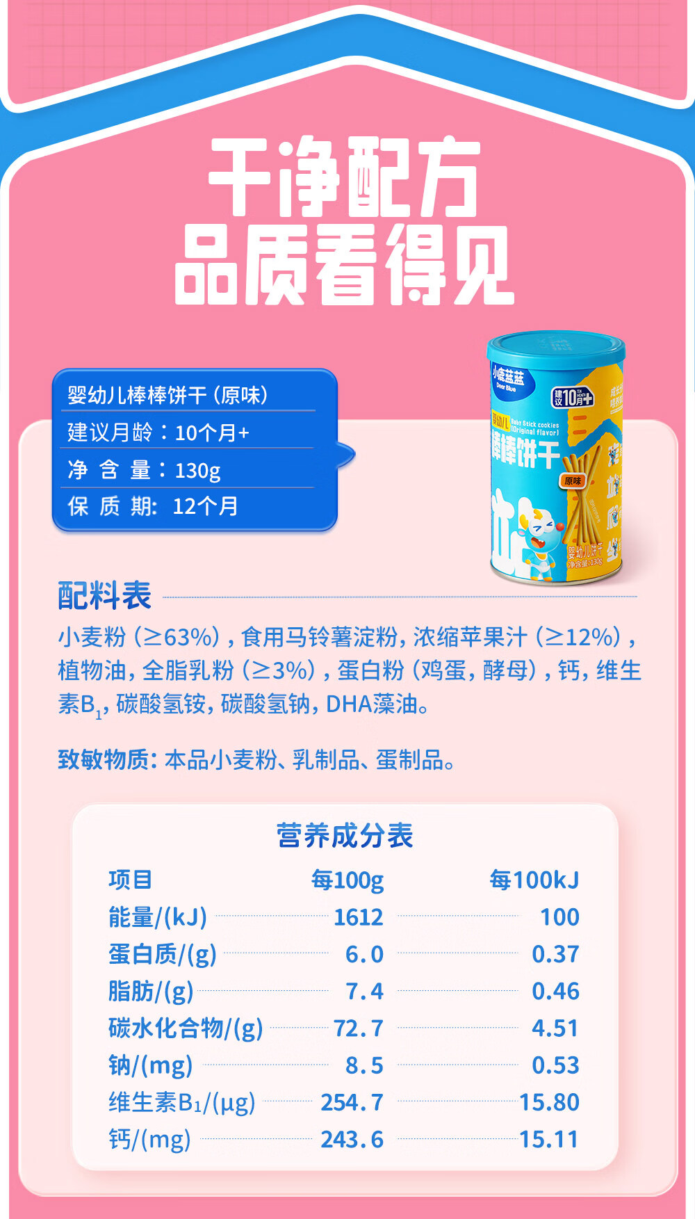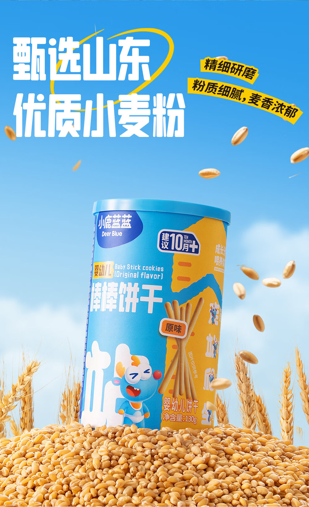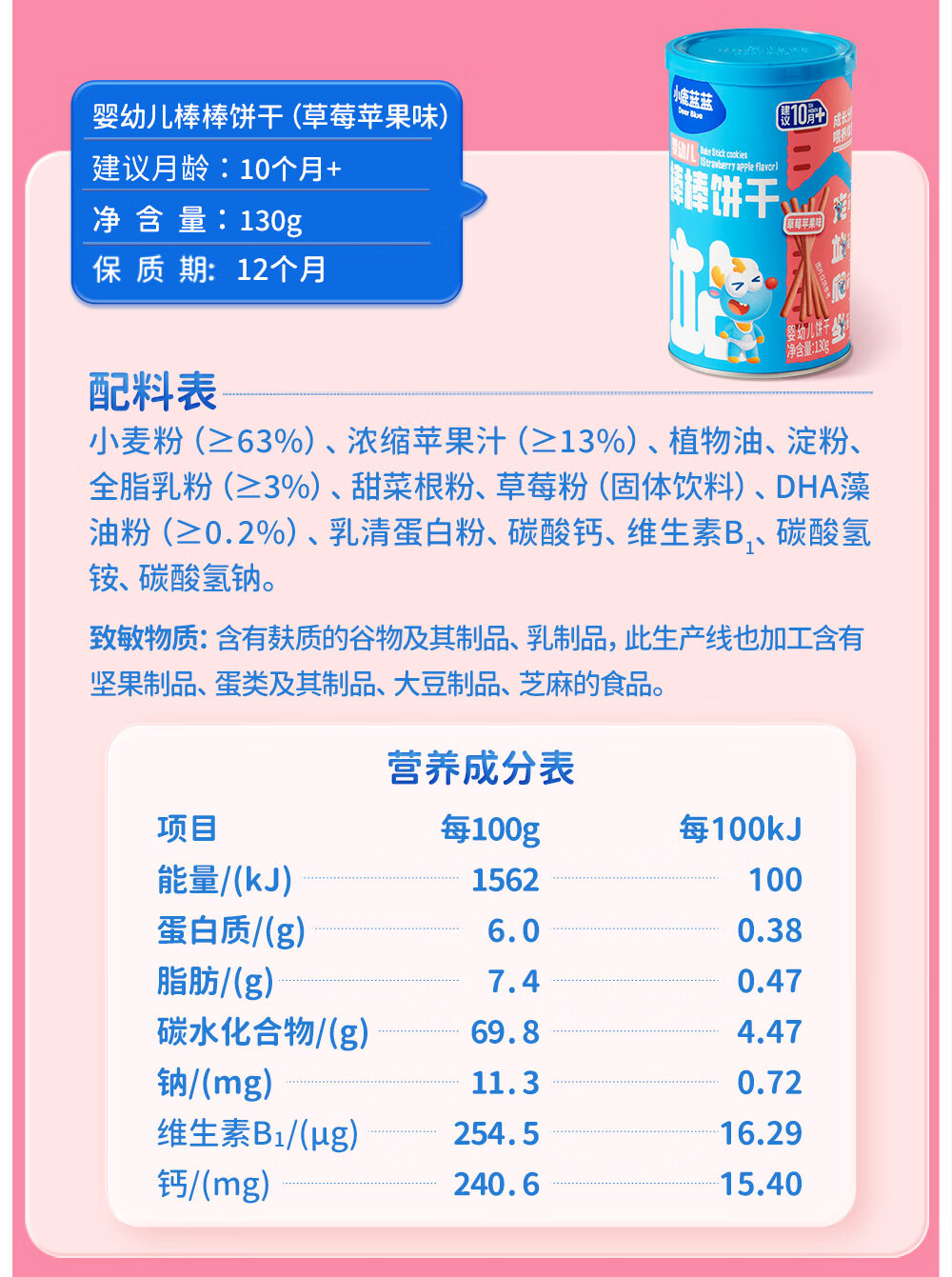 小鹿蓝蓝婴幼儿棒棒饼干炭烧棒婴儿磨牙饼干130g儿童宝宝零食草莓苹果味