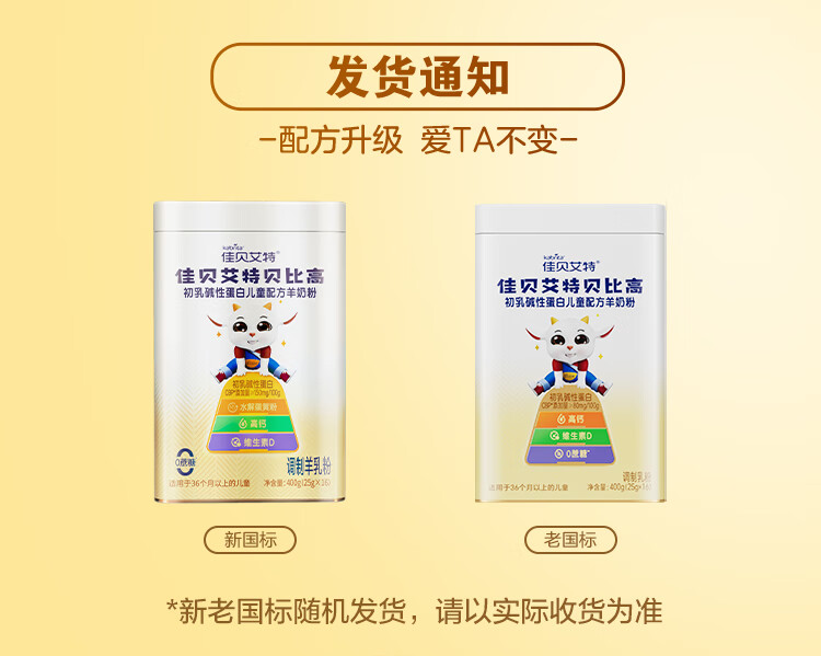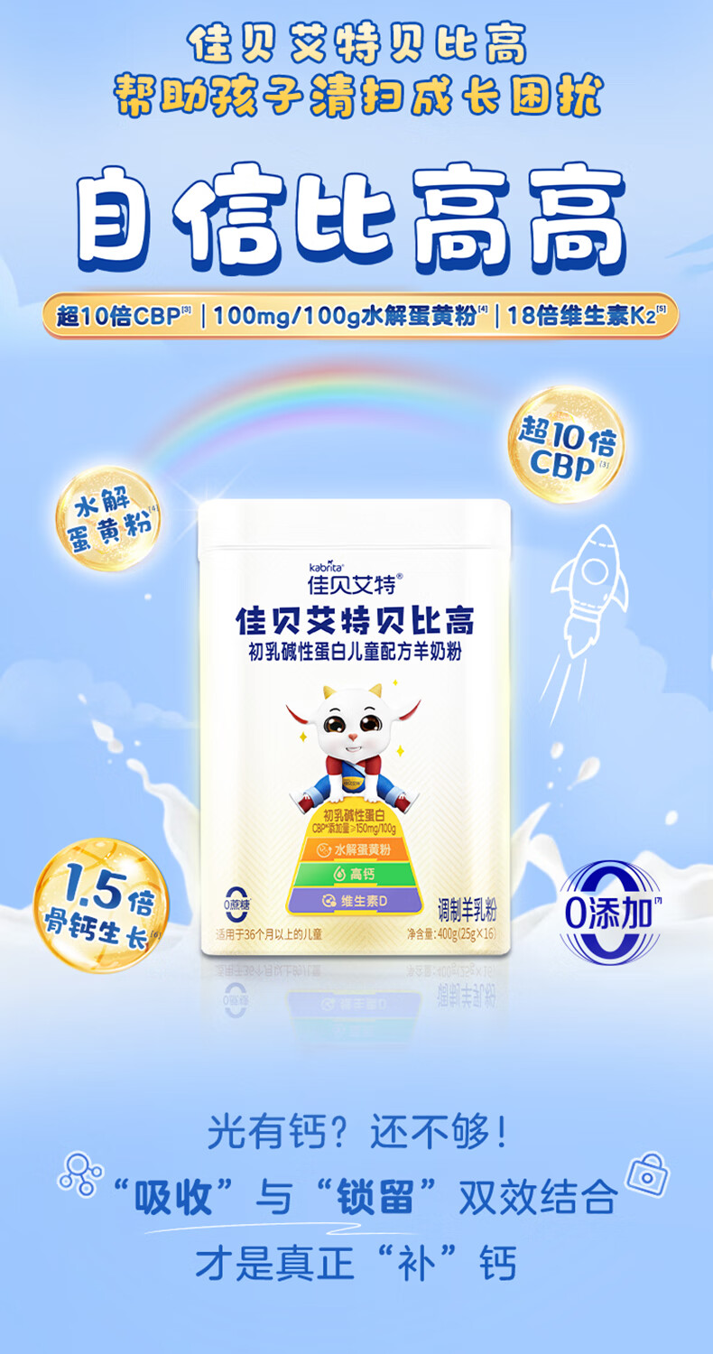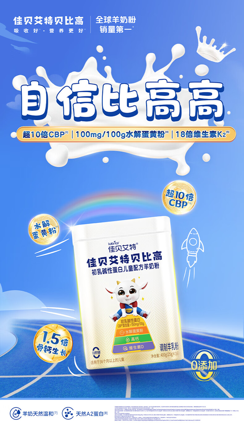 佳贝艾特羊奶粉贝比高初乳碱性蛋白儿童学生配方羊奶粉400g 【咨询送身高尺】贝比高羊奶粉400g*1