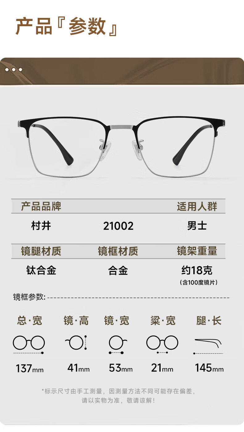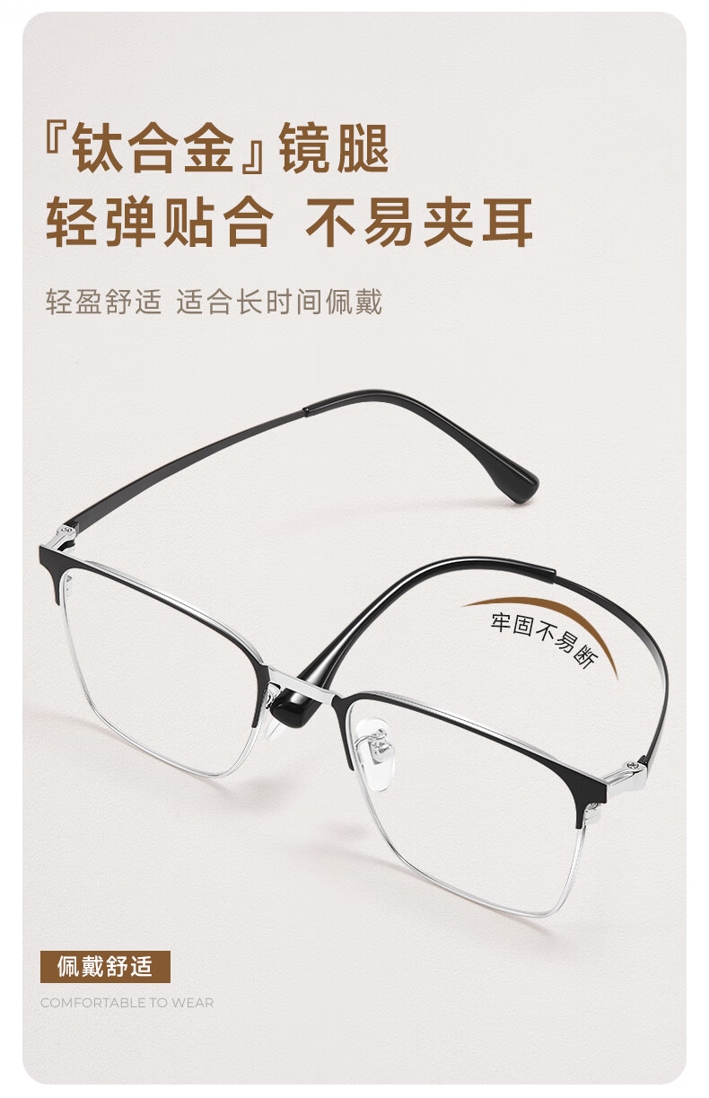 MURAI日本品牌老花镜男轻盈钛合金镜腿高清防蓝光可配度数21002-定制