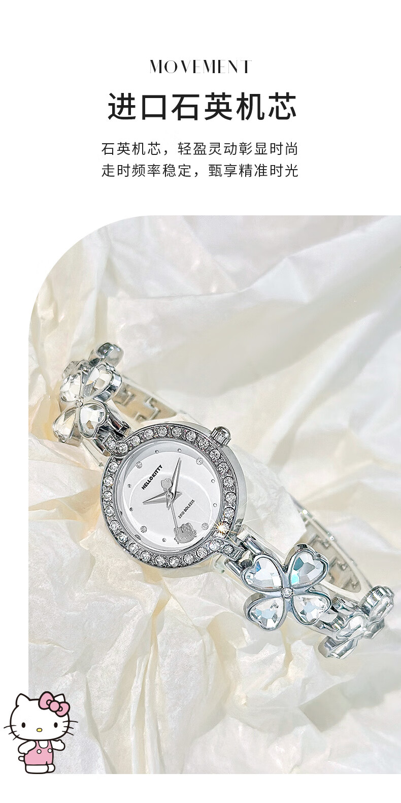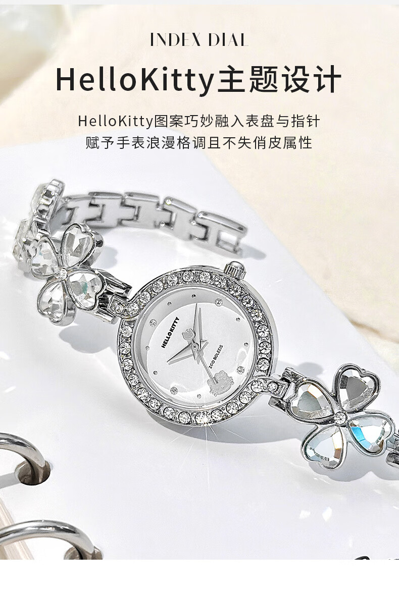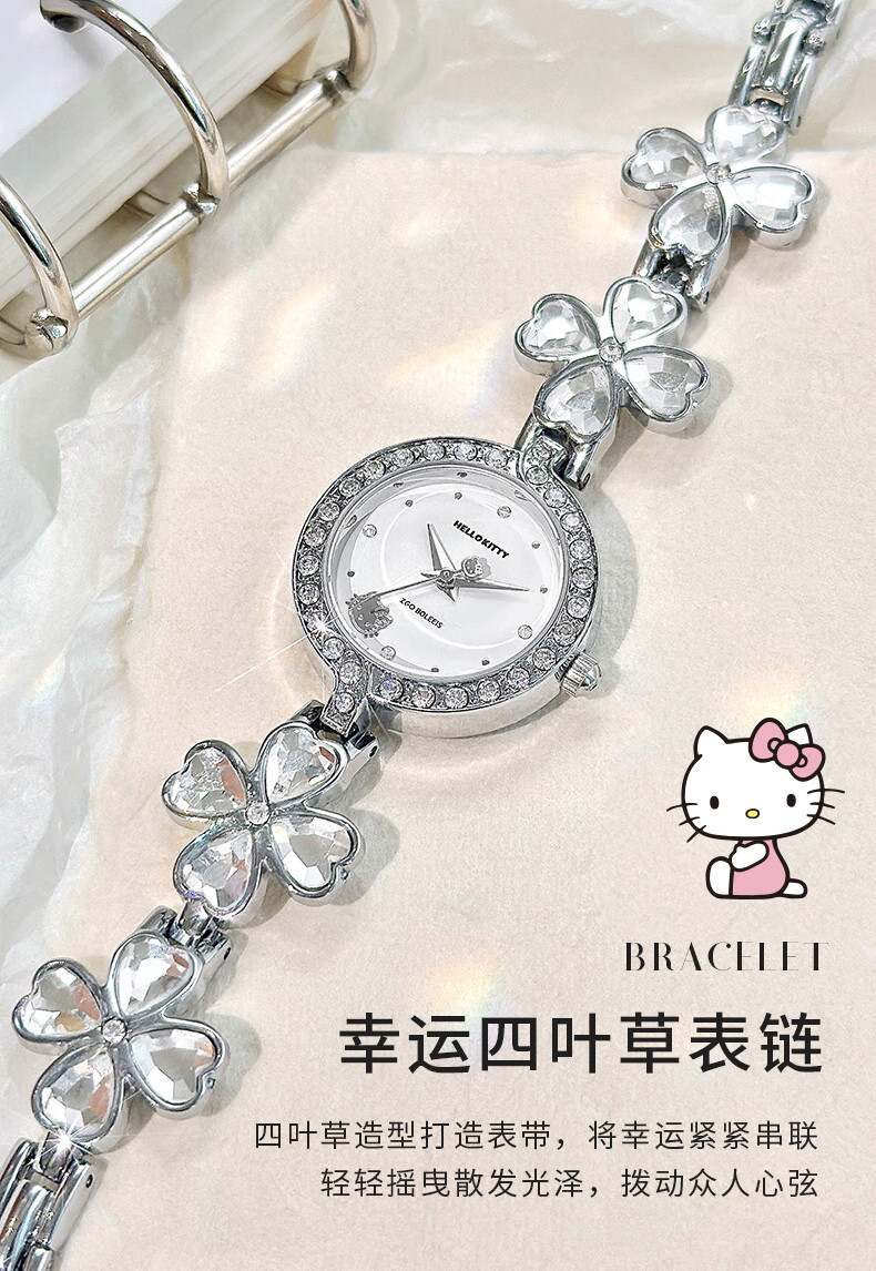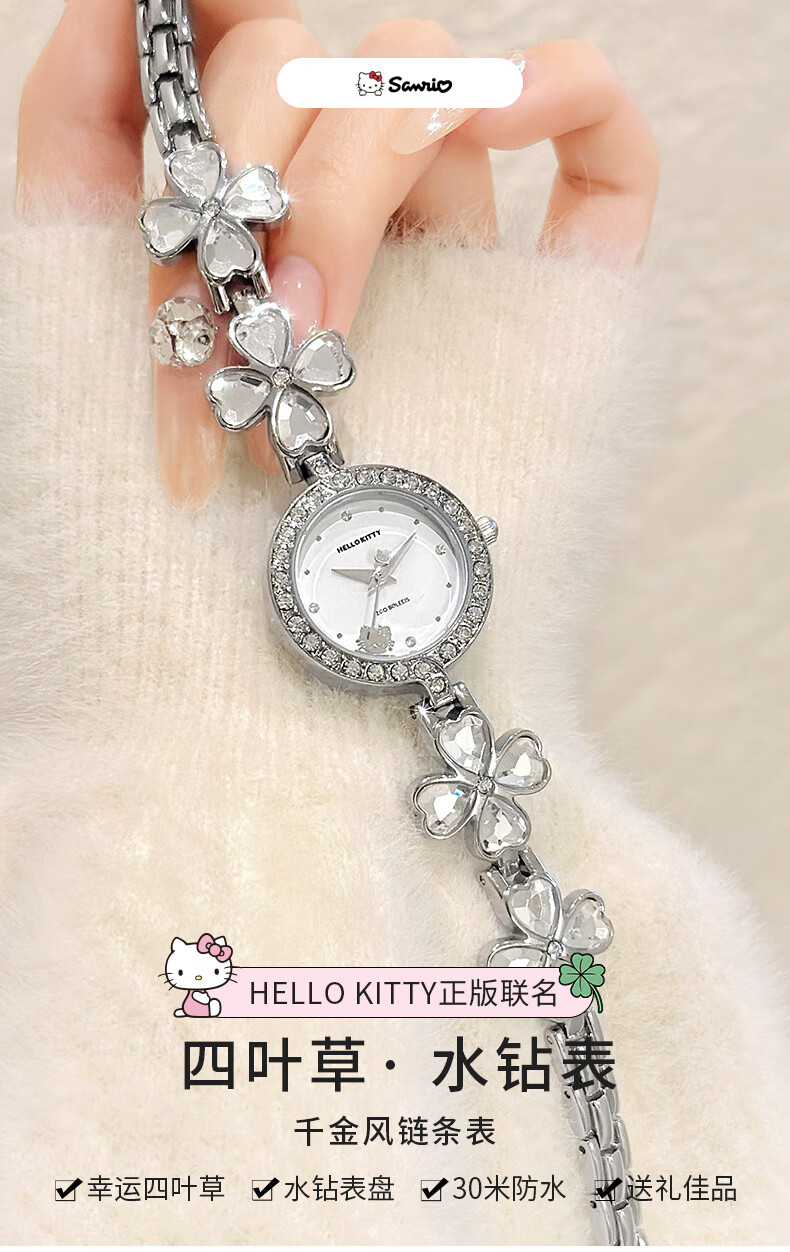 Hello Kitty三丽鸥四叶草手链表小表盘轻奢小众女学生手表精致生日礼物送女友