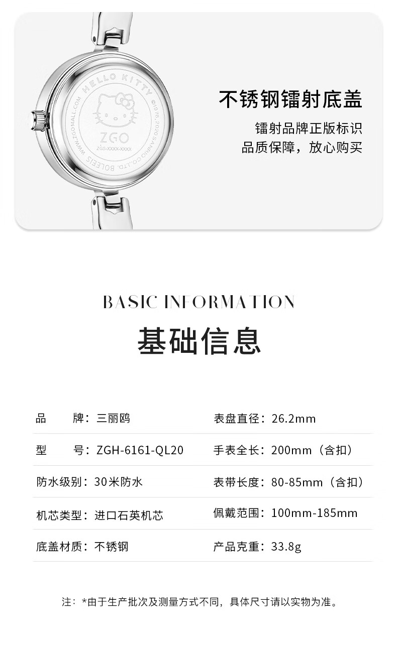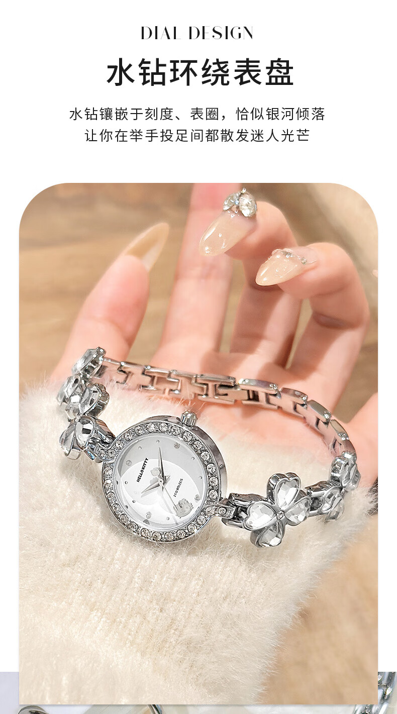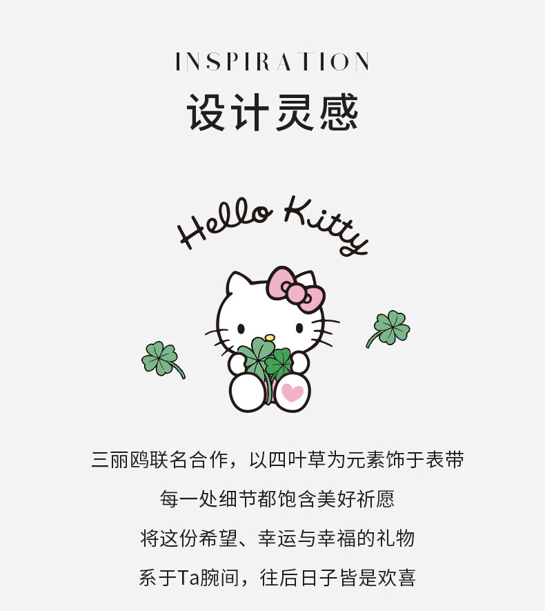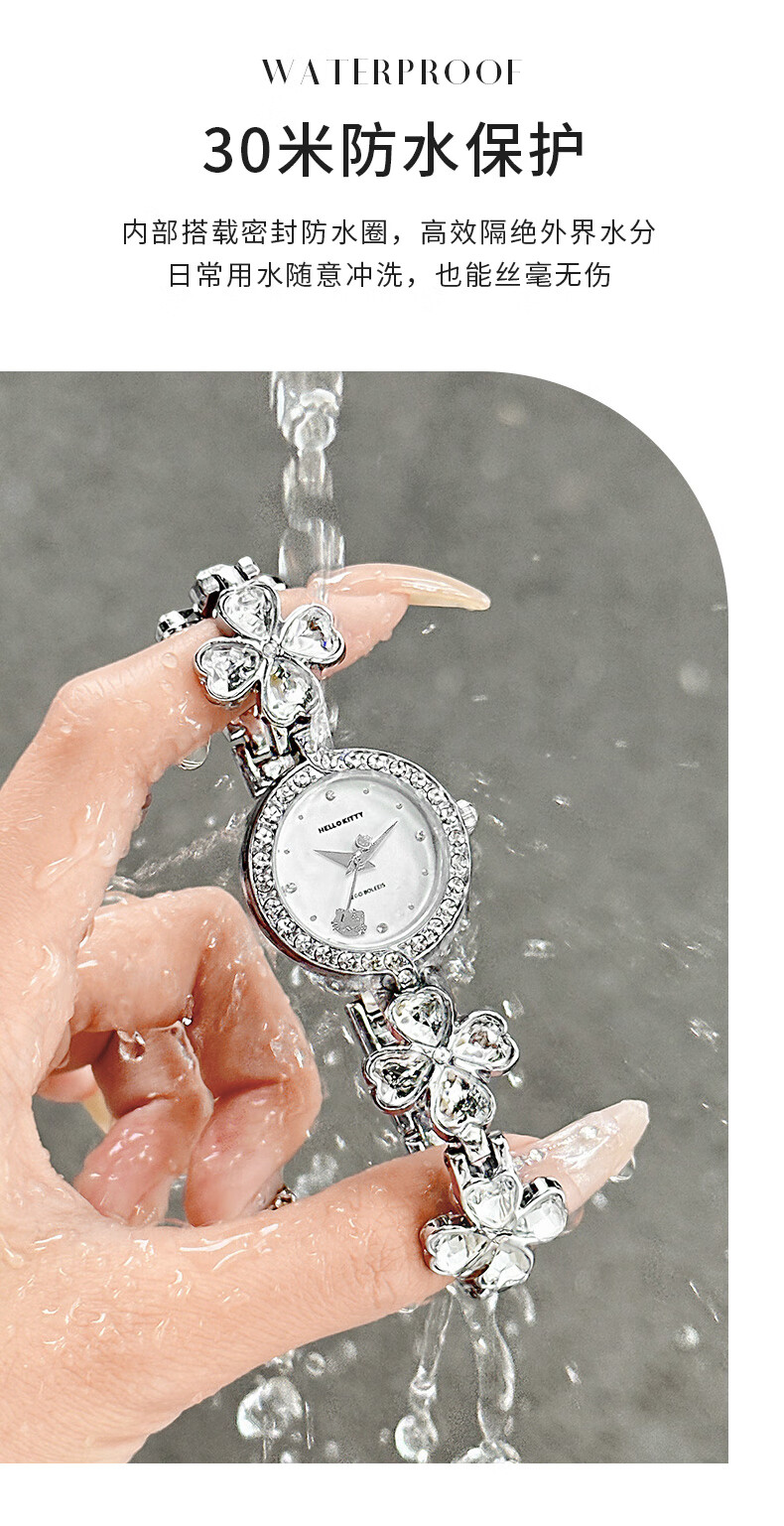 Hello Kitty三丽鸥四叶草手链表小表盘轻奢小众女学生手表精致生日礼物送女友