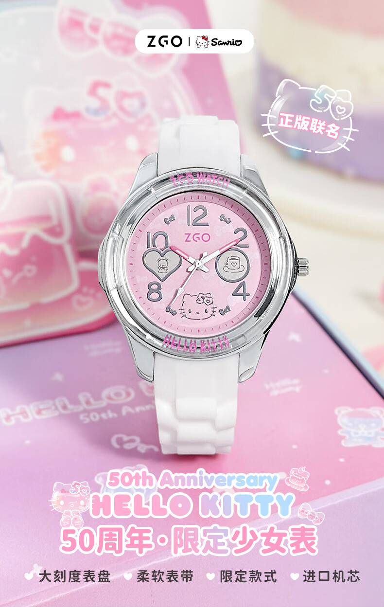 Hello Kitty【50周年限定】手表女学生小学初中生儿童手表开学生日礼物送女孩