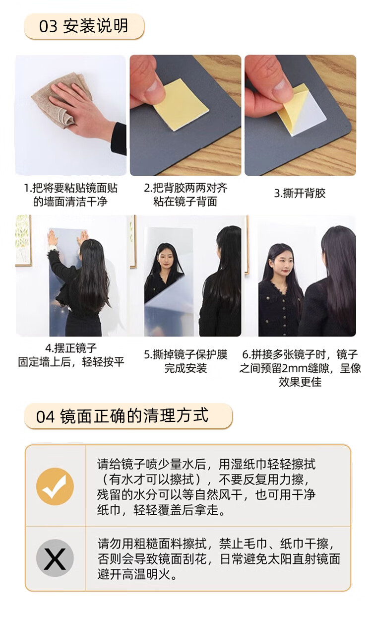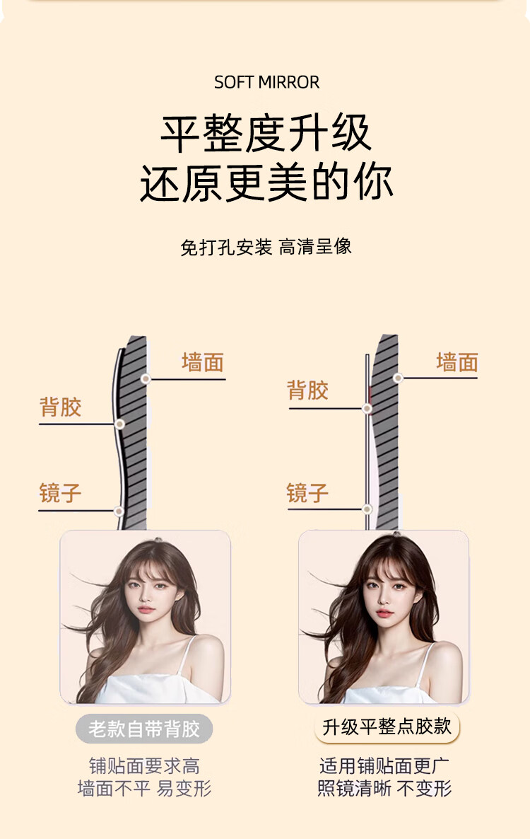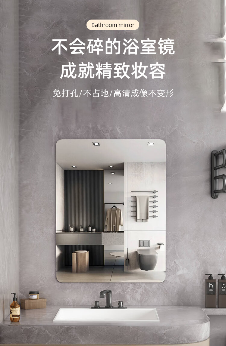 安尔雅软镜子贴墙自粘浴室家用亚克力全身镜卫生间洗脸化妆镜