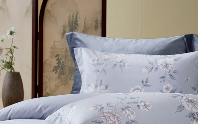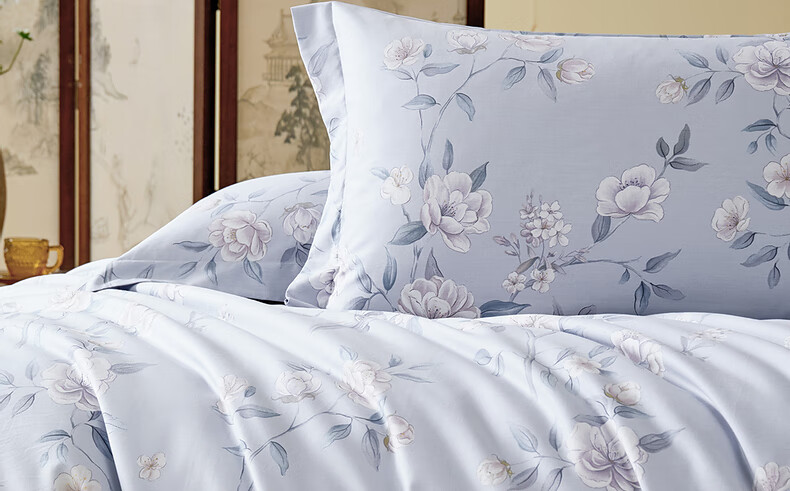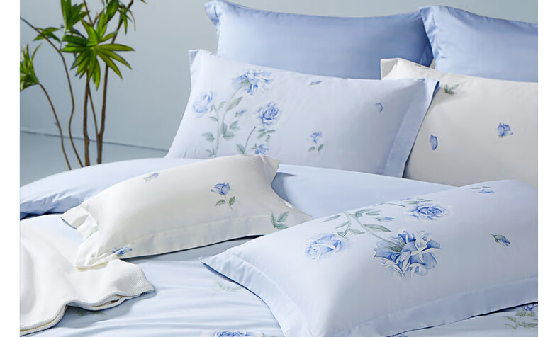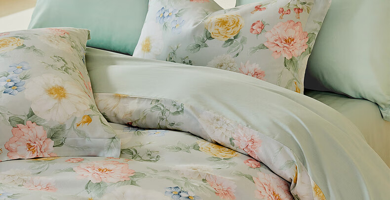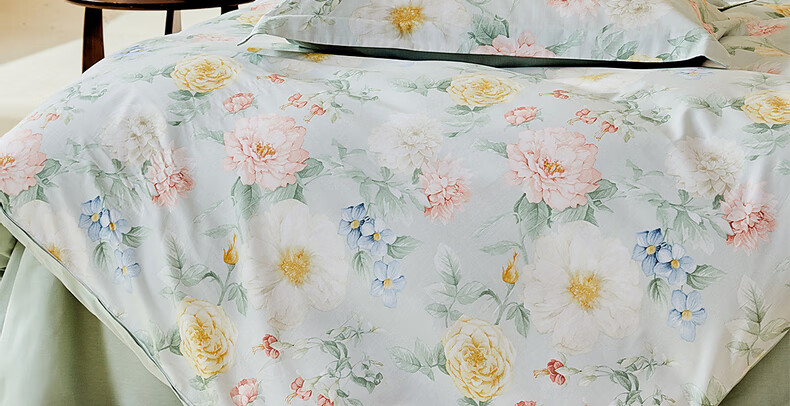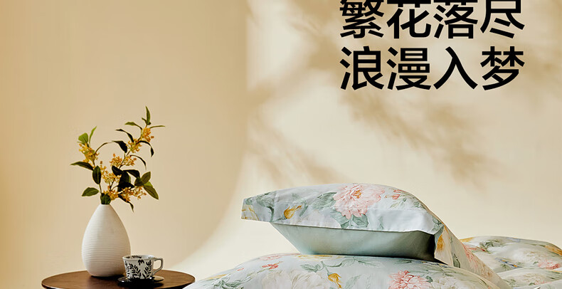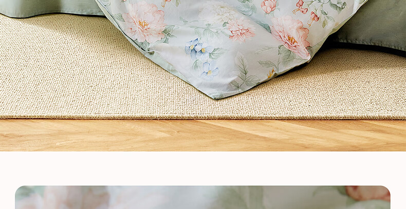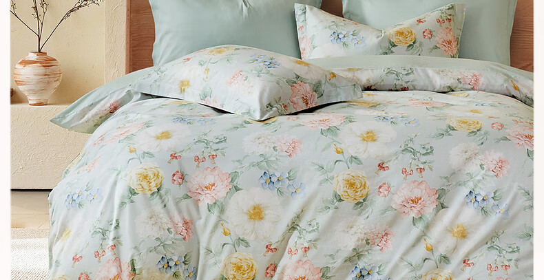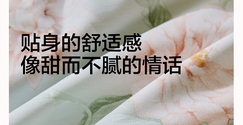 猫人100%新疆长绒棉全棉提花四件套纯棉高级感家用床单床笠床上用品 柔丝漫语-清新绿【100%全棉】 1.8m 床单款 四件套-200x230cm被套