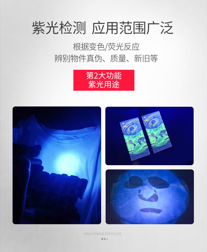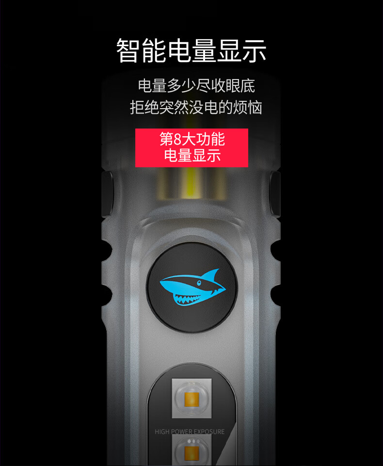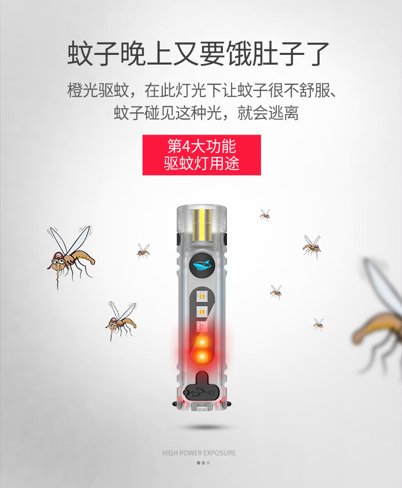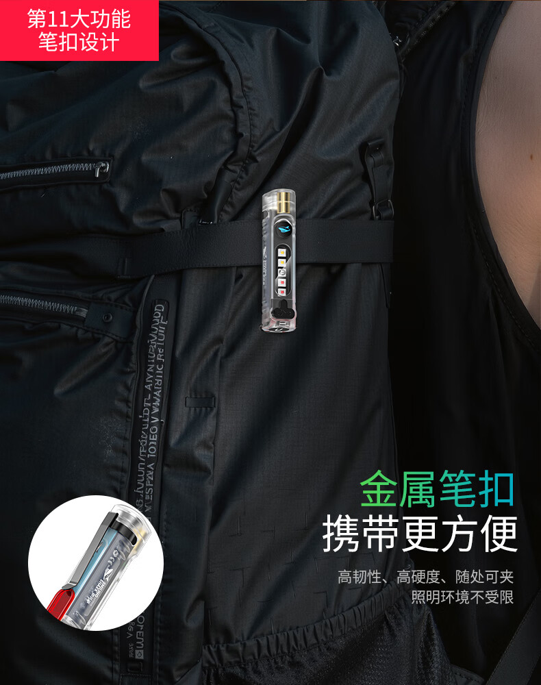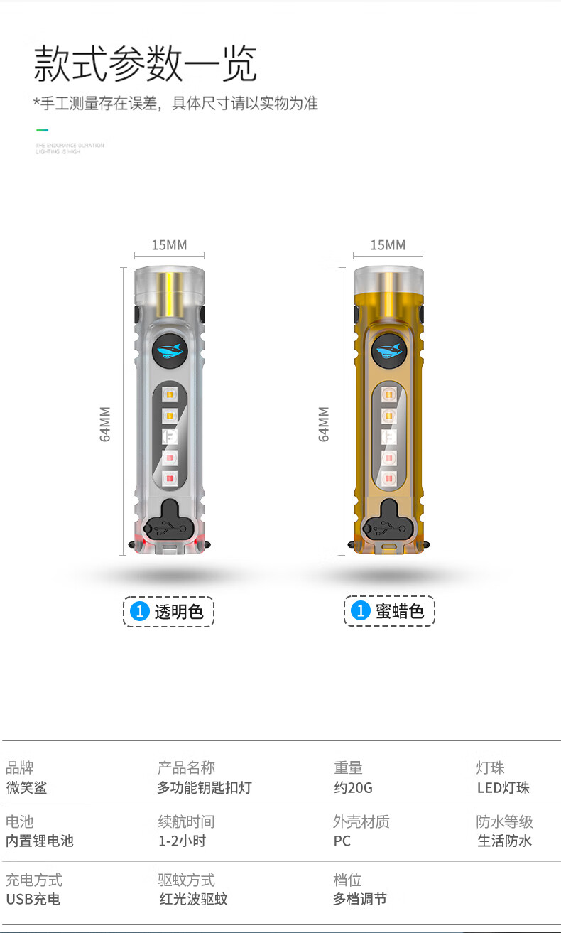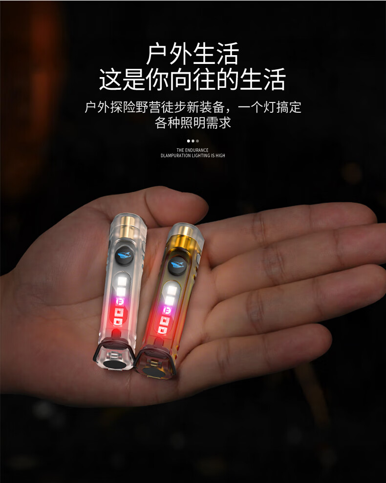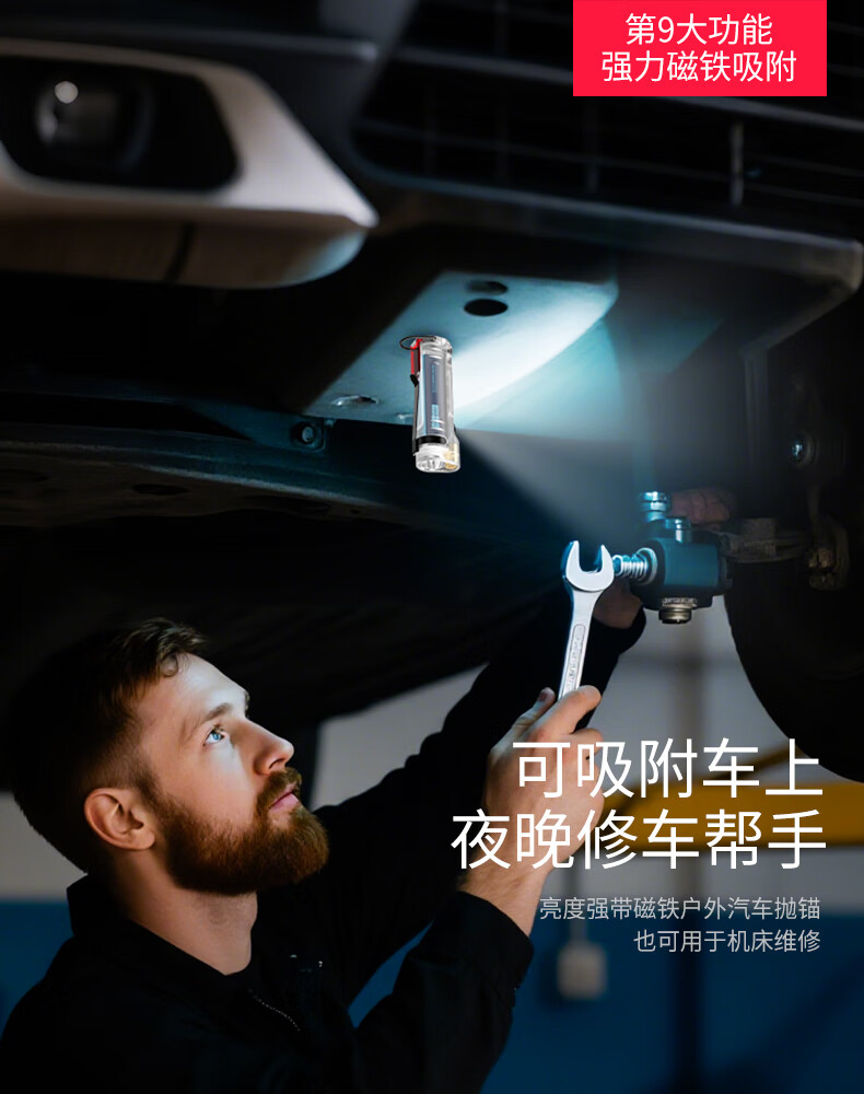 微笑鲨便携式迷你特小手电筒6060充电小型钥匙扣灯强光多功能强磁激光笔 透明色【8档钥匙扣灯】 尾部强磁-白红紫泛四光