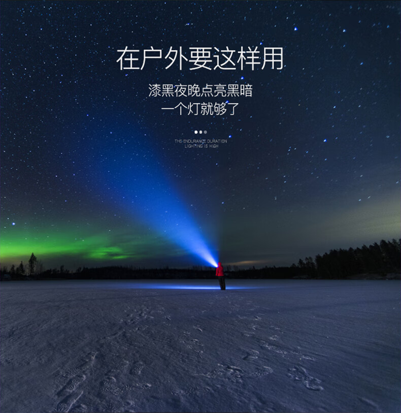 微笑鲨 手电筒强光超亮远射户外照明灯超长续航应急露营便携防水变焦 银色【侧灯泛光】变焦远射
