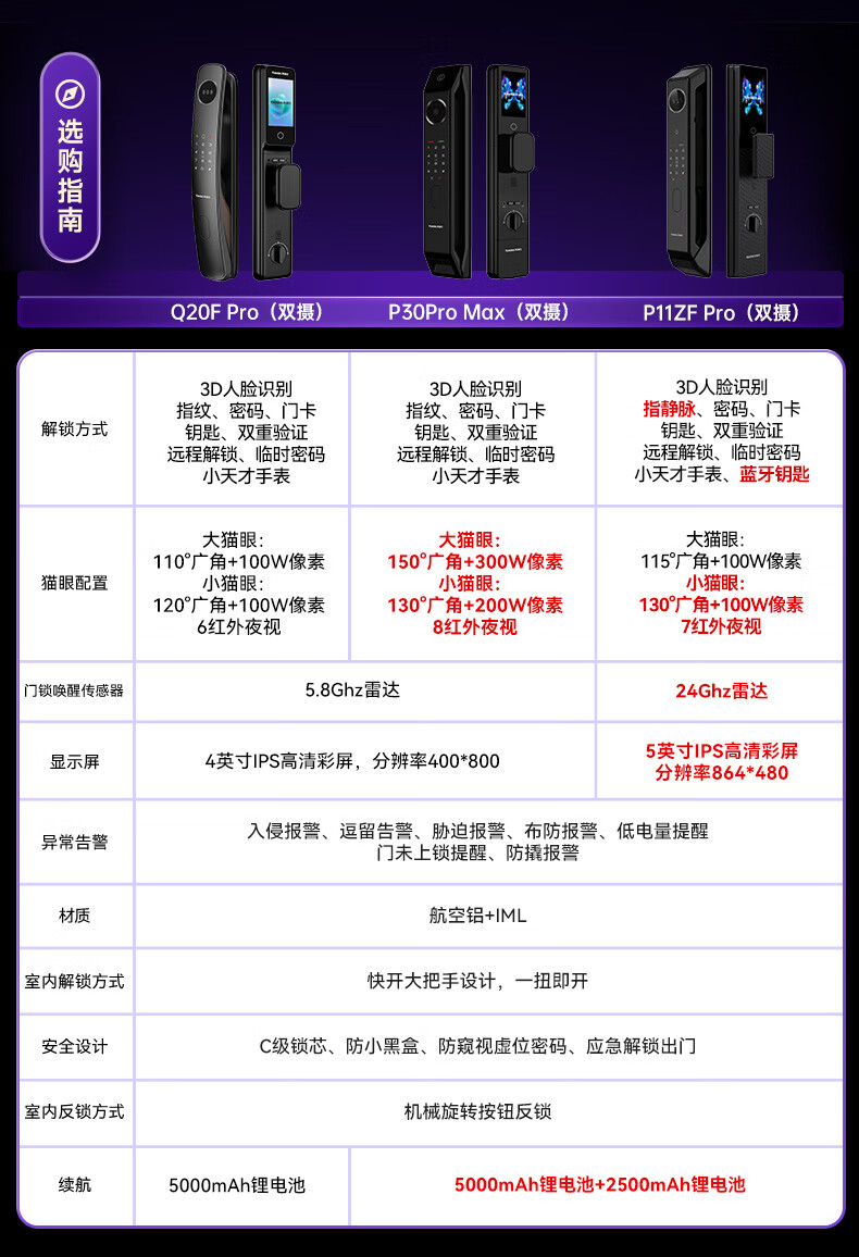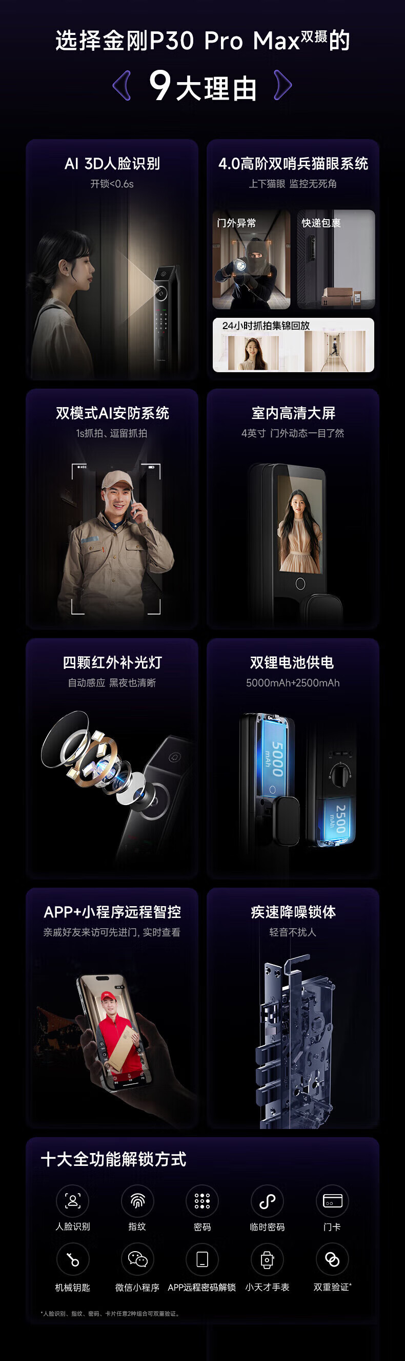 凯迪仕(kaadas)智能门锁 双摄人脸识别可视猫眼大屏指纹锁 金刚P30 Pro Max双摄