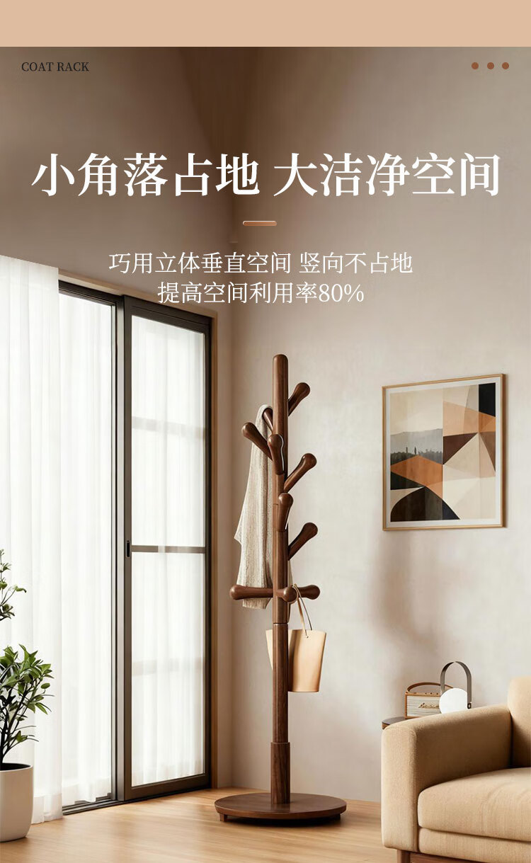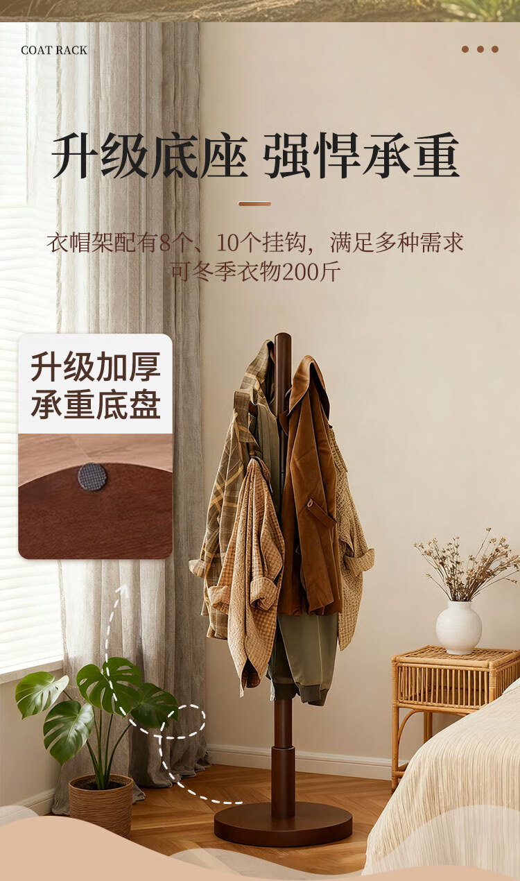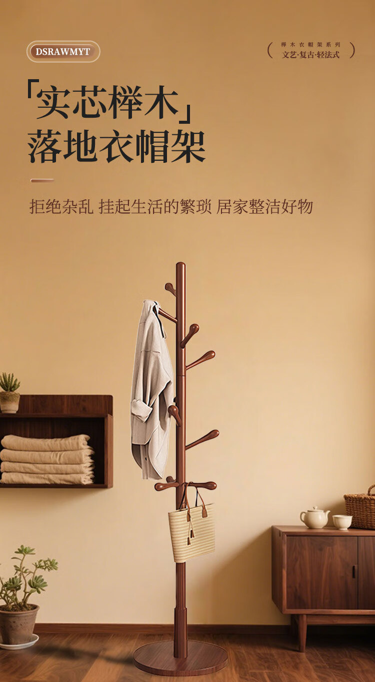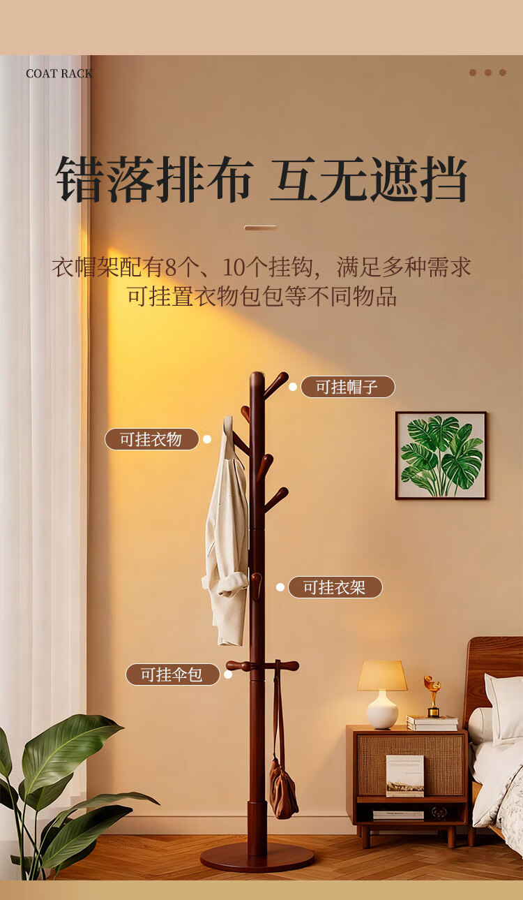 DSRAWMYT实木衣帽架落地立式 衣架卧室办公挂衣架简约多挂钩晾衣服架子