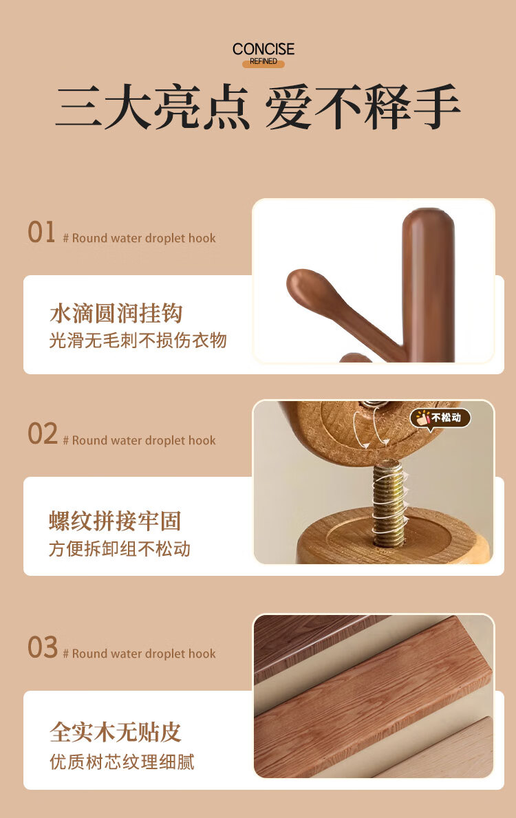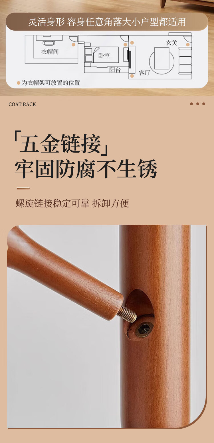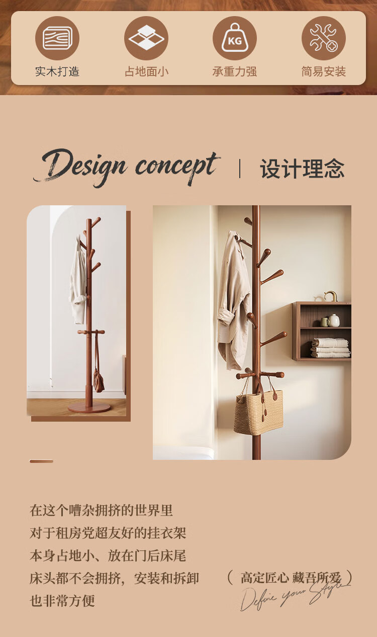 DSRAWMYT实木衣帽架落地立式 衣架卧室办公挂衣架简约多挂钩晾衣服架子
