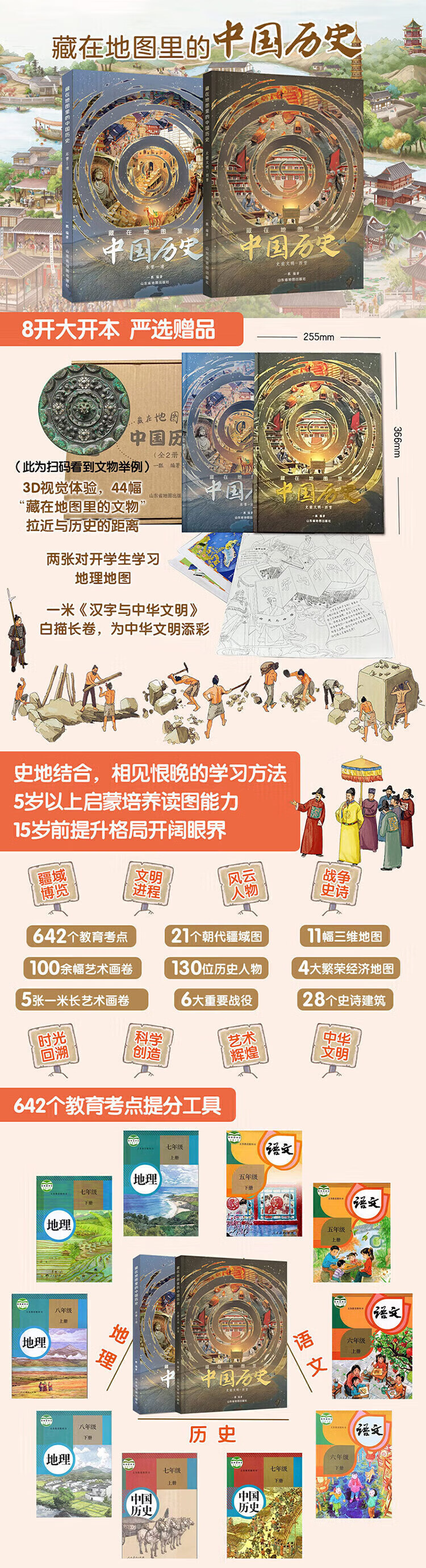 当当正版 藏在地图里的中国历史(精装全2册)赠送AR中国地图+AR世界地图+1米汉字与中华文明白描长卷【5-15岁】藏在地理里的中国历史 【2册】藏在地图里的中国历史(精装)