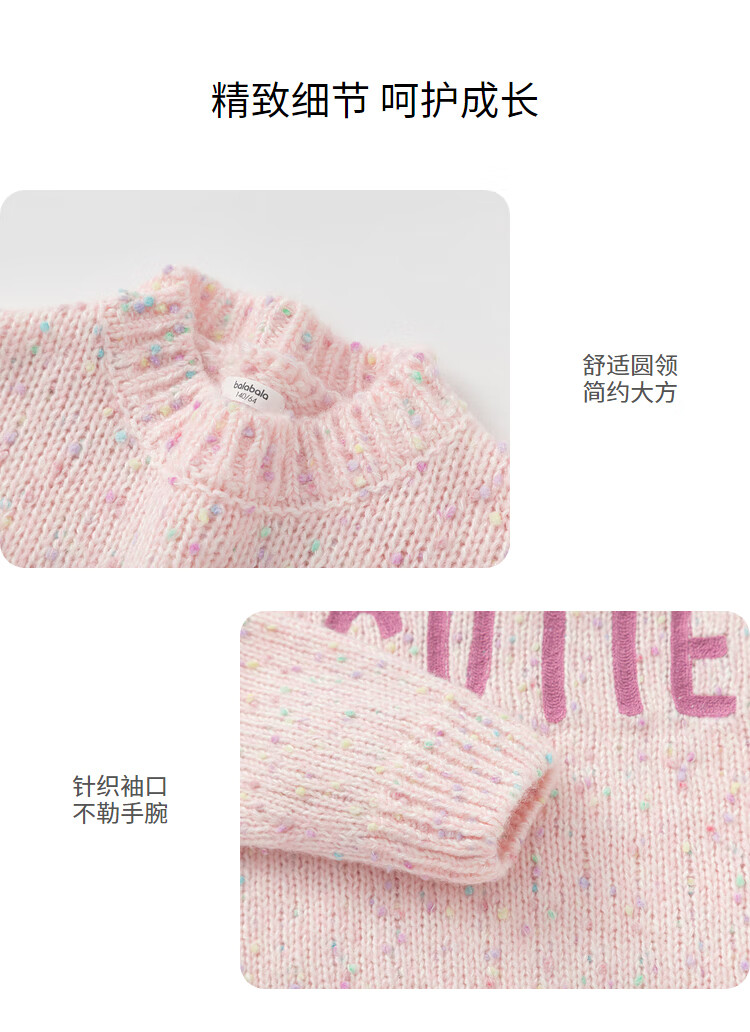 巴拉巴拉童装毛衫2024年秋冬圆领套头撞色毛衣女童宽松甜美潮208424103011