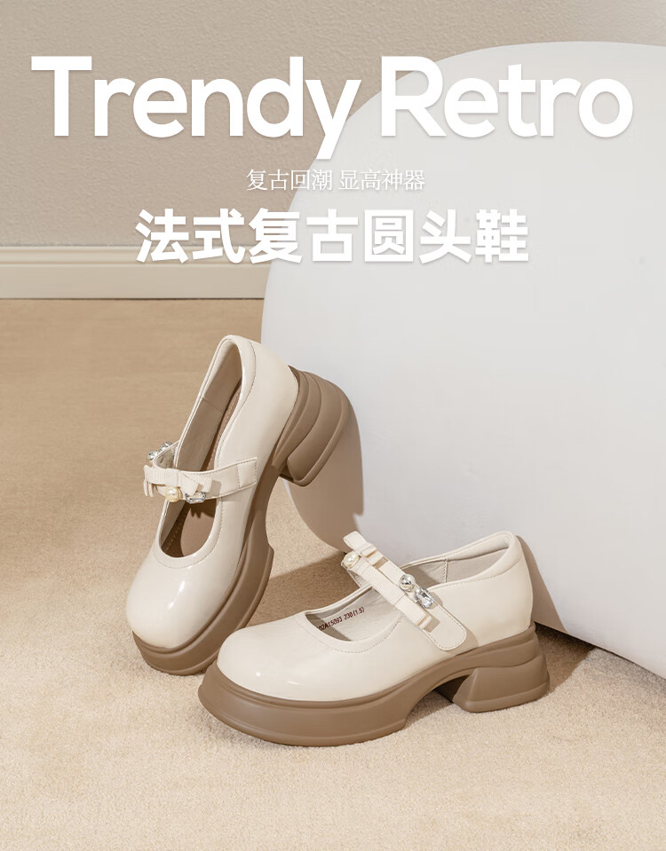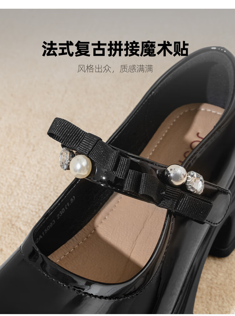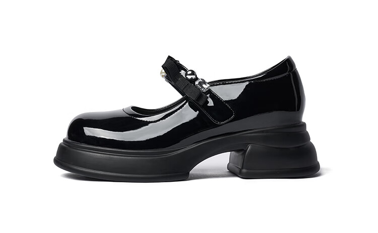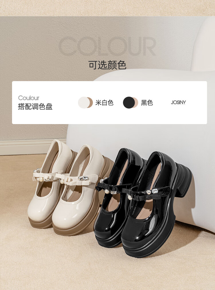 卓诗尼厚底乐福鞋女秋季2025新款浅口气质单鞋复古法式小皮鞋 黑色 40