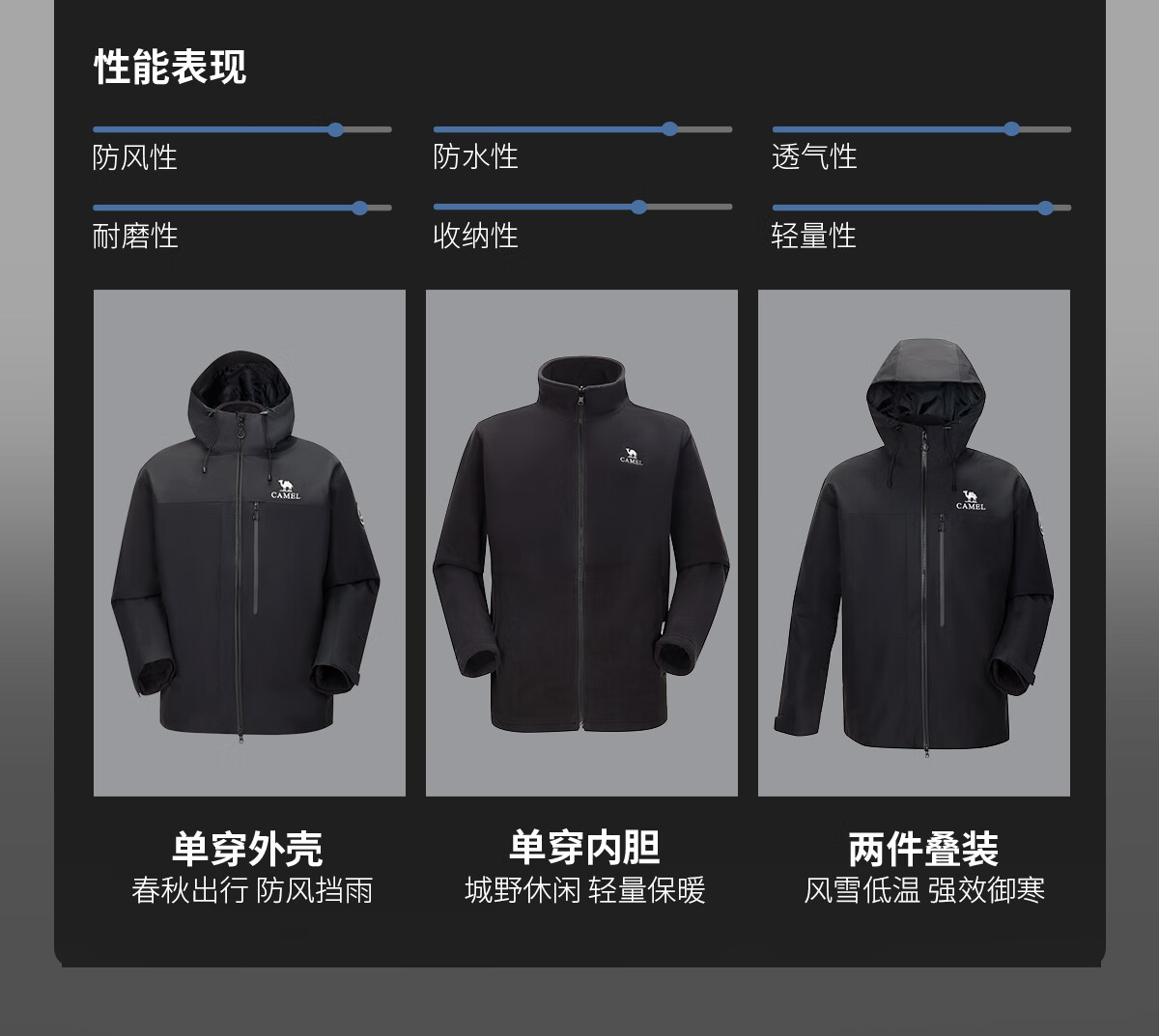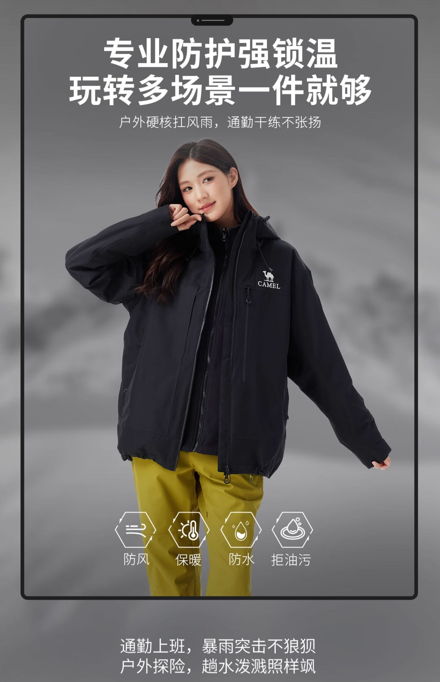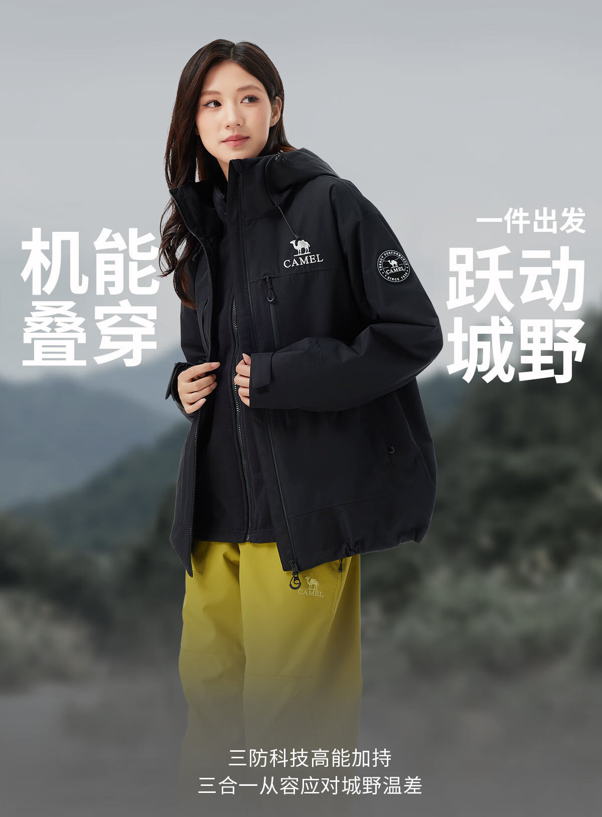 骆驼(CAMEL)[王俊凯同款]骆驼王者凯甲Z系列冲锋衣男女三合一25新款户外外套 735CA31008 伏曦紫 男女同款 M