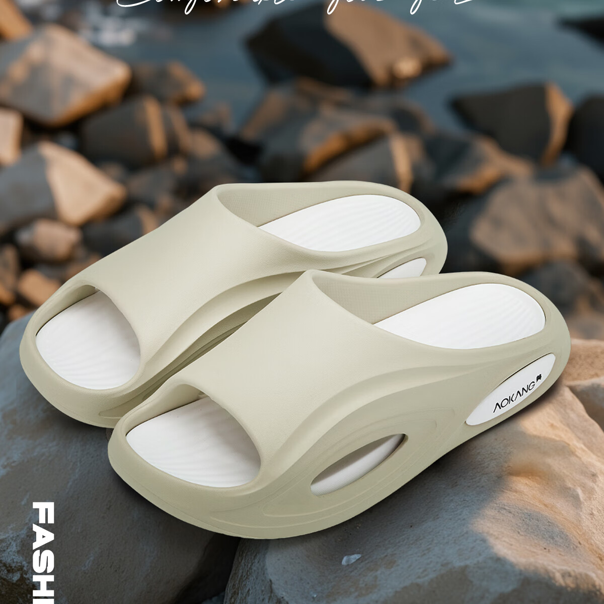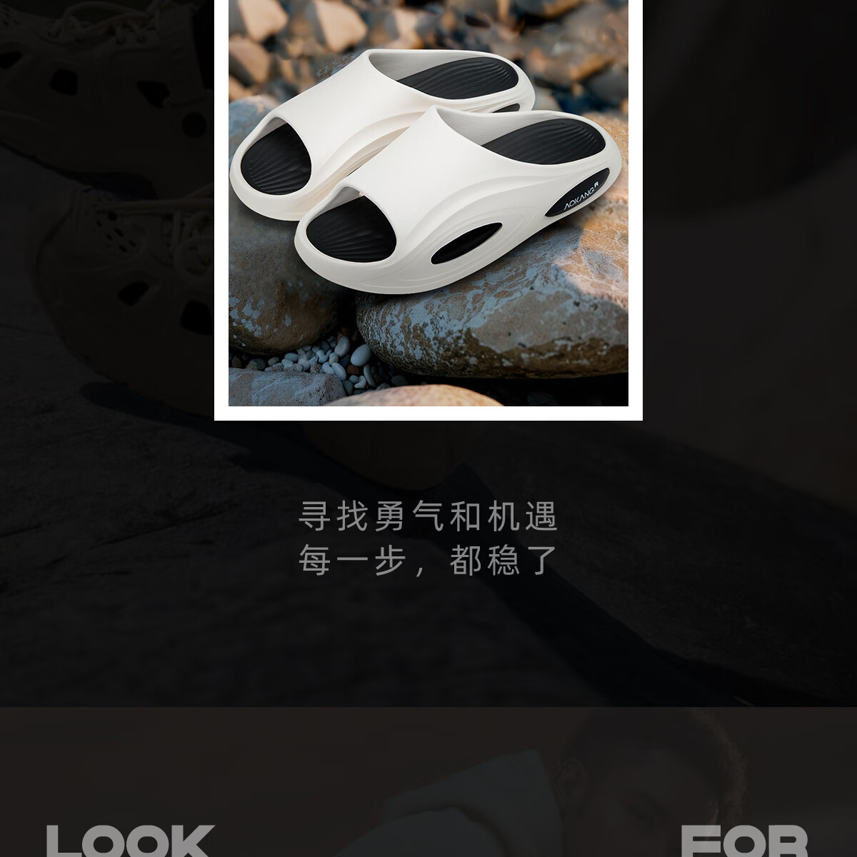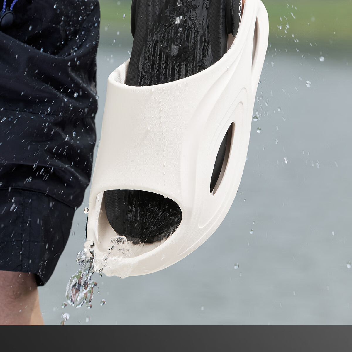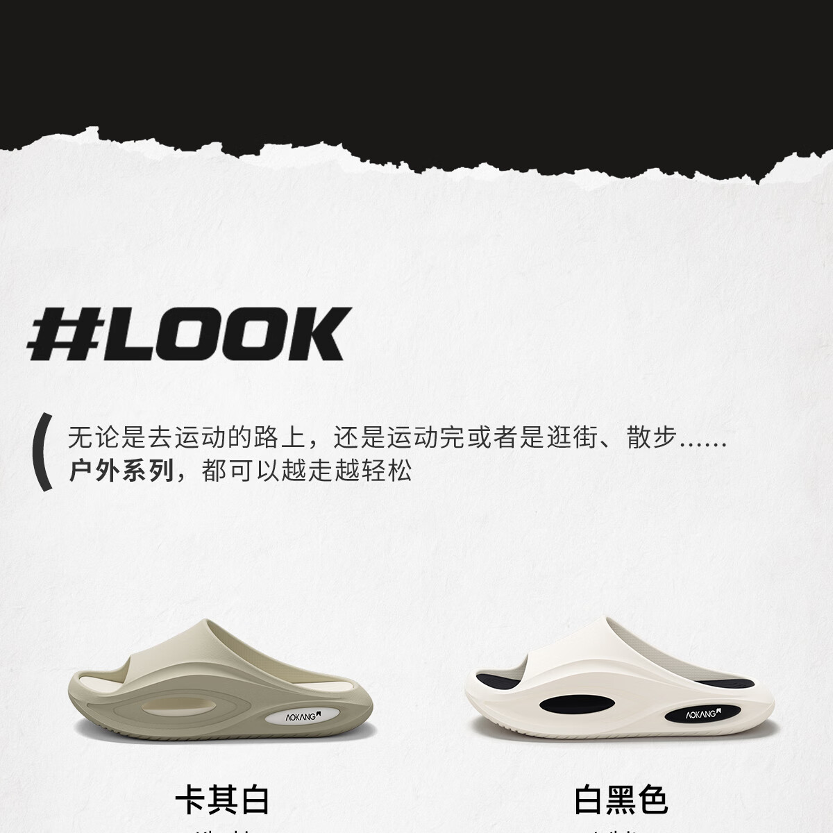 奥康运动拖鞋男士夏季外穿踩屎感厚底防滑防臭eva户外沙滩海边凉拖鞋 白黑 44-45