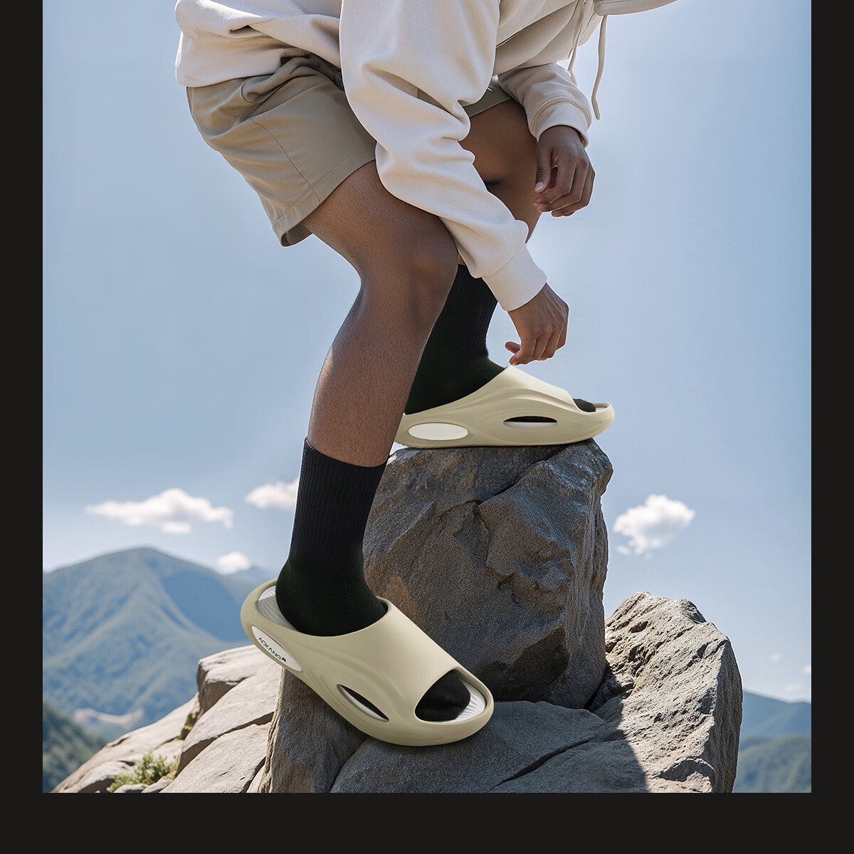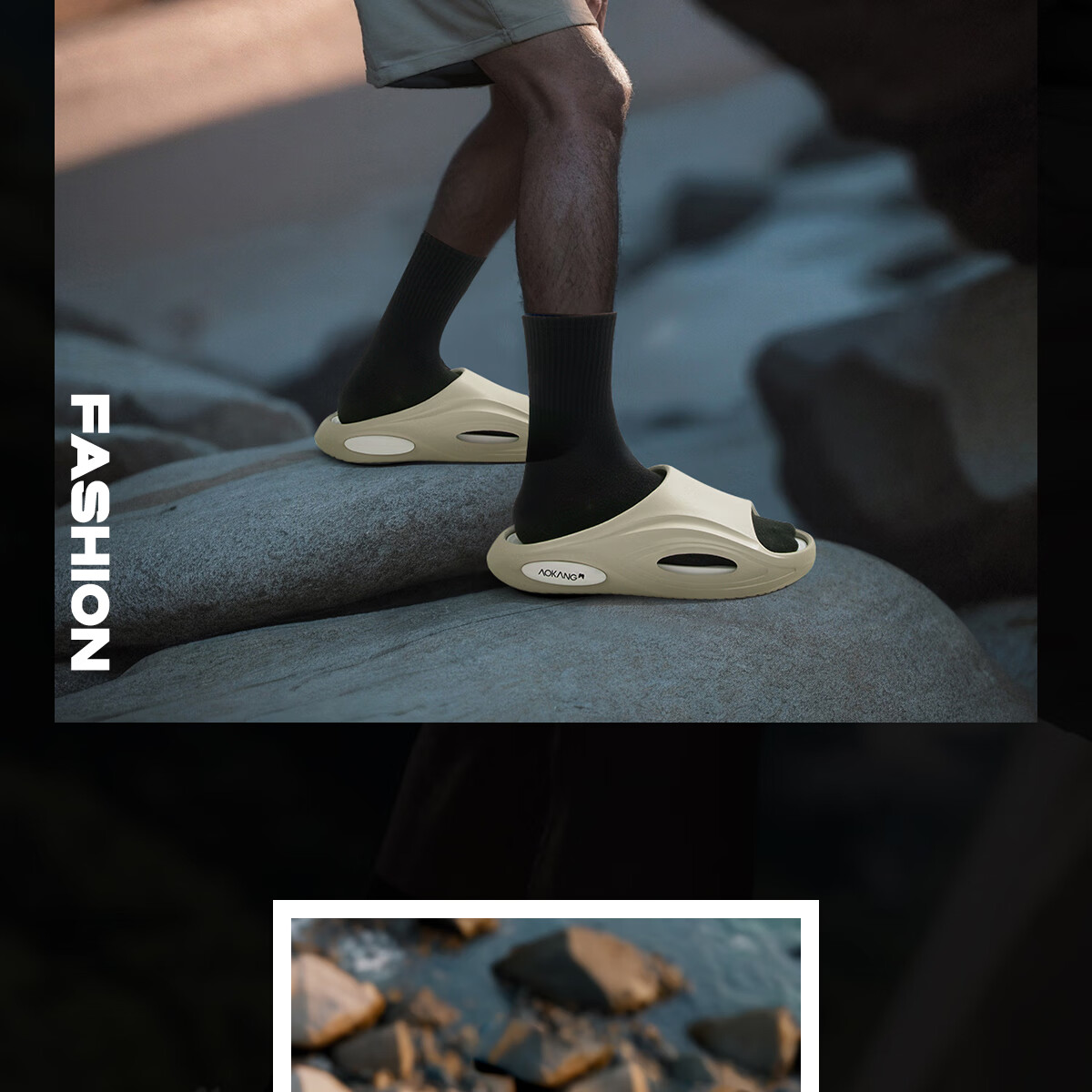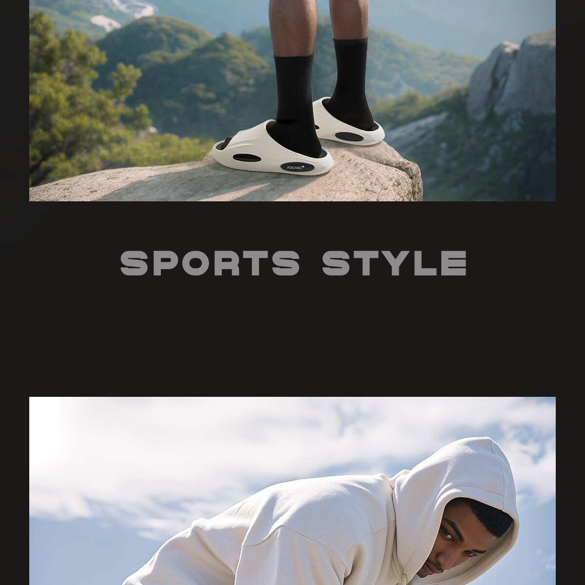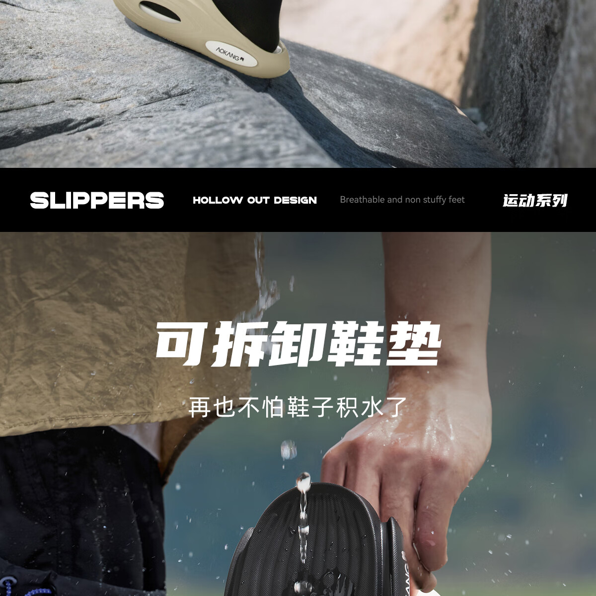 奥康运动拖鞋男士夏季外穿踩屎感厚底防滑防臭eva户外沙滩海边凉拖鞋 白黑 44-45