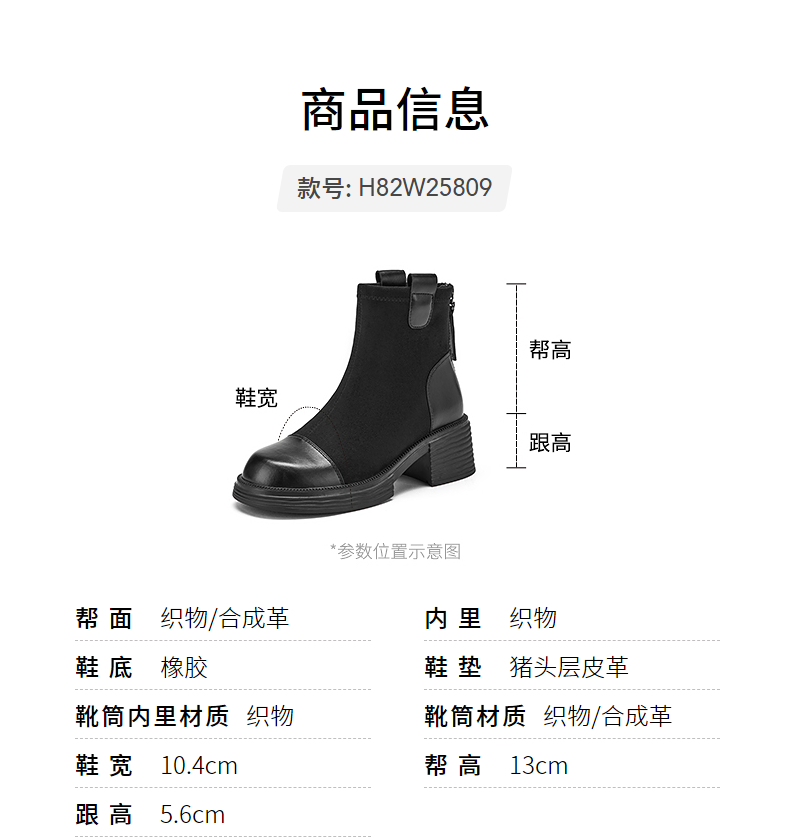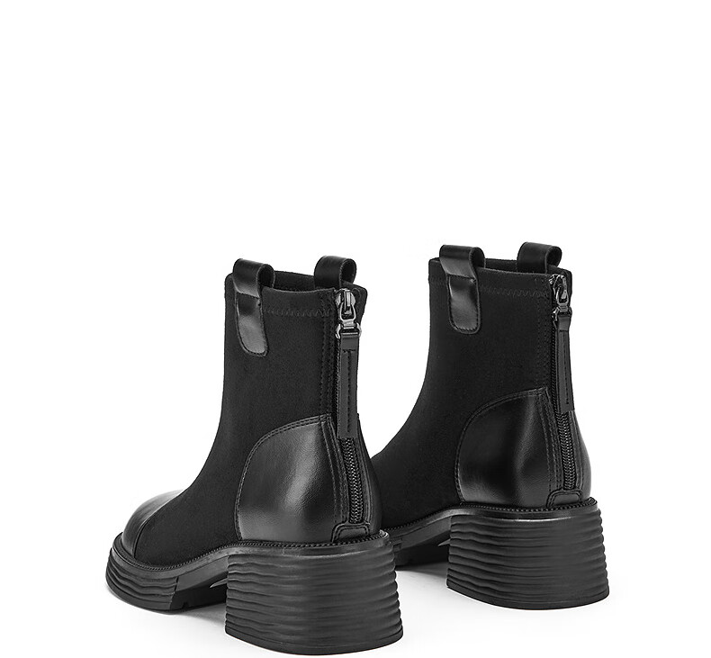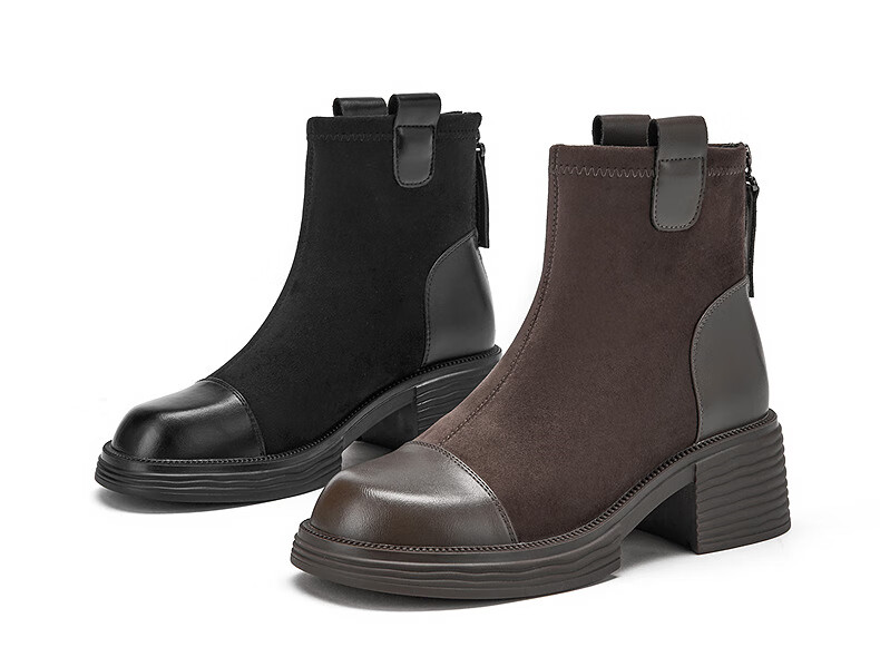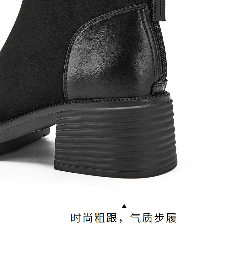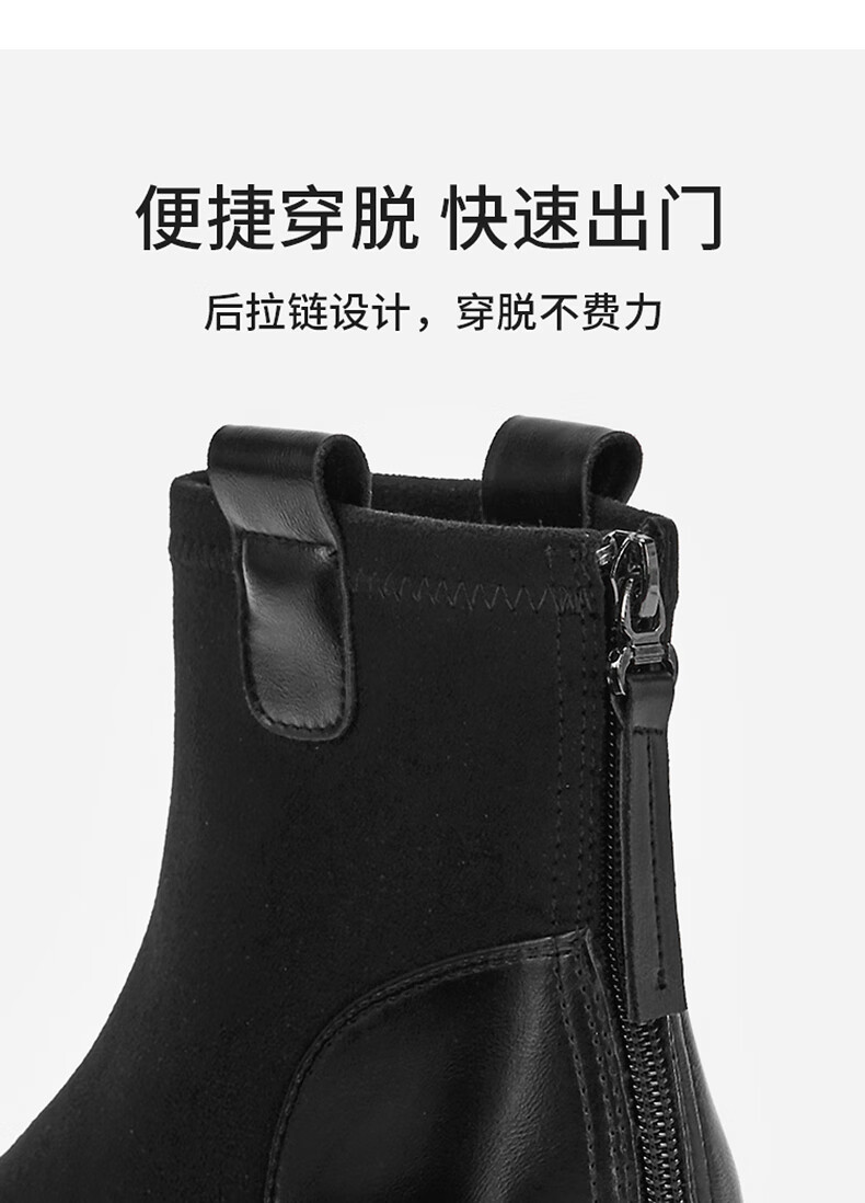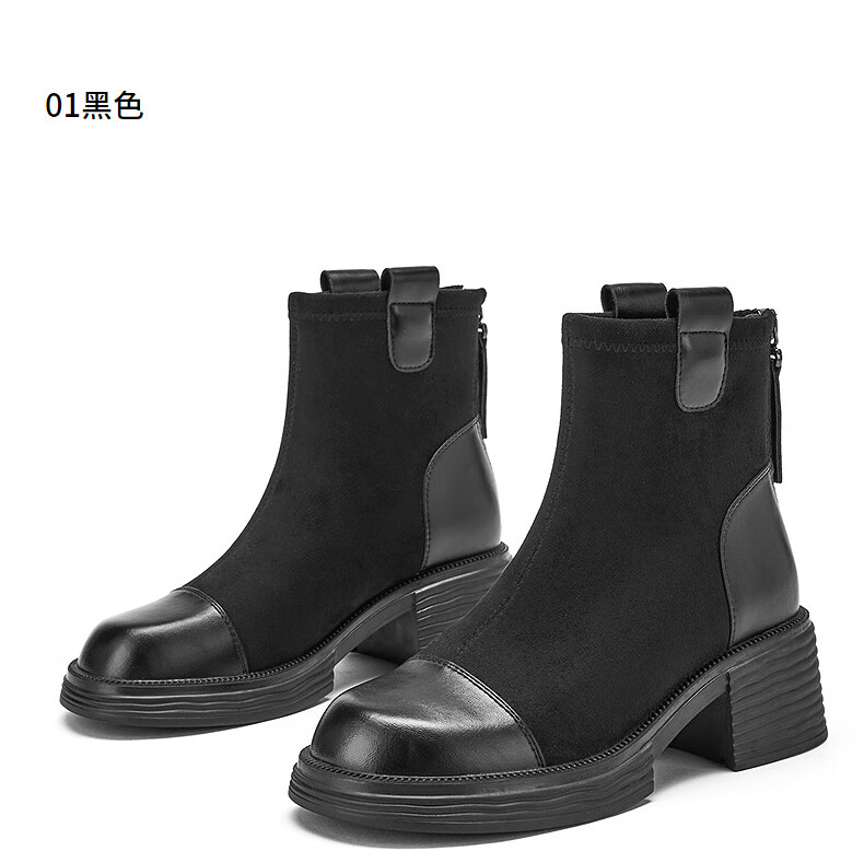 热风高跟时装靴2025年冬季新款美拉德棕色短靴百搭马丁靴子女鞋 01黑色 35