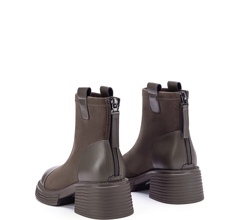 热风女靴子美拉德堆堆靴2025年冬季新款女士时尚休闲显瘦粗高跟短靴 08杏色 36